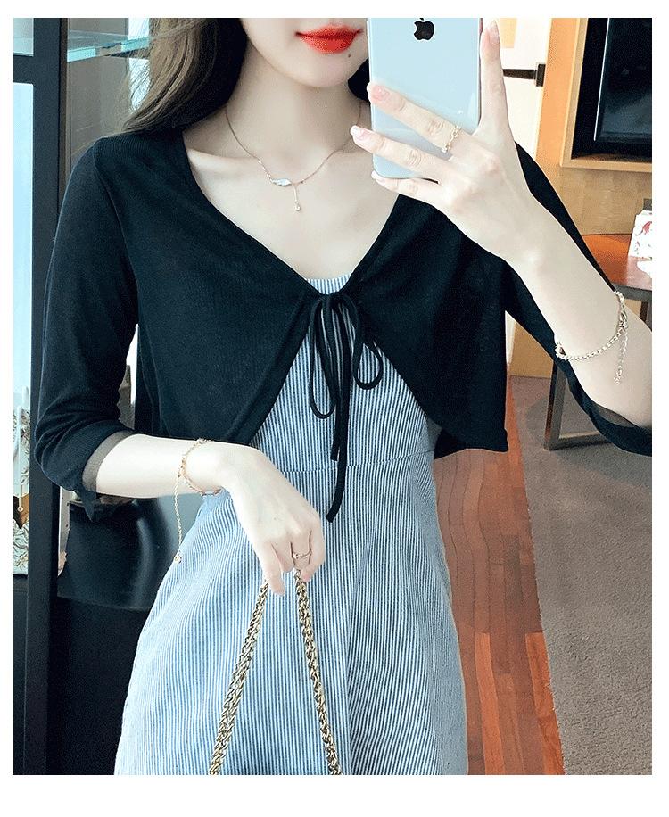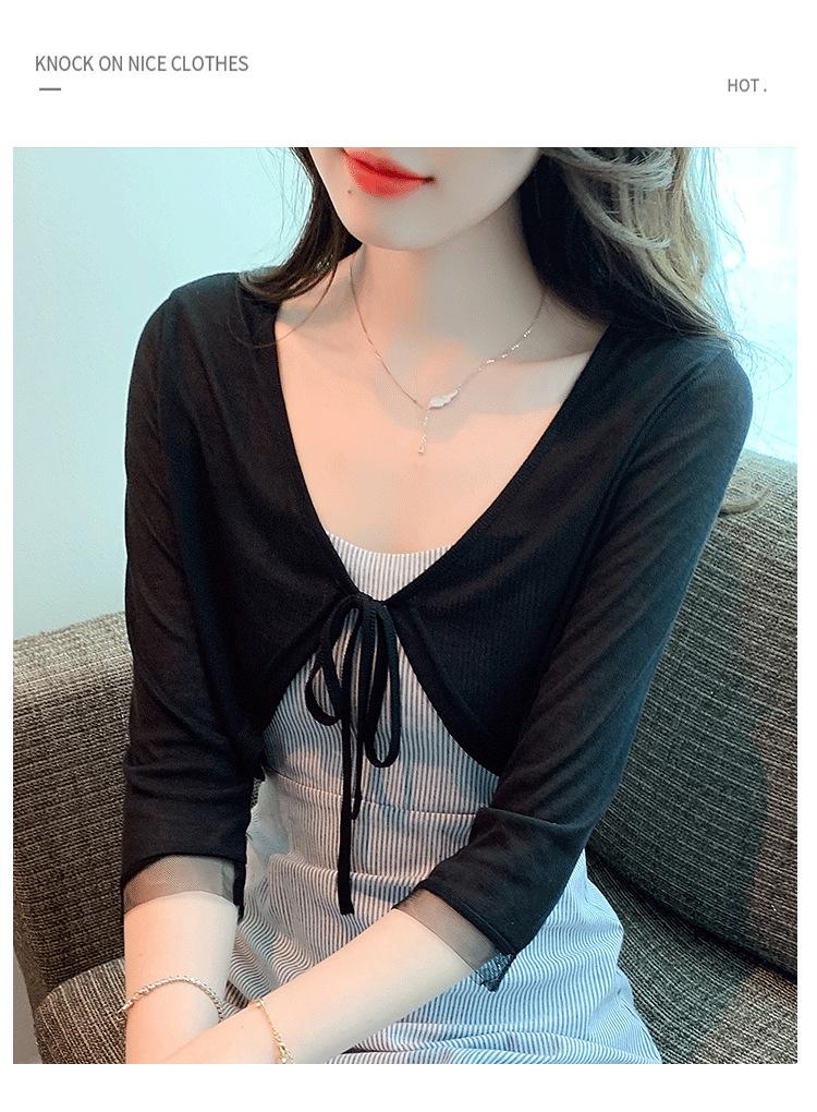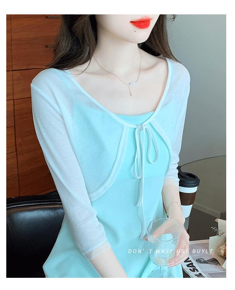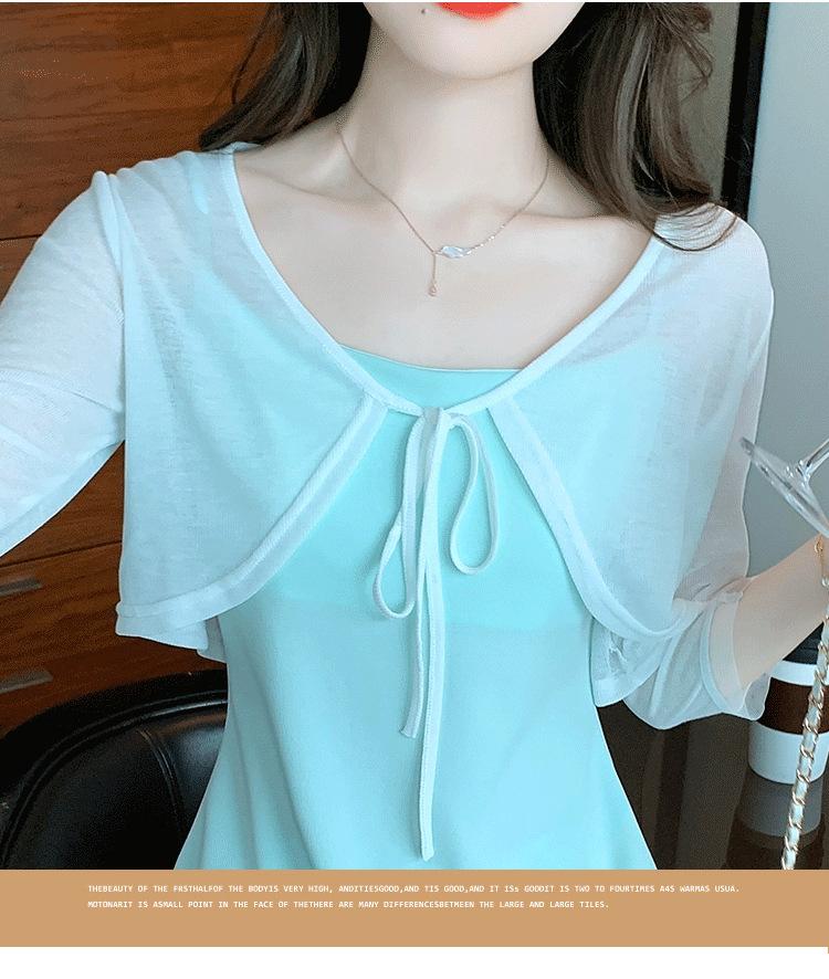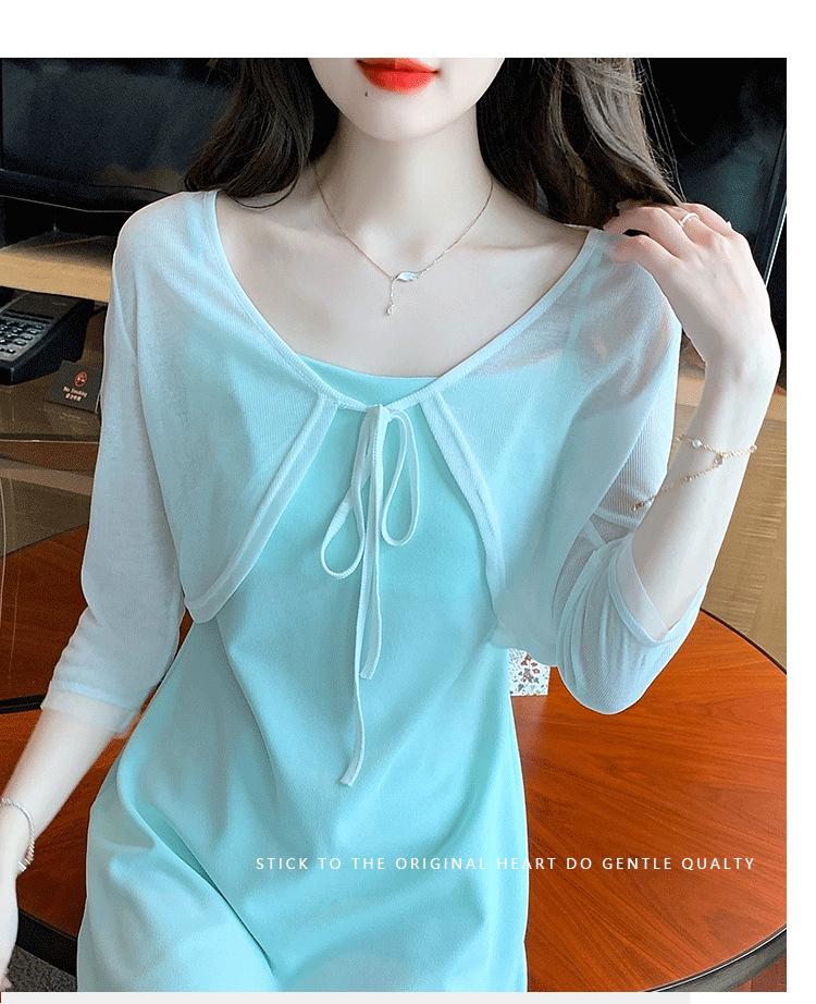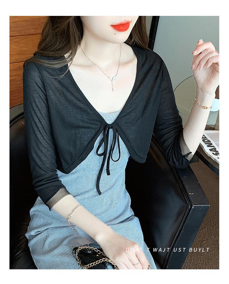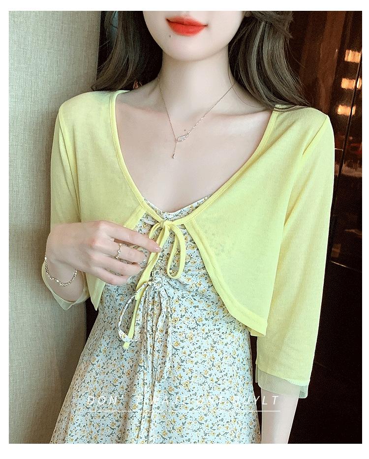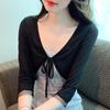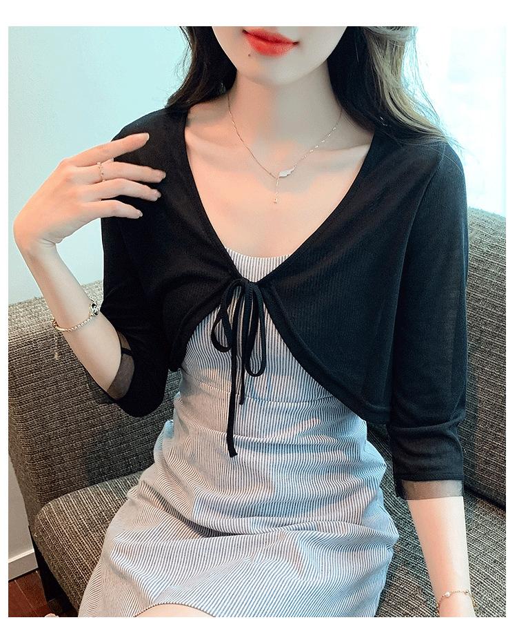 Primavera y Verano 2025 Talla Grande Chal de Chifón para Mujer Manga Media Chaqueta Pequeña Suéter de Punto Chaqueta Francesa Cárdigan Protección Solar