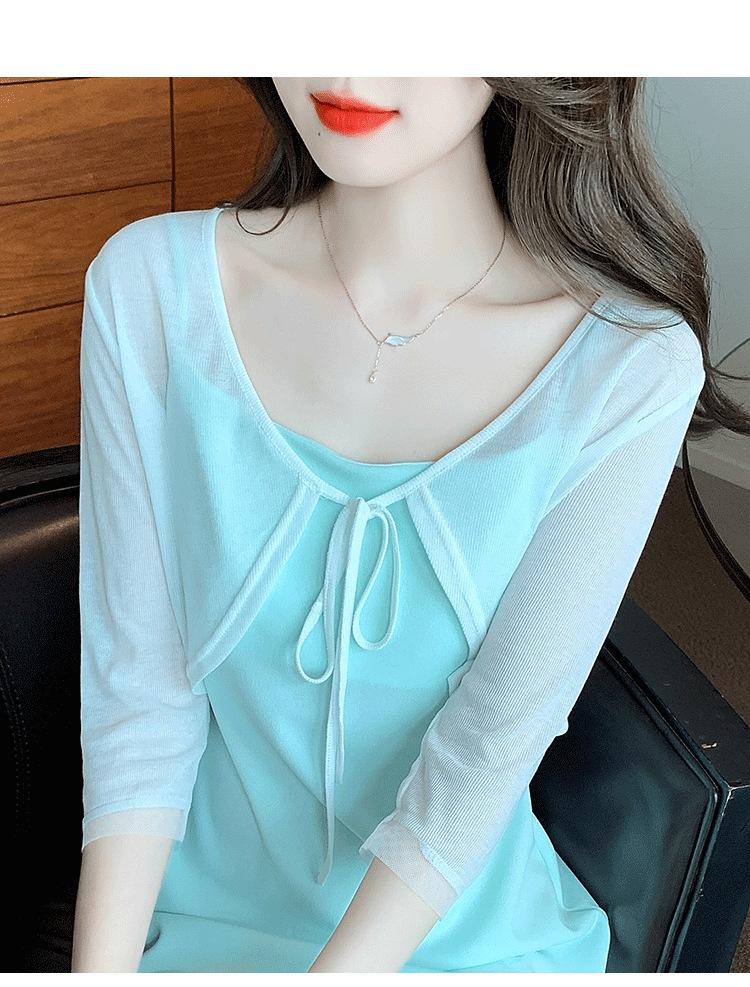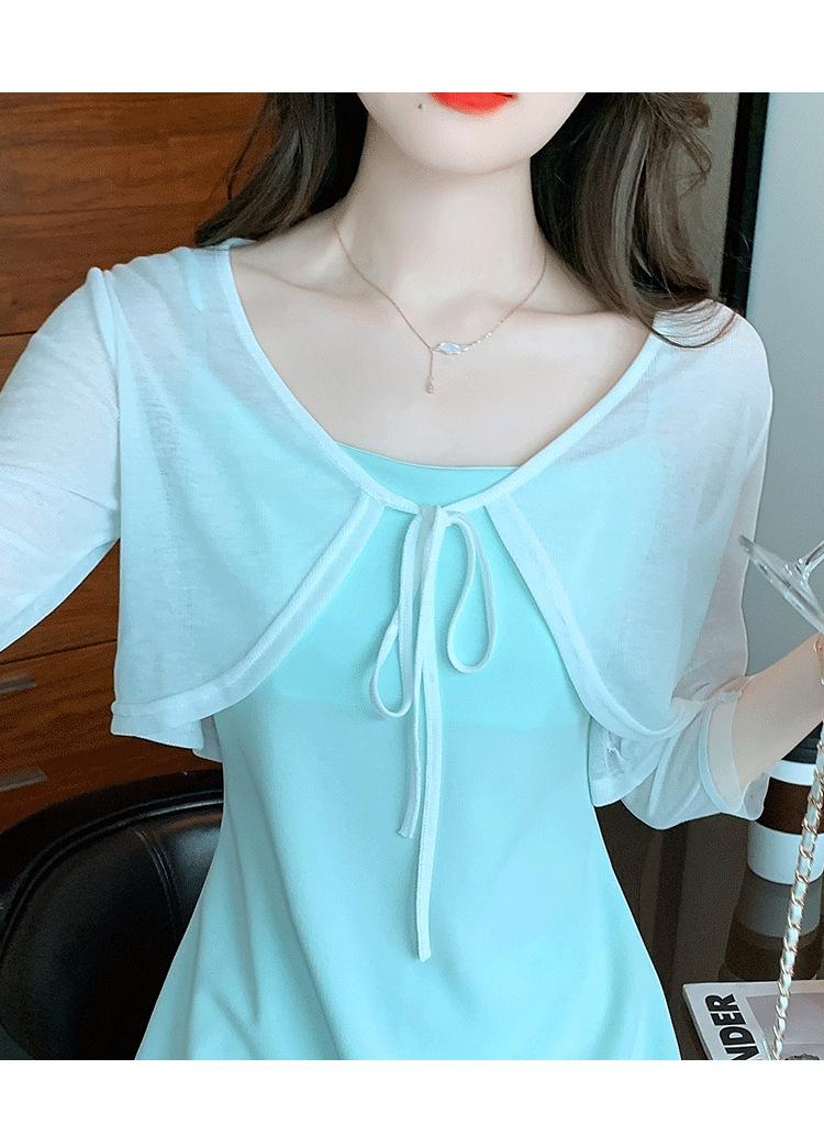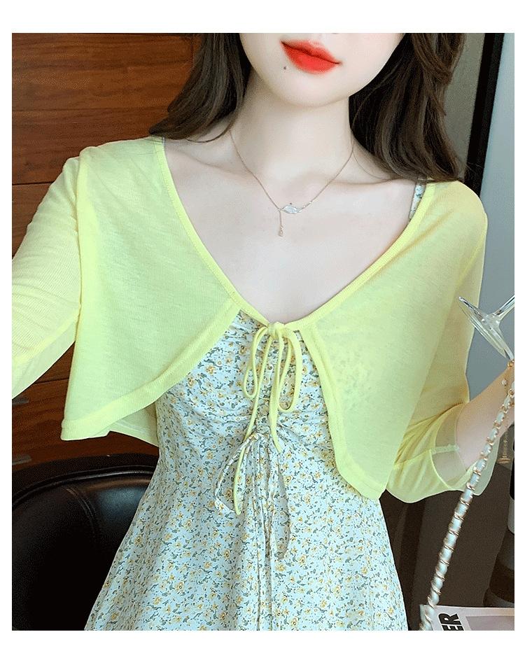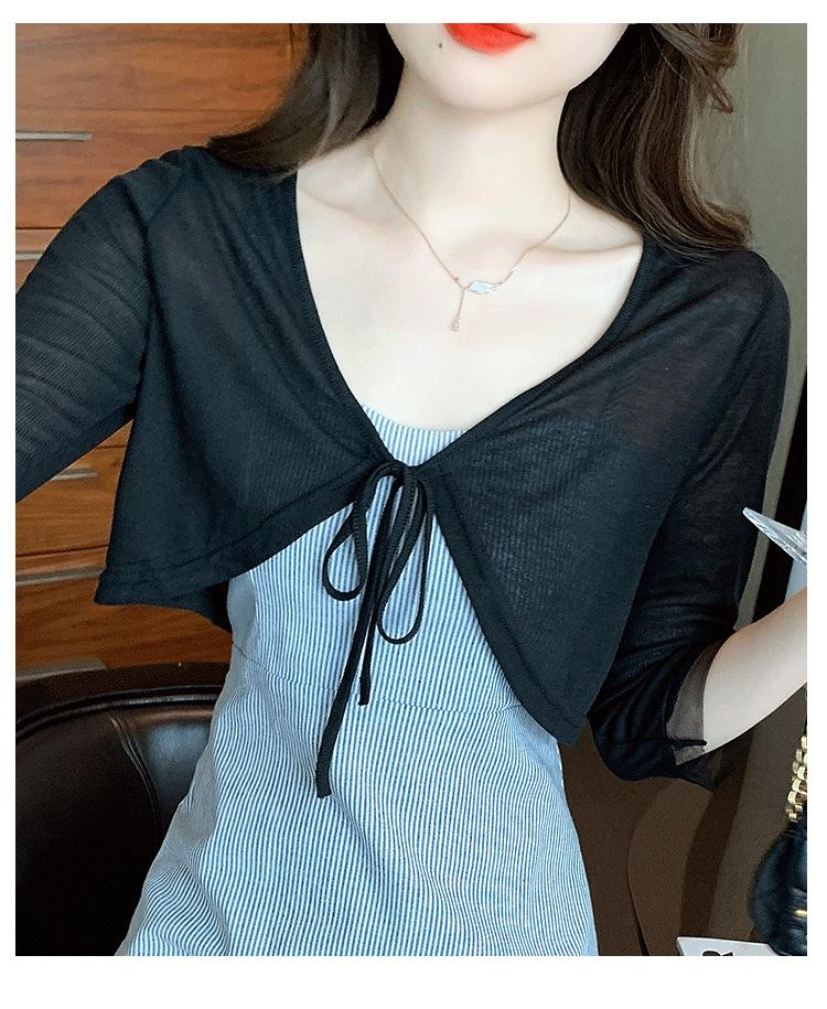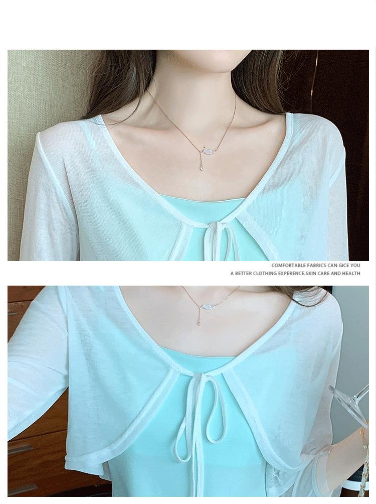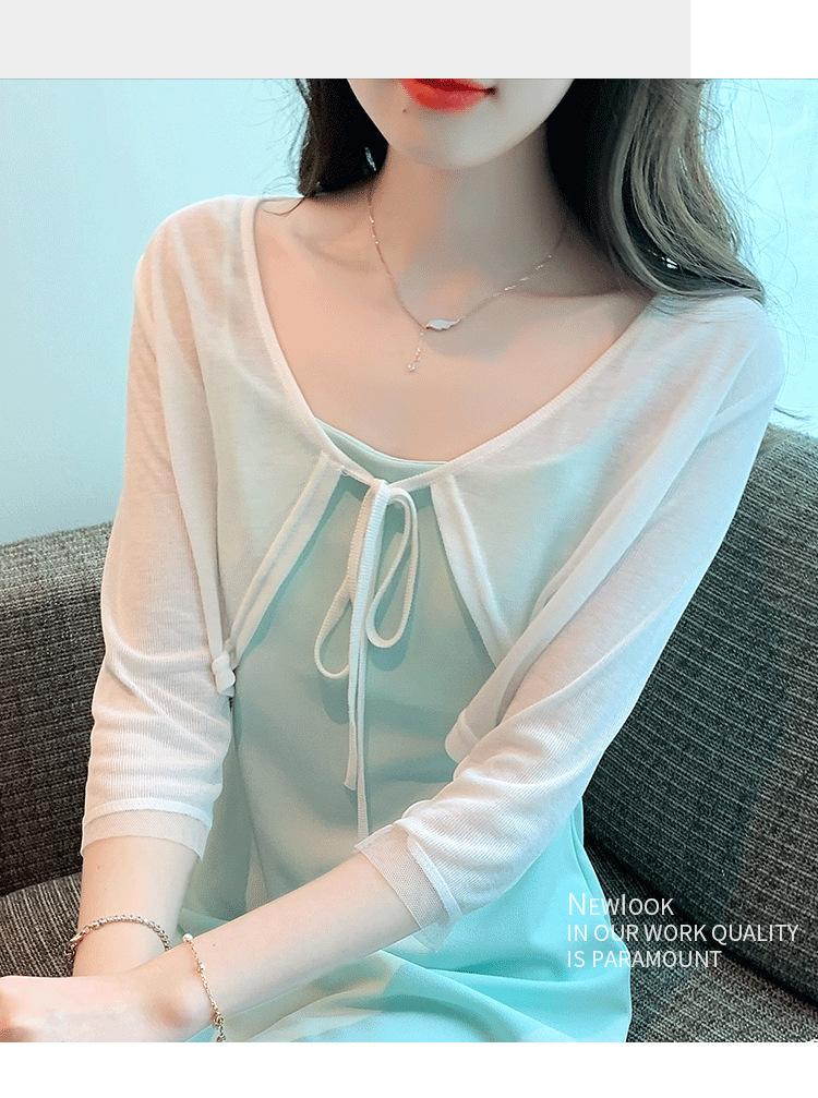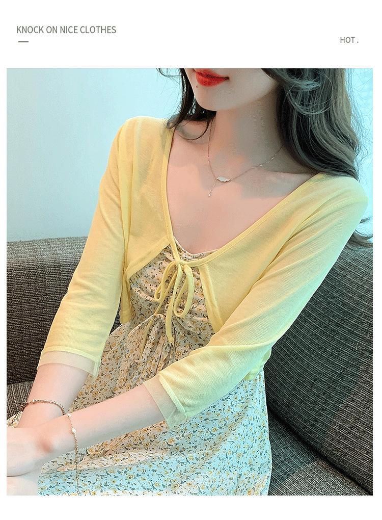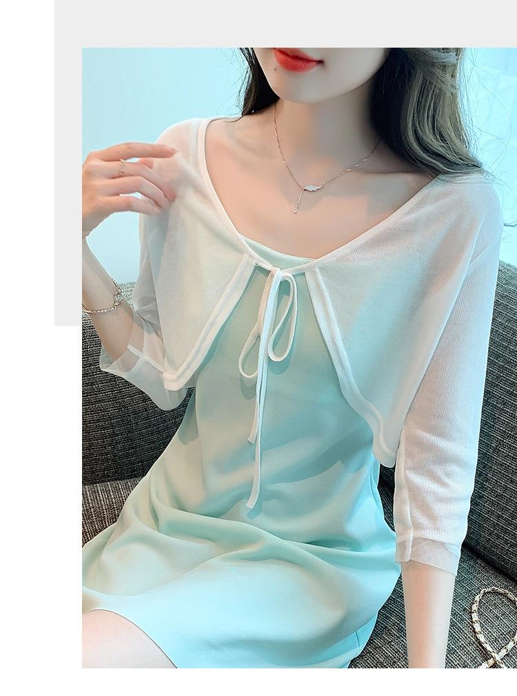 Primavera y Verano 2025 Talla Grande Chal de Chifón para Mujer Manga Media Chaqueta Pequeña Suéter de Punto Chaqueta Francesa Cárdigan Protección Solar