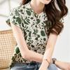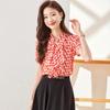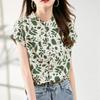 Camisa de Gasa para Mujer de Manga Corta Top Floral para Mujer 2025 Verano Nuevo Estilo de Moda Camisa Estampada Francesa Estilo Delgado