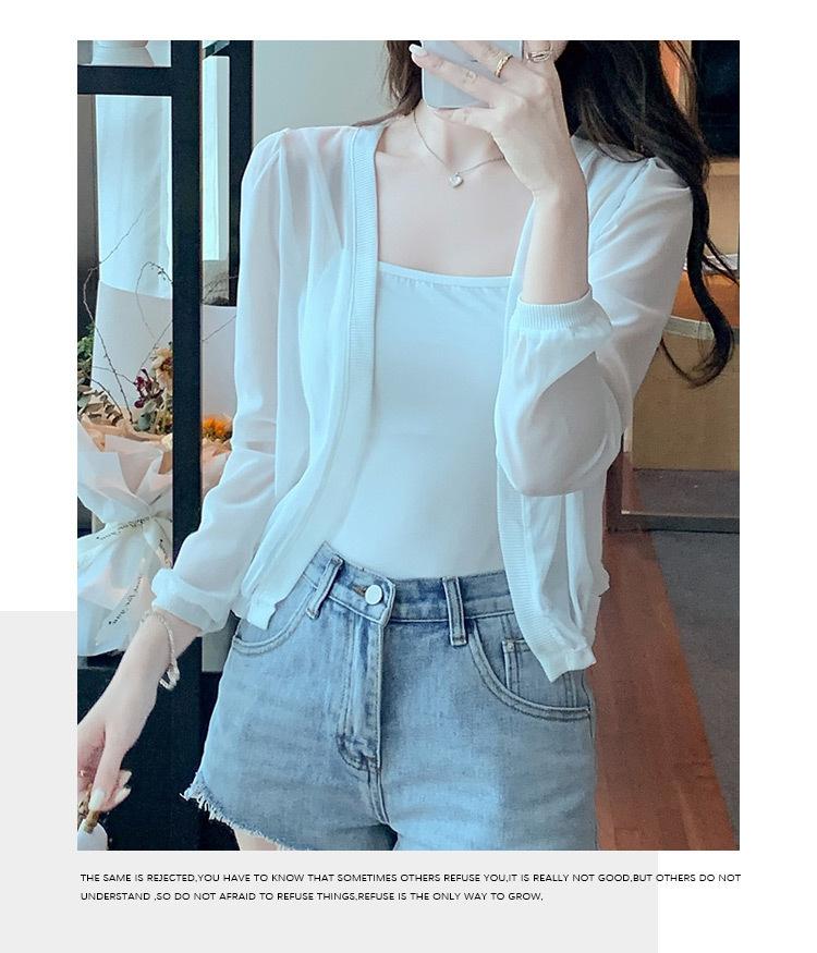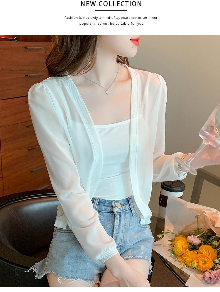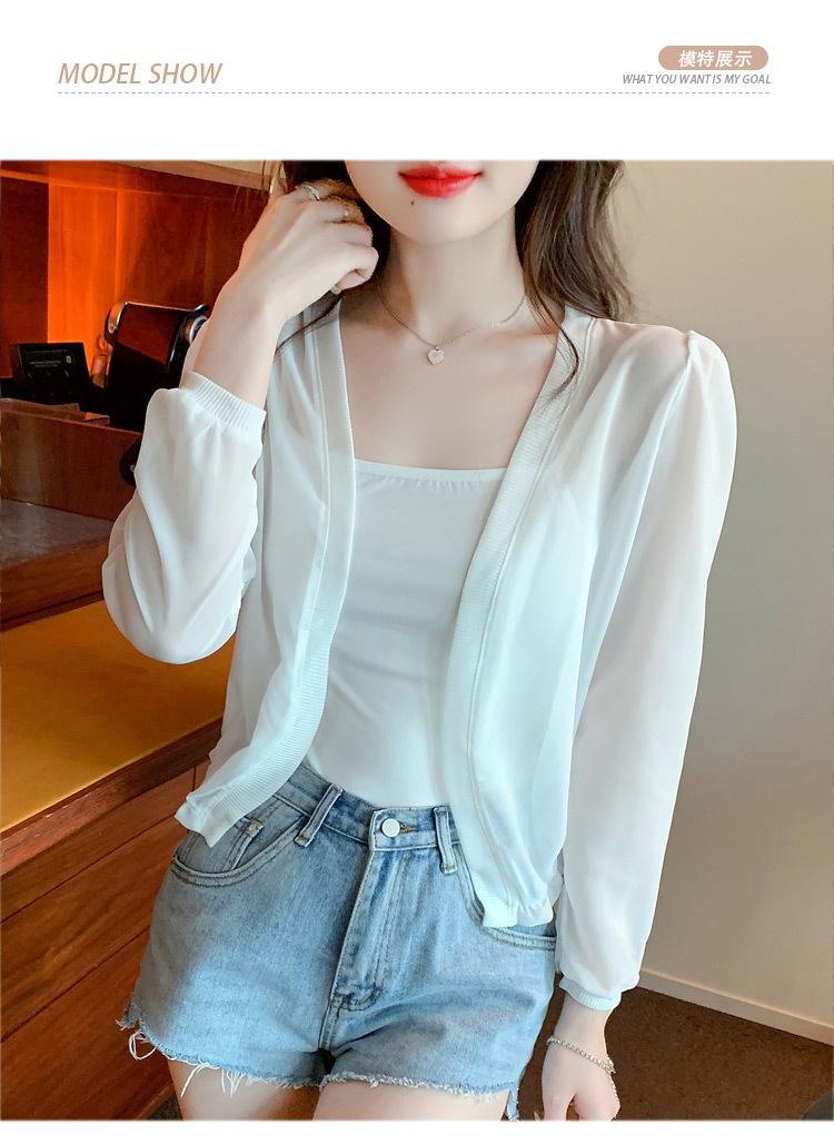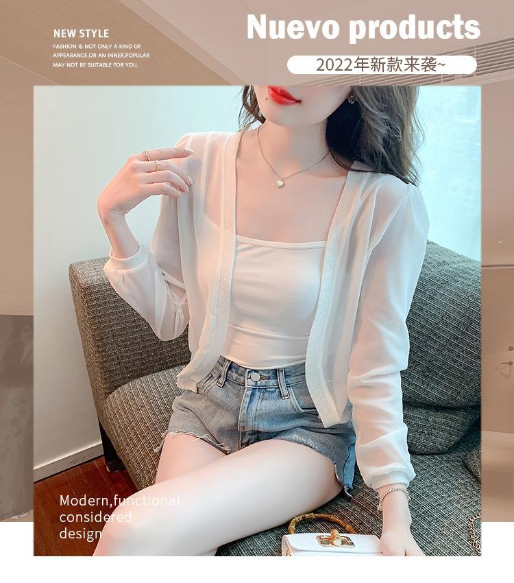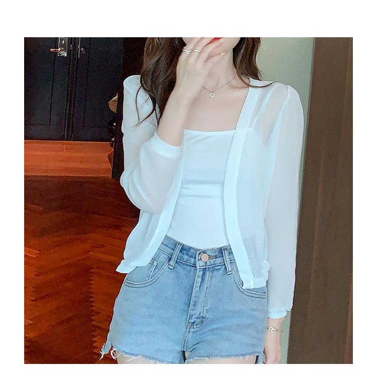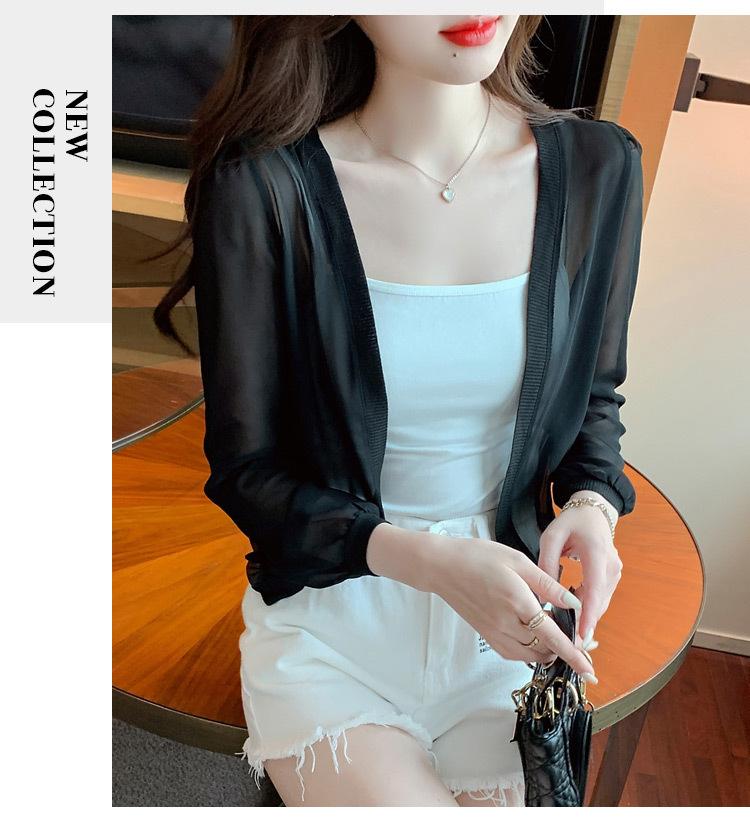 Ropa de Protección Solar para Mujer, Chal Pequeño para Exterior, Cárdigan Corto de Chifón Fino de Moda de Verano 2025 para Mujer con Falda de Tirantes