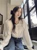 Camisa Bonita Chic Estilo Francés Camisa Dulce para Mujer Verano Cuello de Muñeca Manga Abullonada Suelta Base Top Interior Hada