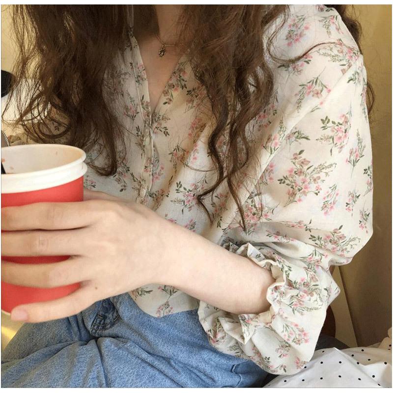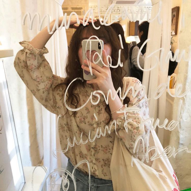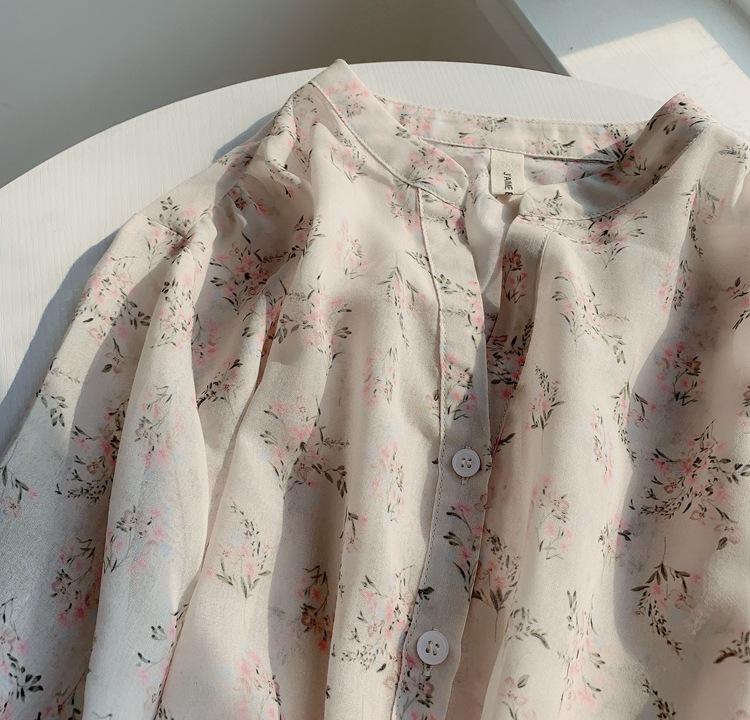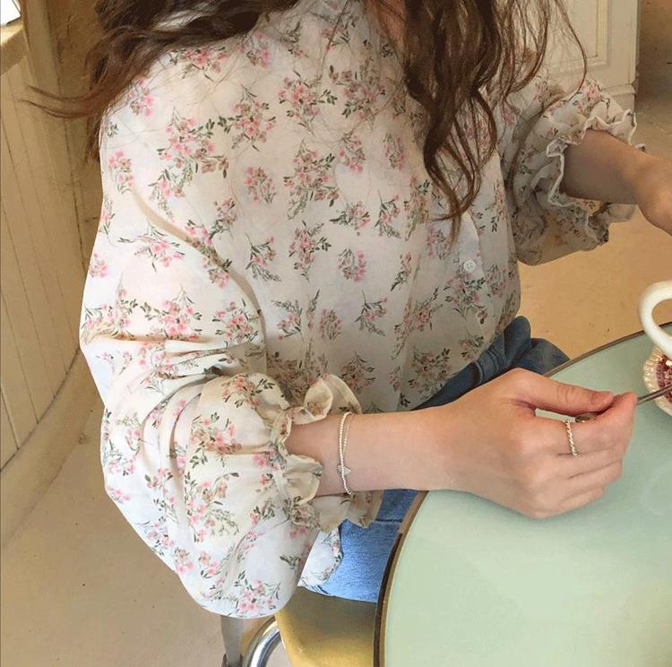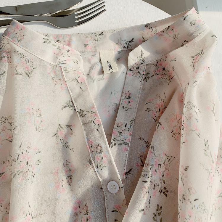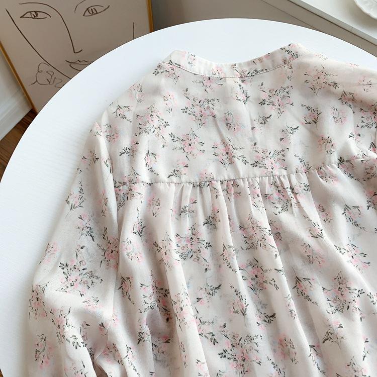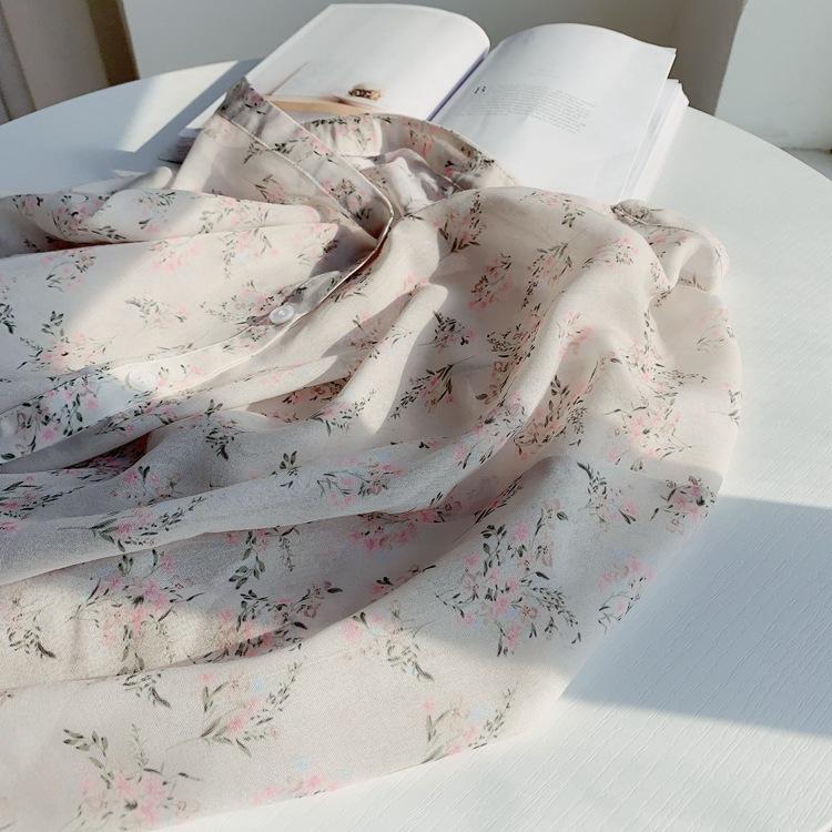 Camisa de gasa nueva 2025 para mujer de verano delgada estilo coreano camisa de mujer versátil de manga larga elegante estampada top francés