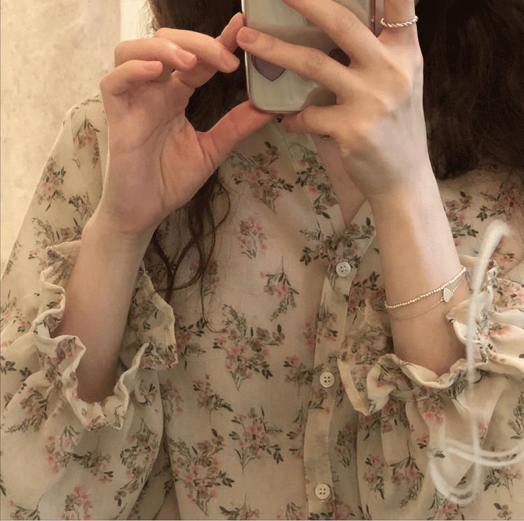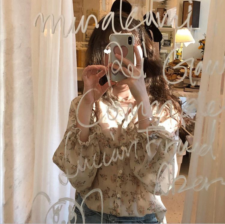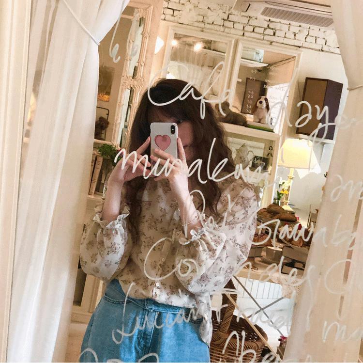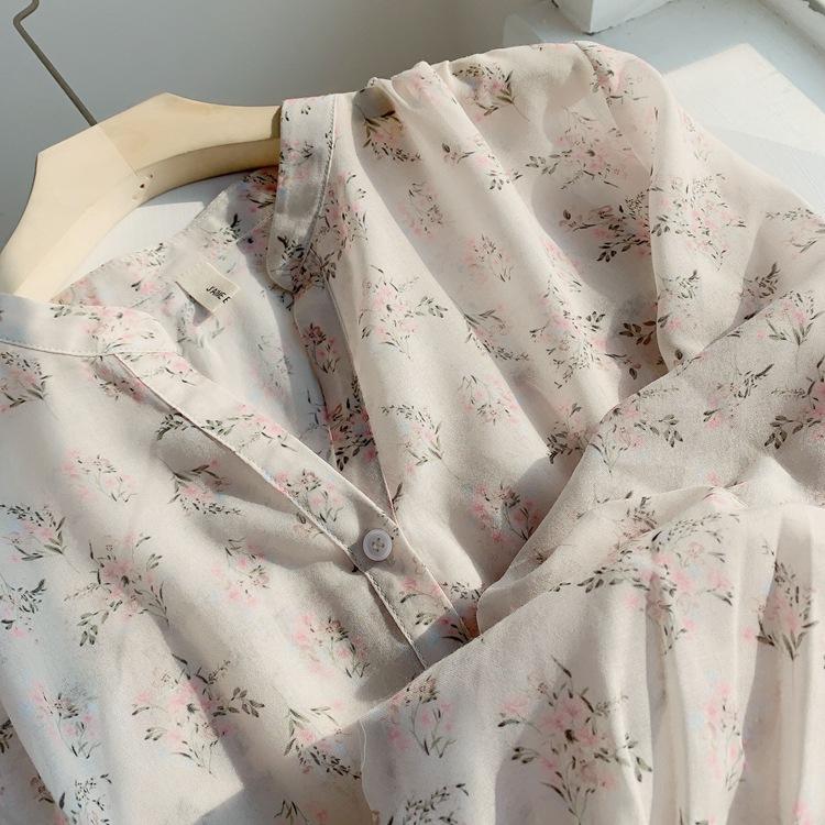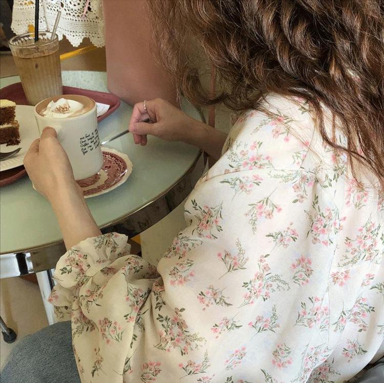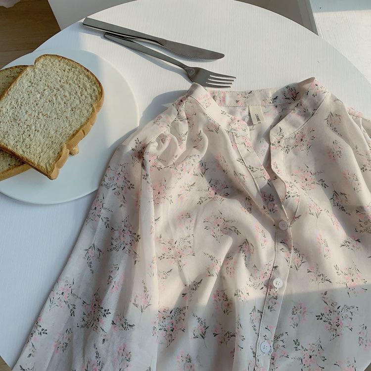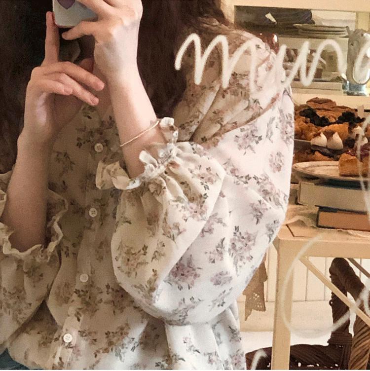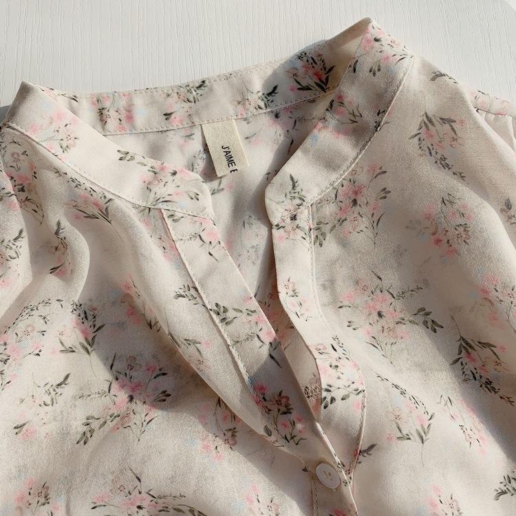 Camisa de gasa nueva 2025 para mujer de verano delgada estilo coreano camisa de mujer versátil de manga larga elegante estampada top francés