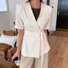 Chaqueta de traje francesa de alta gama, sencilla, fresca, de un solo pecho, con cuello en V y manga corta.
