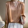 Camisa de Manga Larga de Seda Imitación Francesa para Mujer Primavera y Otoño 2025 Diseño de Camisa Nicho Top Interior de Satén de Acetato