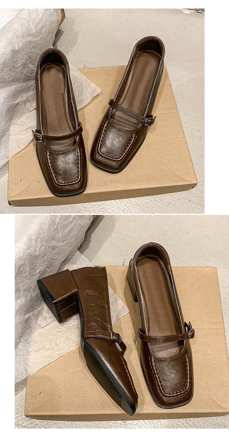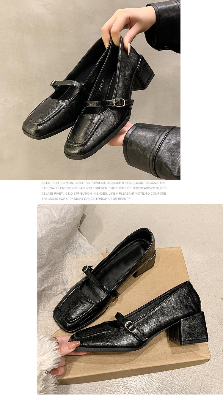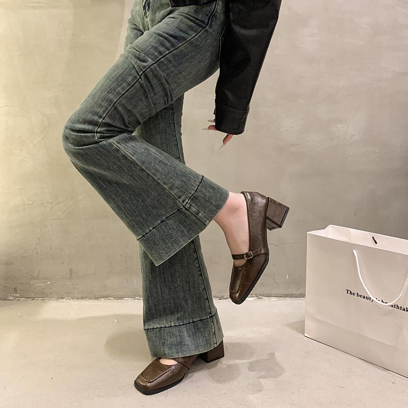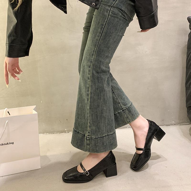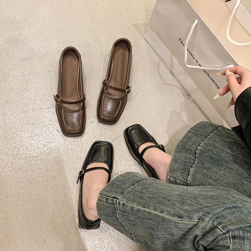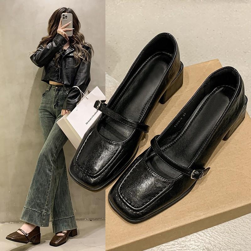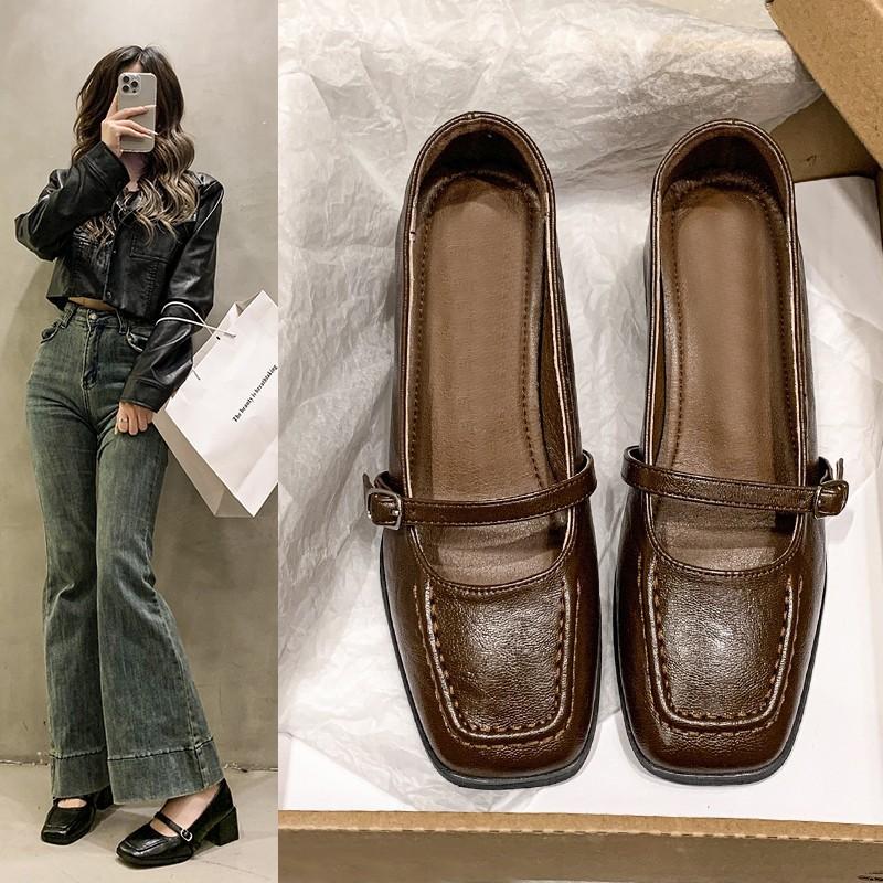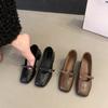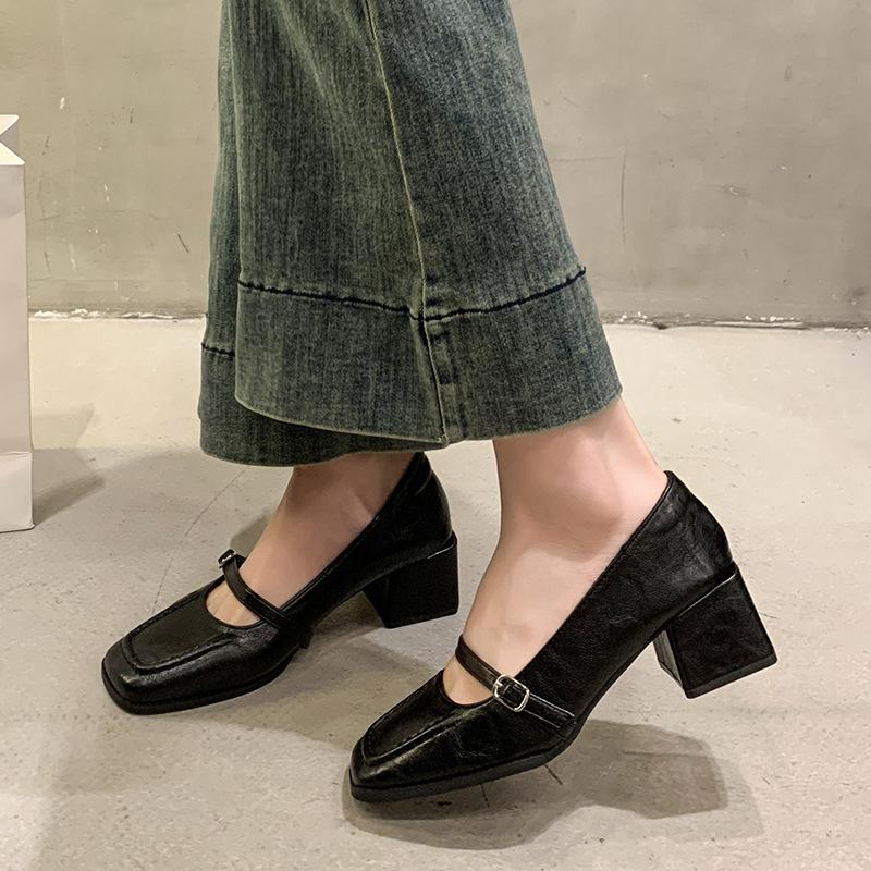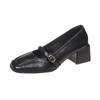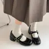 Zapatos de noche retro de tacón grueso, planos franceses, para mujer, primavera y otoño 2025, negros, Mary Jane, pequeños zapatos de cuero.