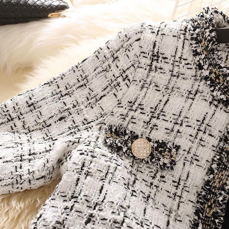 Chaqueta de Tweed Elegante Versátil de Nuevo Estilo para Primavera y Otoño 2025 Abrigo de Tweed Old Money para Mujer Adelgazante