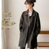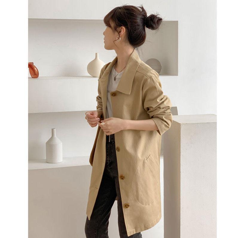 [Con lino] Abrigo cortavientos de mujer de longitud media sencillo de principios de otoño, abrigo holgado de estilo coreano para mujer, abrigo versátil de color sólido para estudiantes.