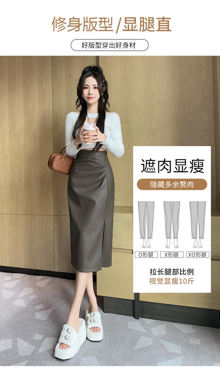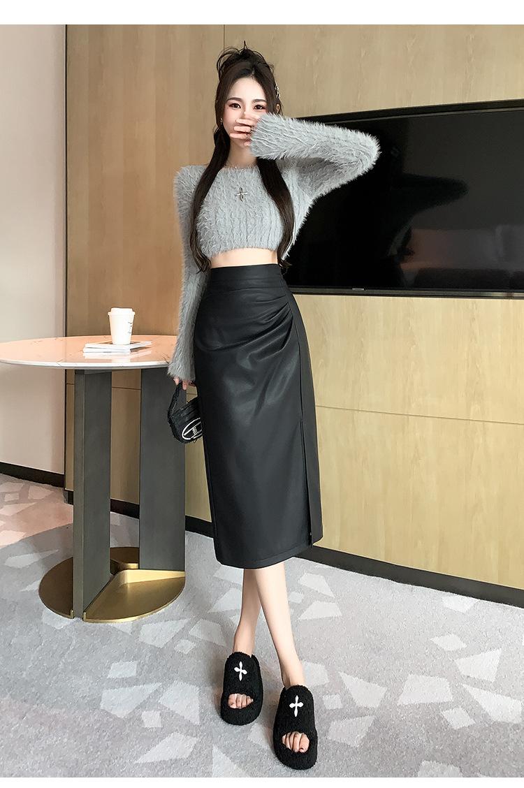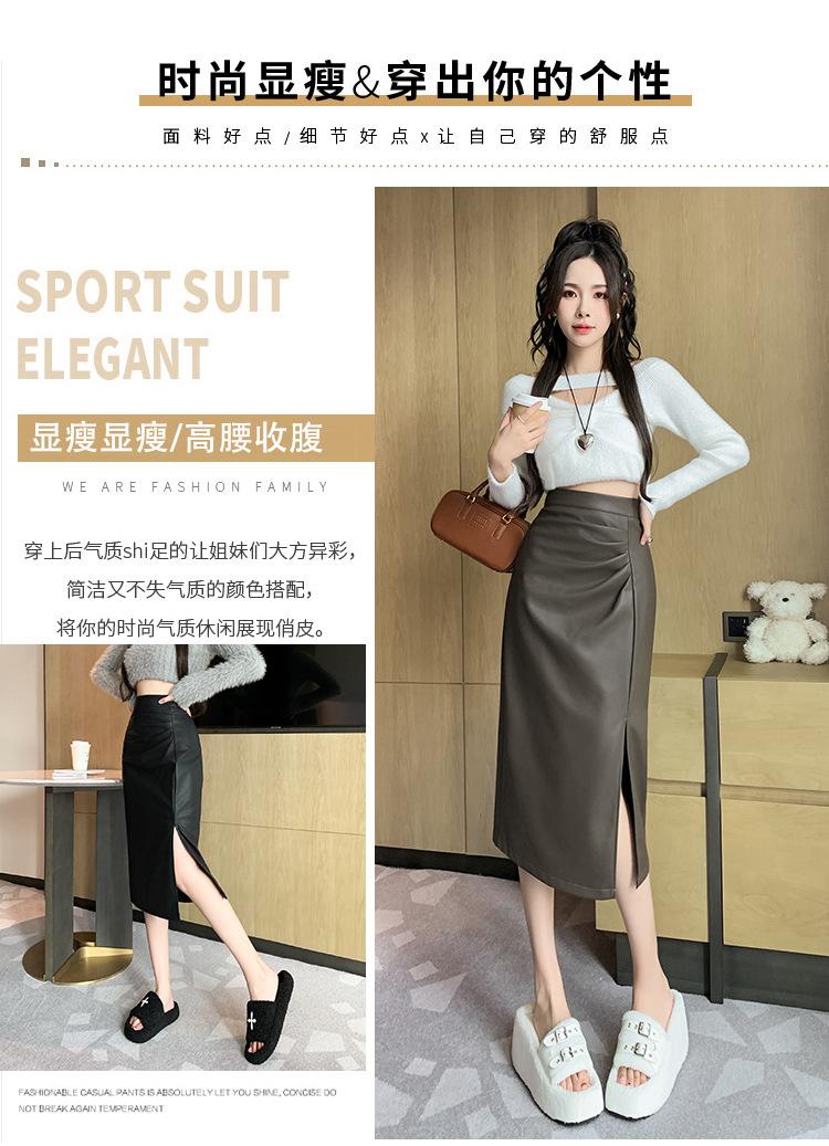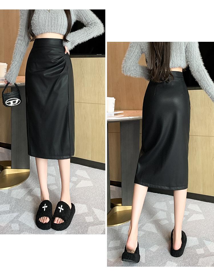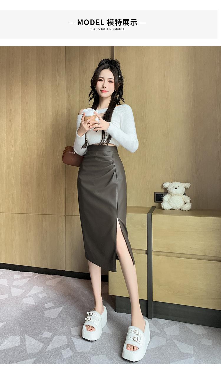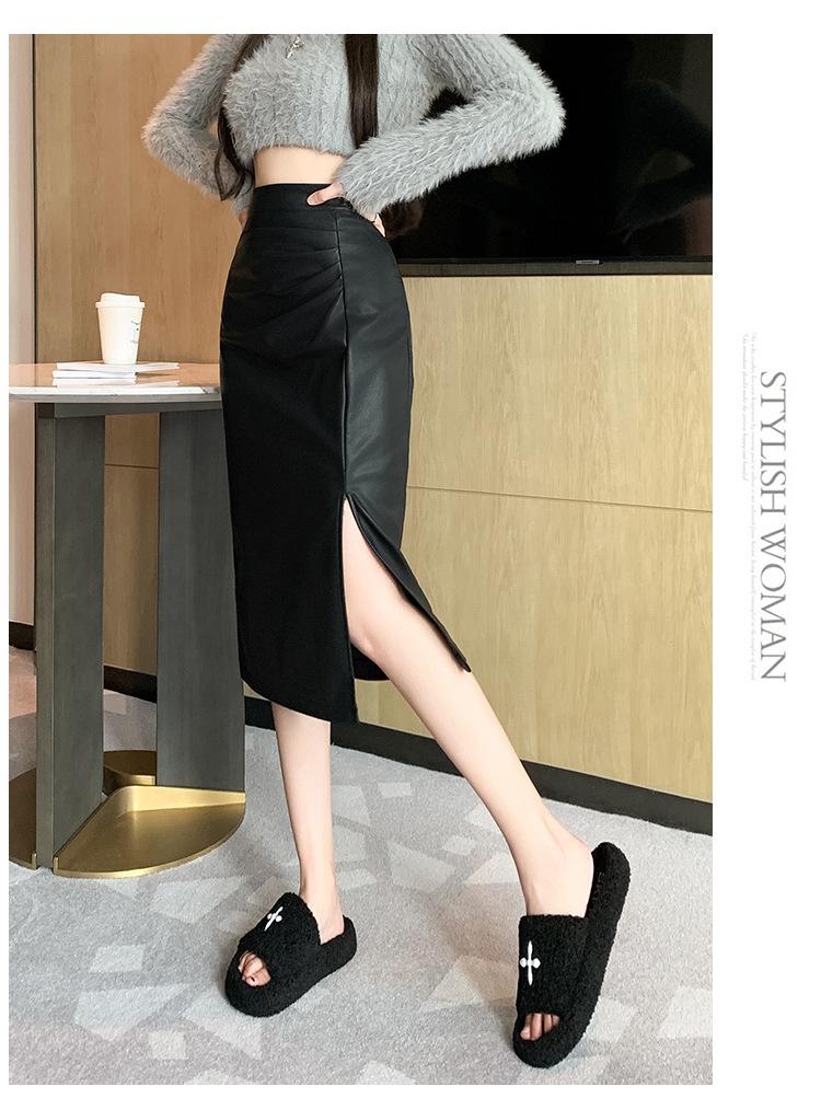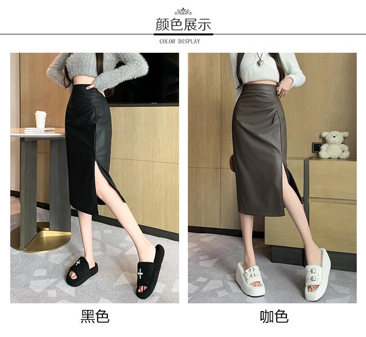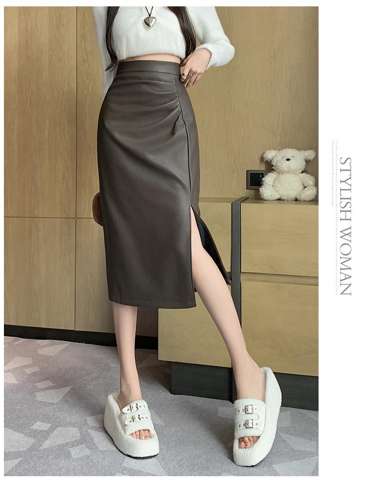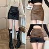 Diseño Falda Pequeña de Cuero Plisada para Mujer Otoño e Invierno 2023 Nueva PU Cadera Cintura Alta Plisada Falda Midi