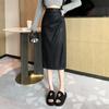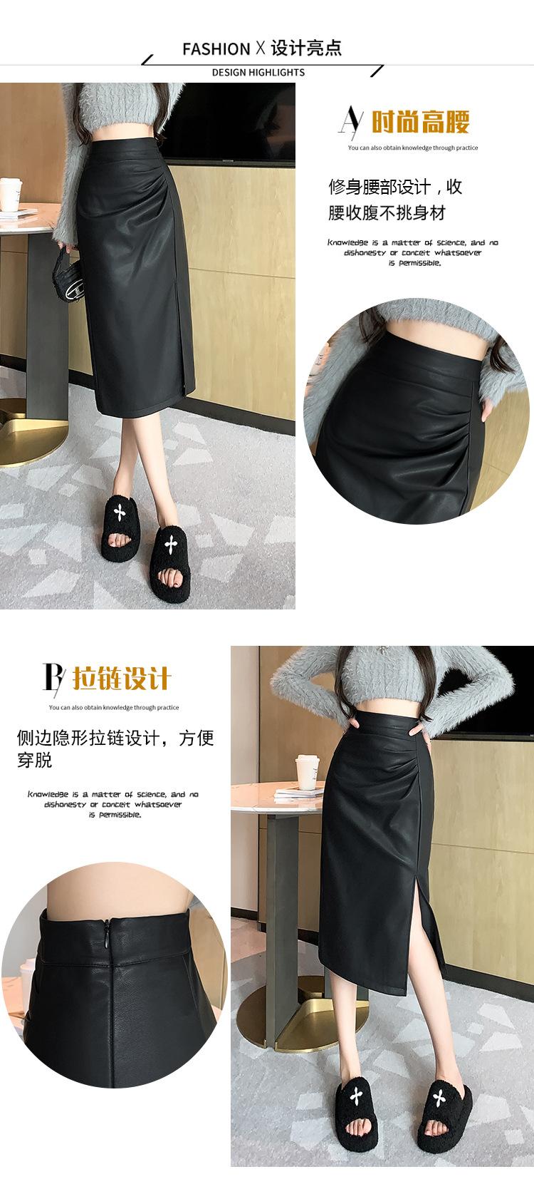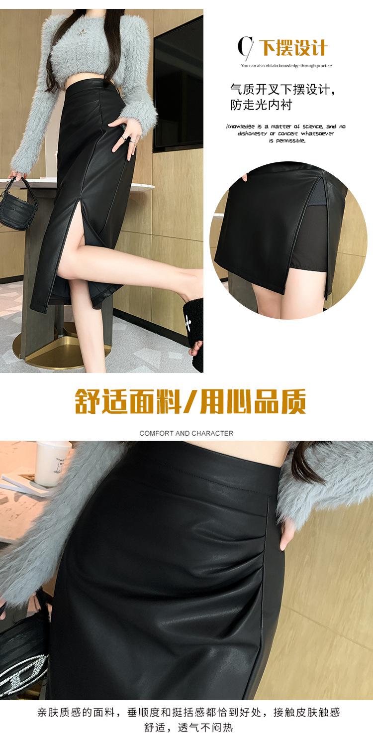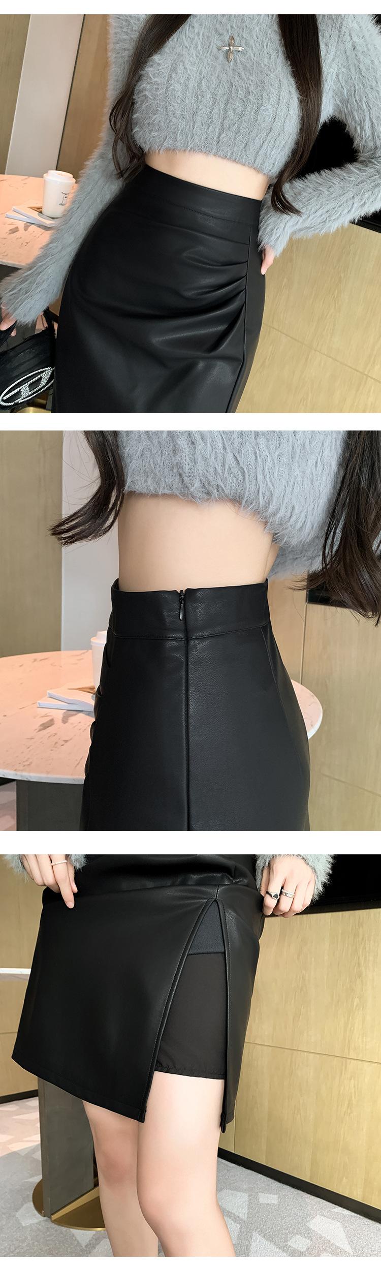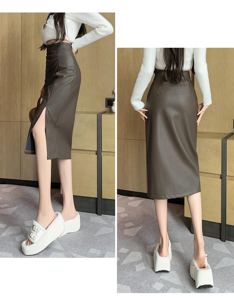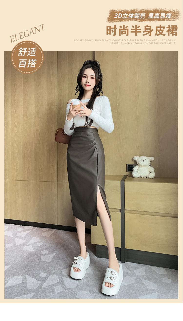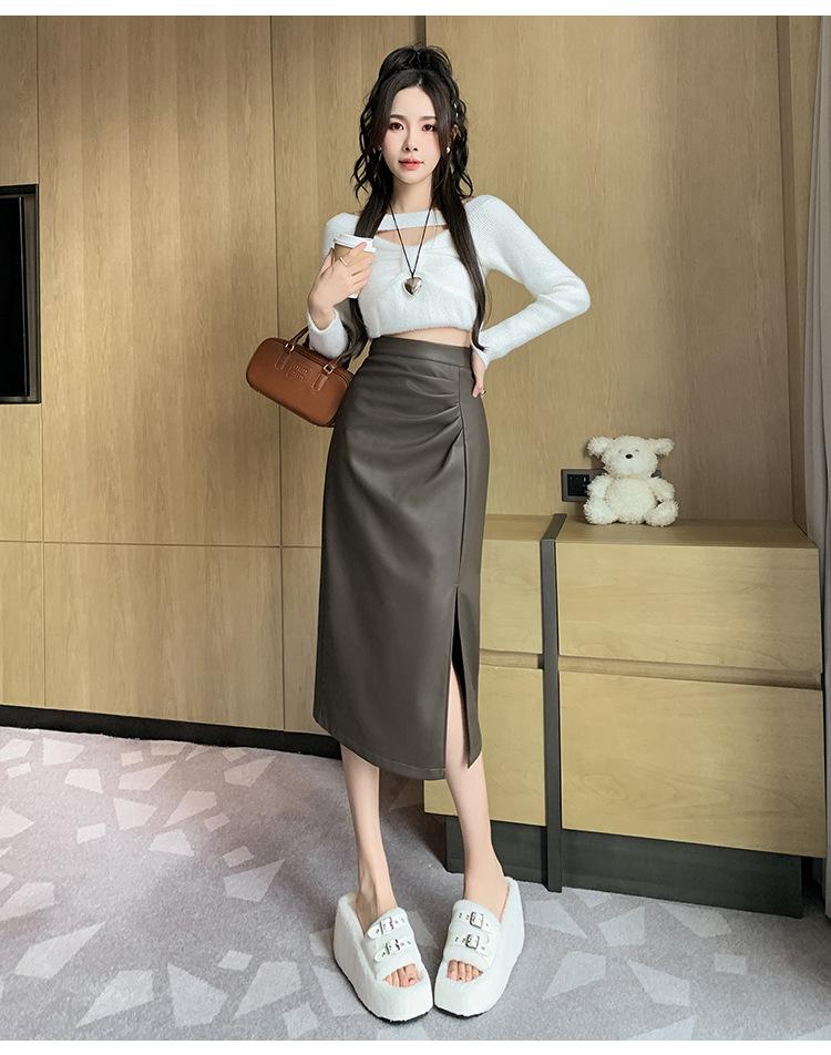 Diseño Falda Pequeña de Cuero Plisada para Mujer Otoño e Invierno 2023 Nueva PU Cadera Cintura Alta Plisada Falda Midi