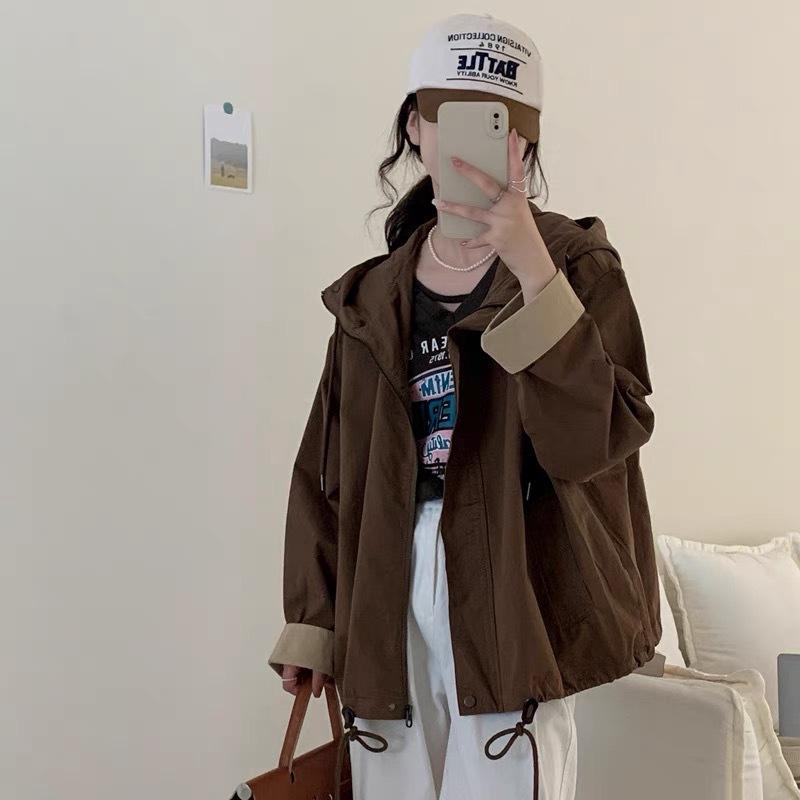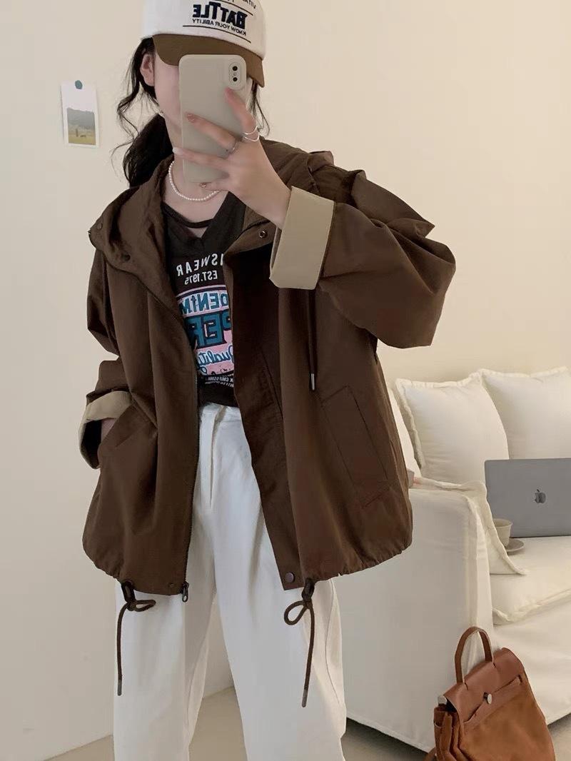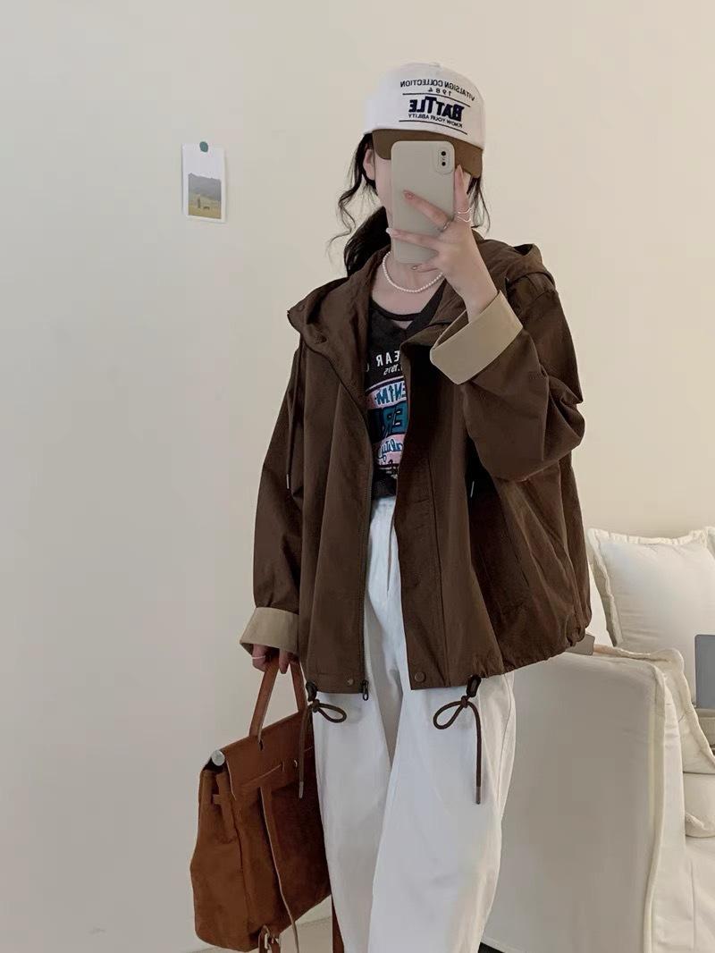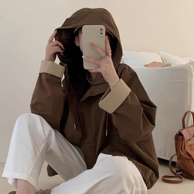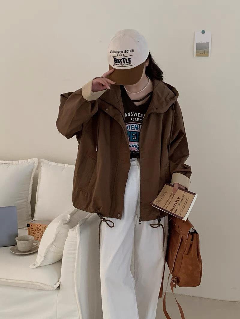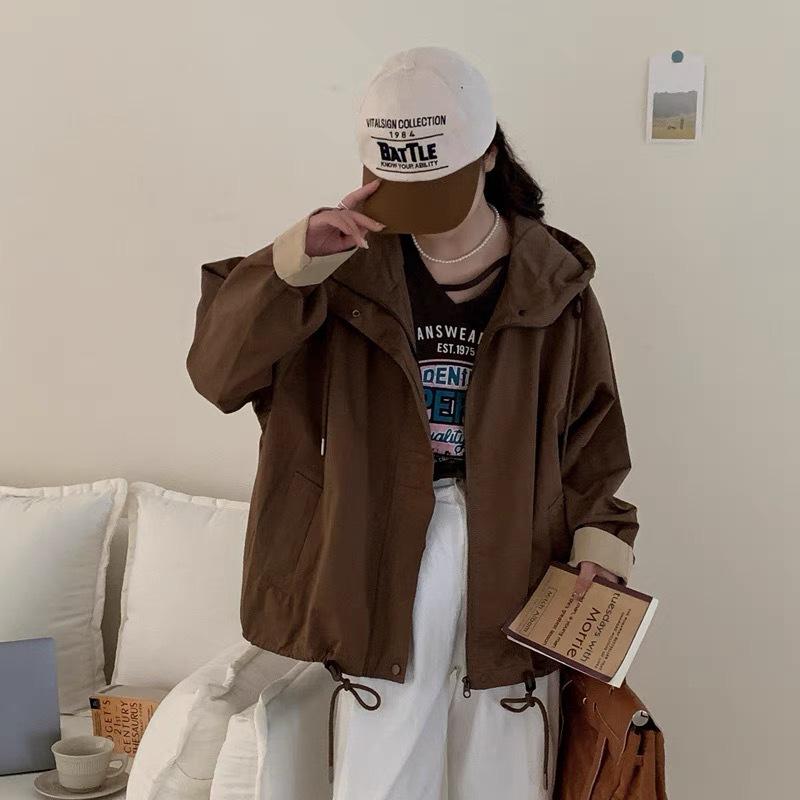 Abrigo de Trabajo con Capucha para Mujer Estilo Coreano Holgado con Sentido del Diseño Abrigo Corto Chaqueta Top Estilo Perezoso Dongdaemun