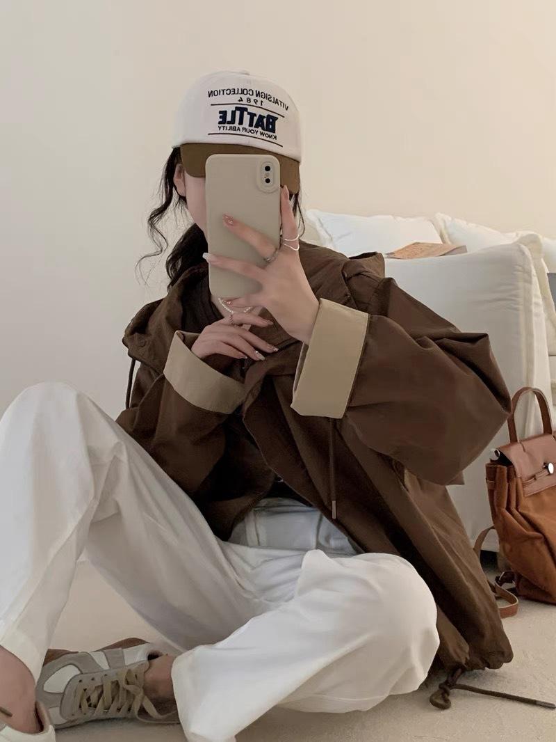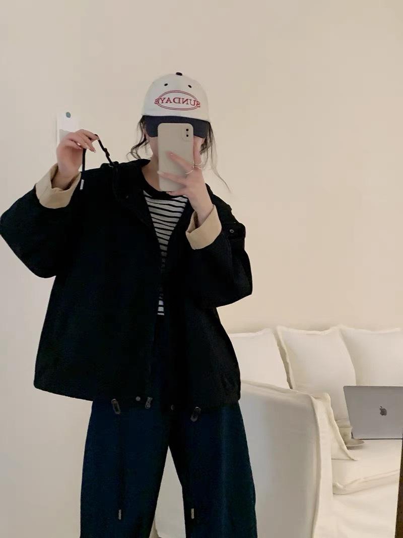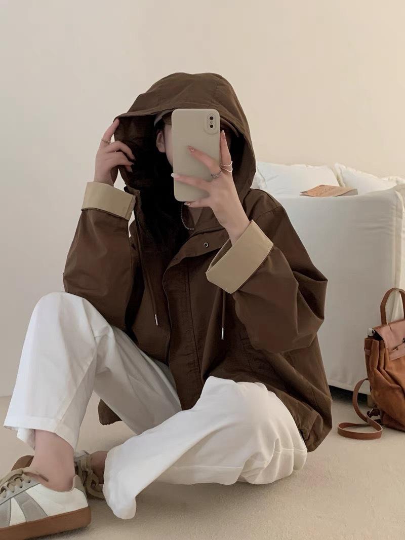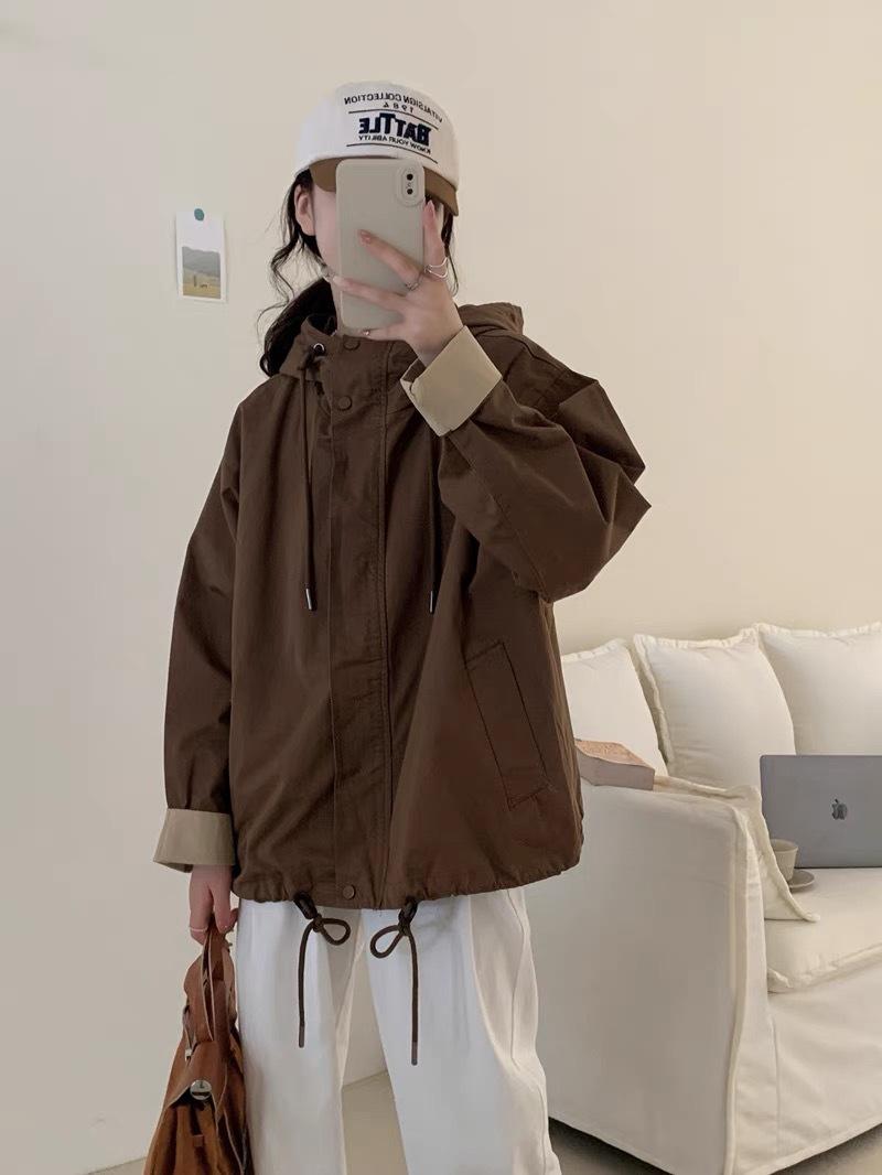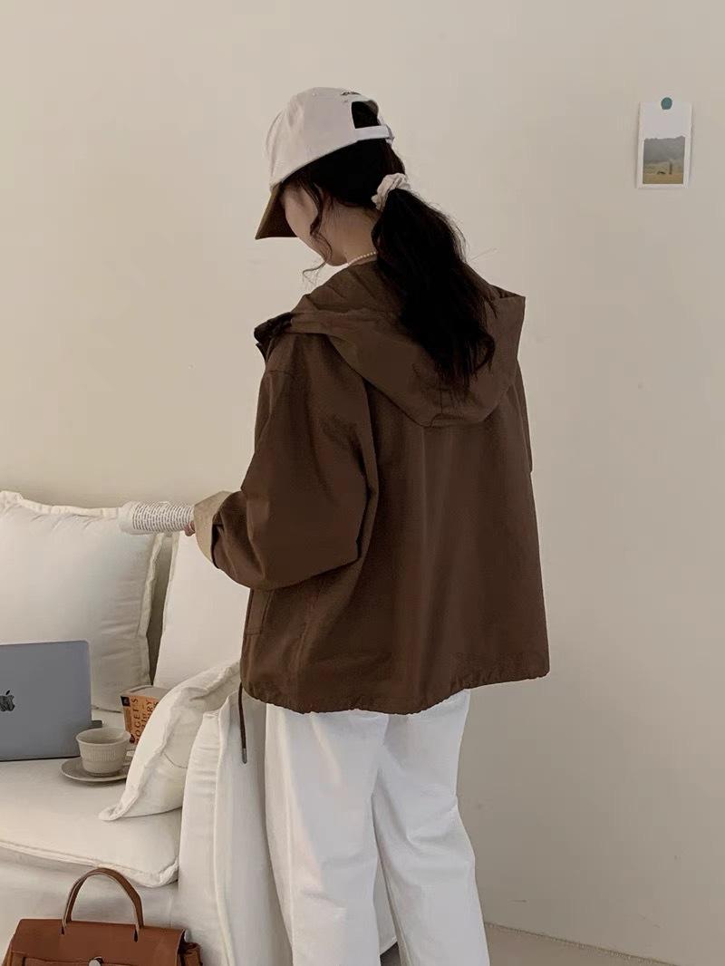 Abrigo de Trabajo con Capucha para Mujer Estilo Coreano Holgado con Sentido del Diseño Abrigo Corto Chaqueta Top Estilo Perezoso Dongdaemun