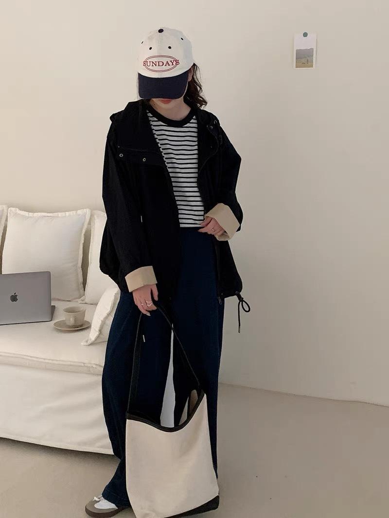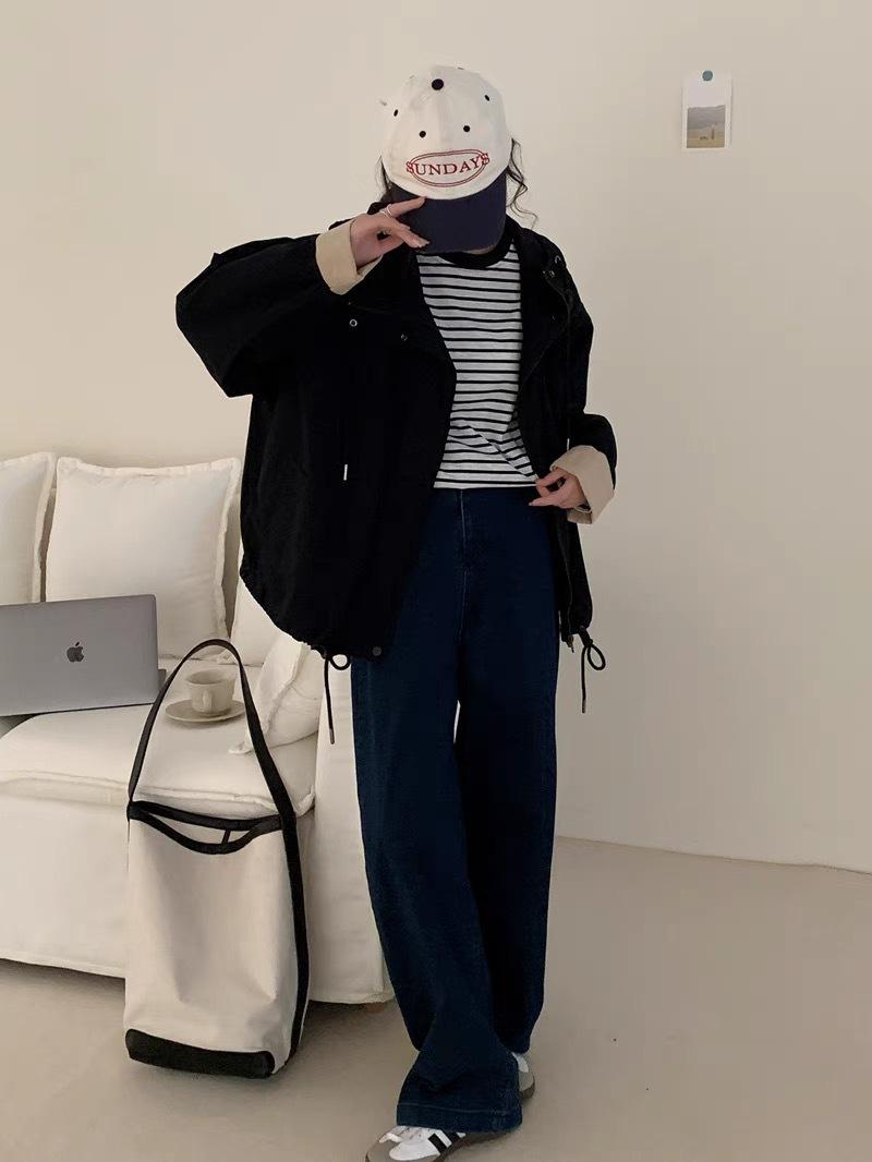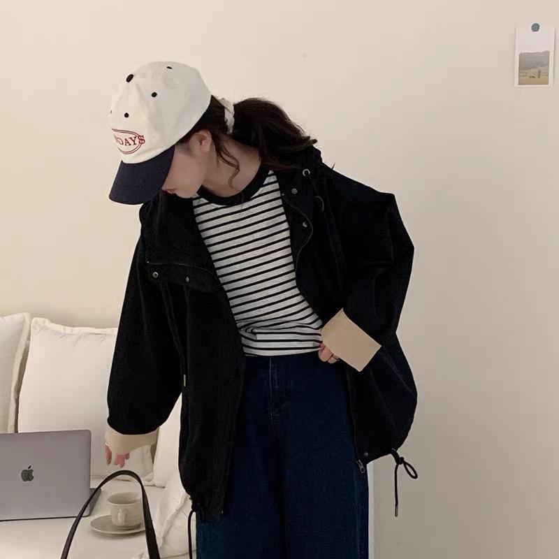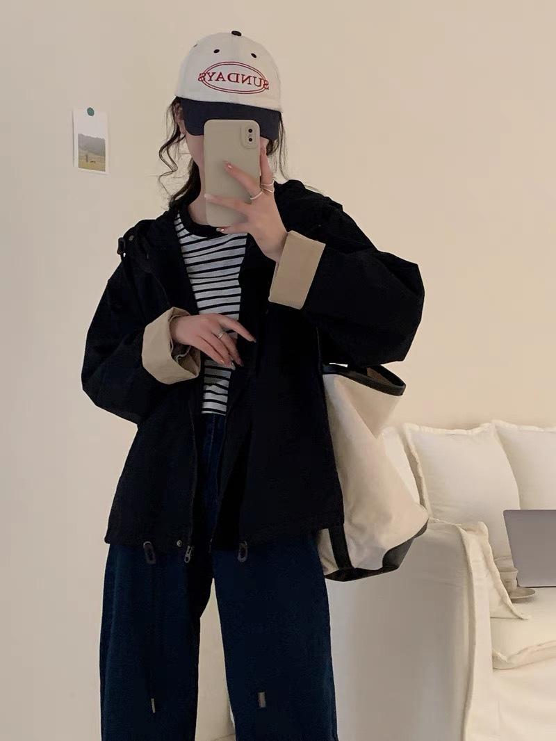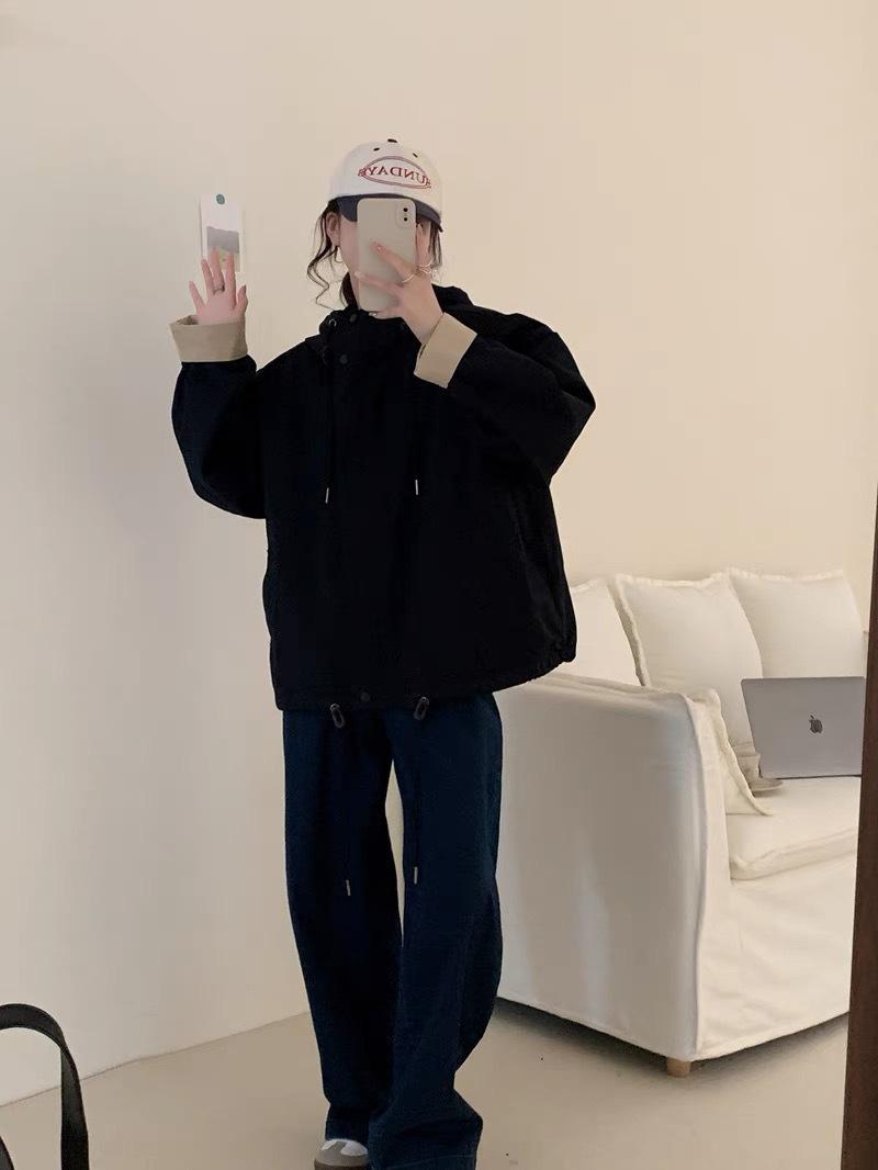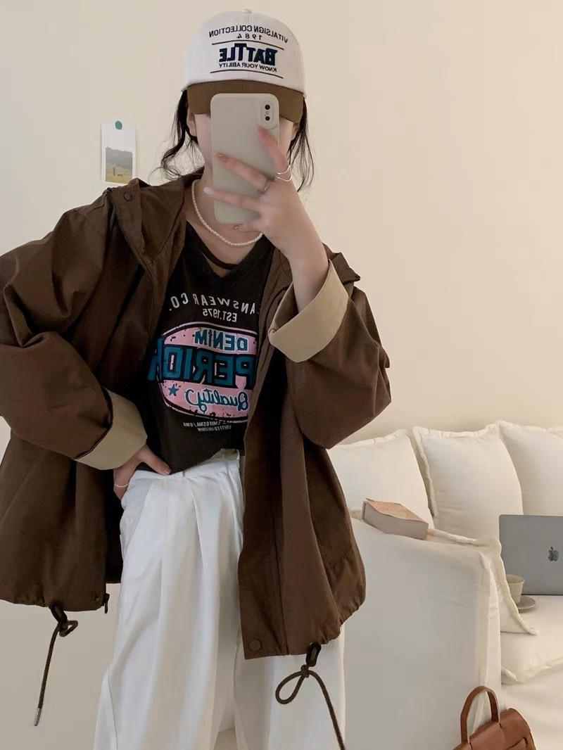 Abrigo de Trabajo con Capucha para Mujer Estilo Coreano Holgado con Sentido del Diseño Abrigo Corto Chaqueta Top Estilo Perezoso Dongdaemun