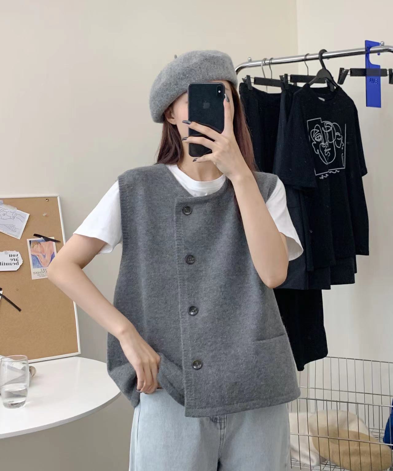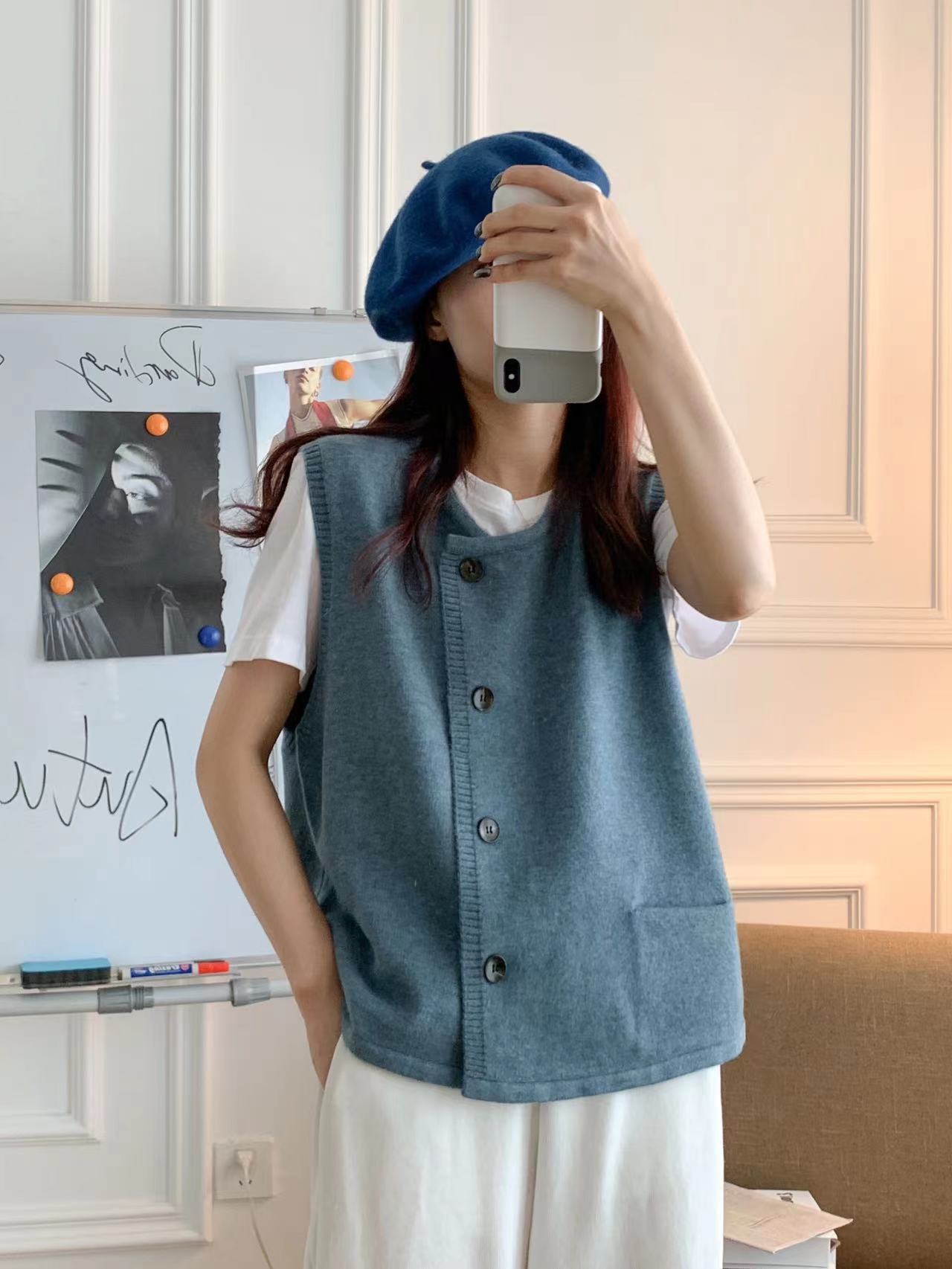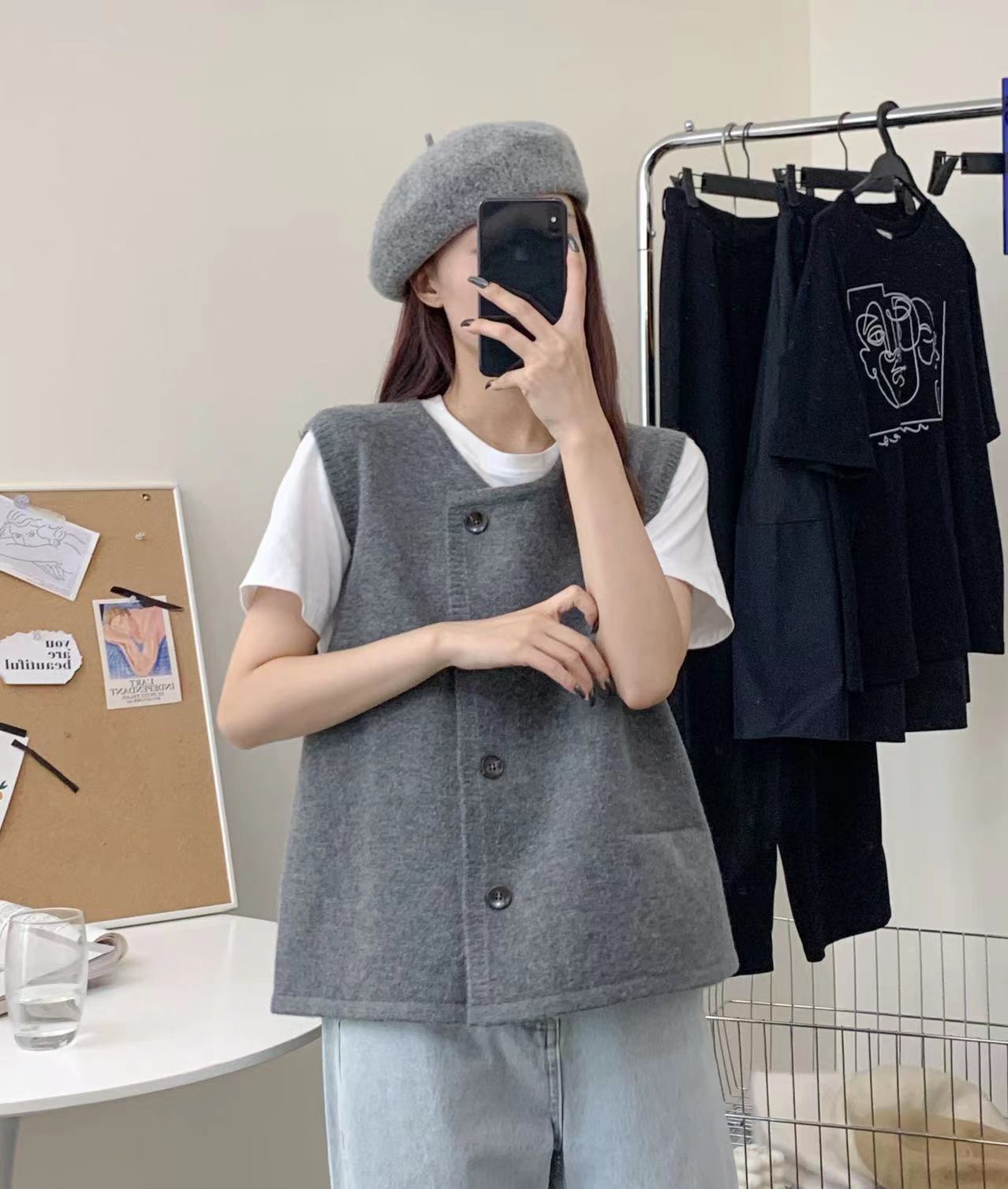 Chaleco nuevo de primavera y otoño 2025 para mujer, moda, holgado, ajustado, de punto, exterior