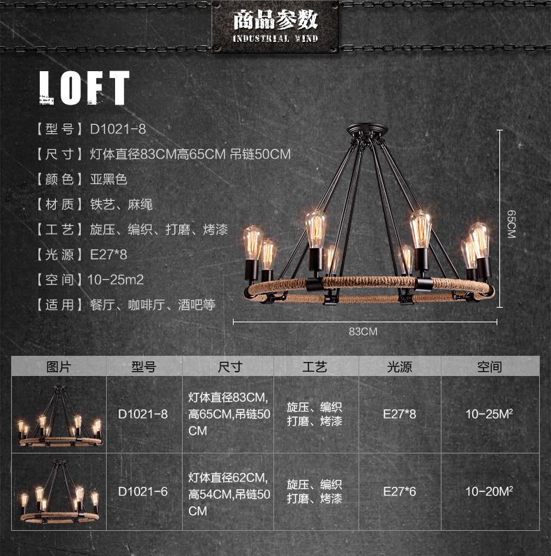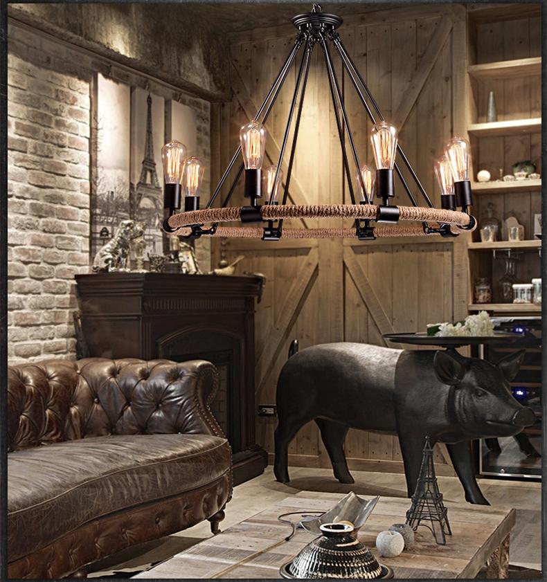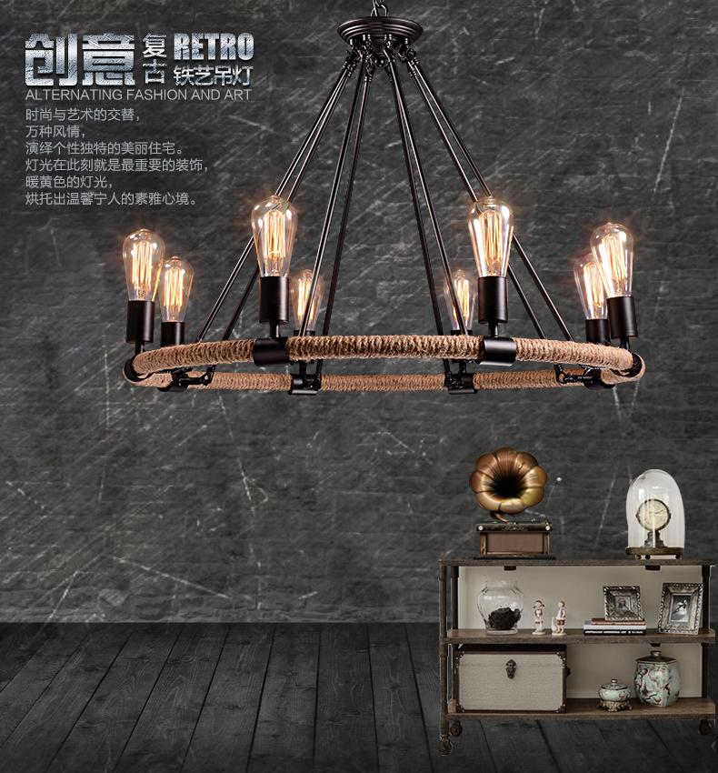 Restaurante Americano Campestre Bar Tienda de Ropa Lámpara de Cuerda de Cáñamo Estilo Retro Industrial Loft Personalizado Iluminación Nostálgica Muebles para el Hogar
