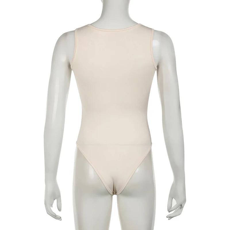 Mono sexy de verano Y2K con tirantes para mujer, corte bajo, ajustado, con letras y cuello plano, de color puro