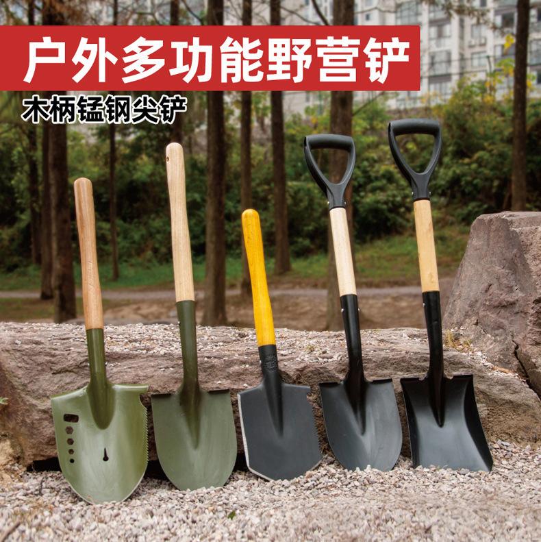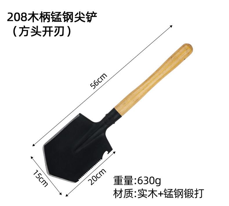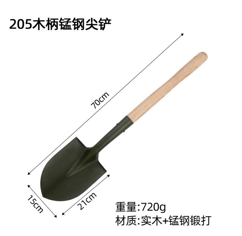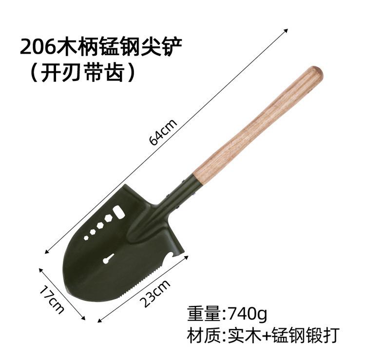 206 manganese steel pointed shovel with wooden handle (cutting blade with teeth)