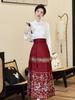 Nuevo traje de jacquard de estilo chino Ming para mujer, top Hanfu mejorado con chaleco rojo de satén dorado tejido con fénix, falda de otoño