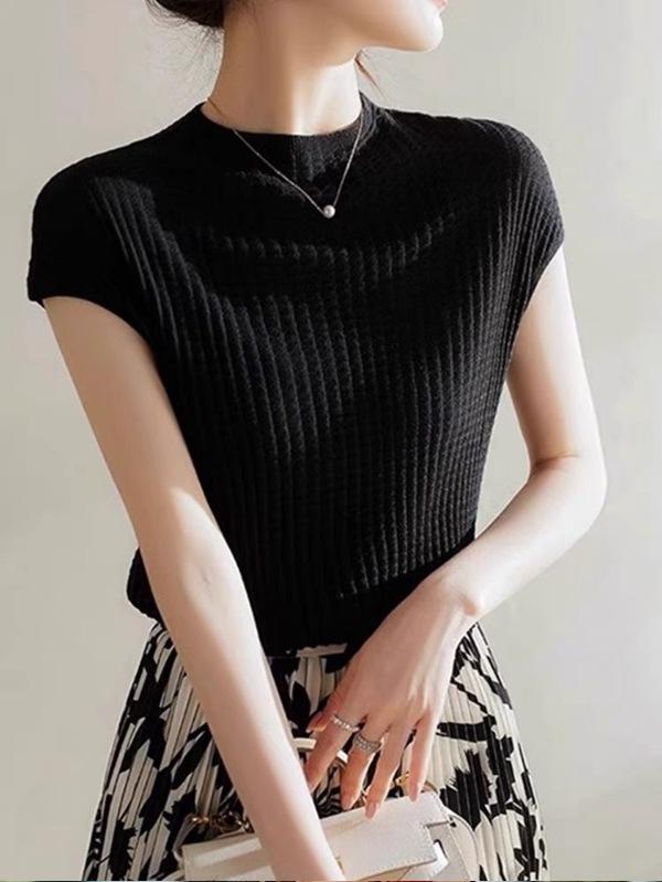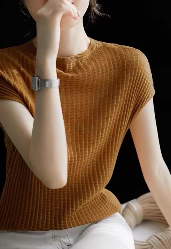 Suéter estilo coreano estilo occidental, aspecto ajustado, top holgado, elegante, de verano, informal, con cuello redondo, base interior