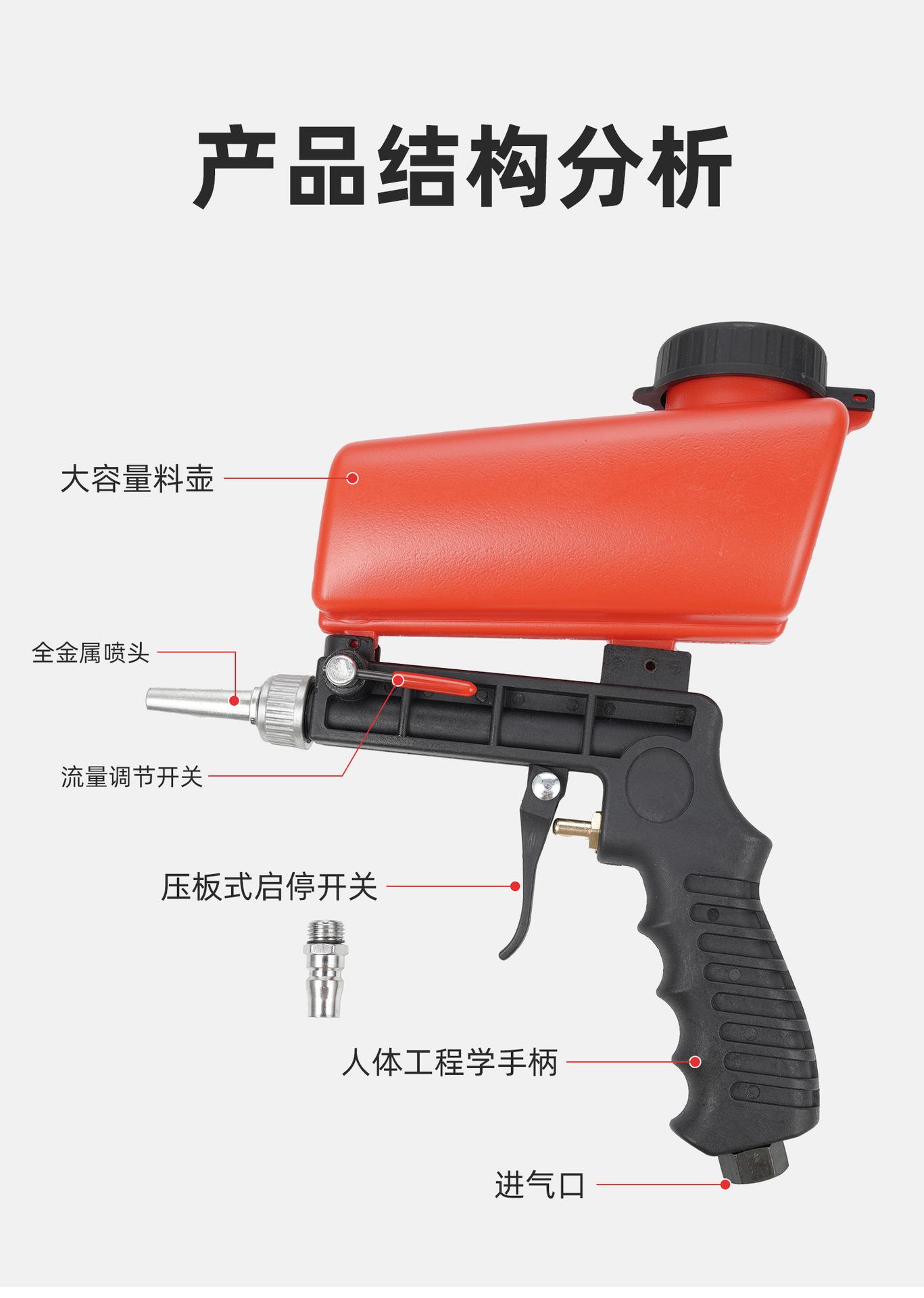 Pistola de chorro de arena neumática, pequeña pistola de chorro de arena portátil, herramienta de pulverización para renovación de escombros domésticos.