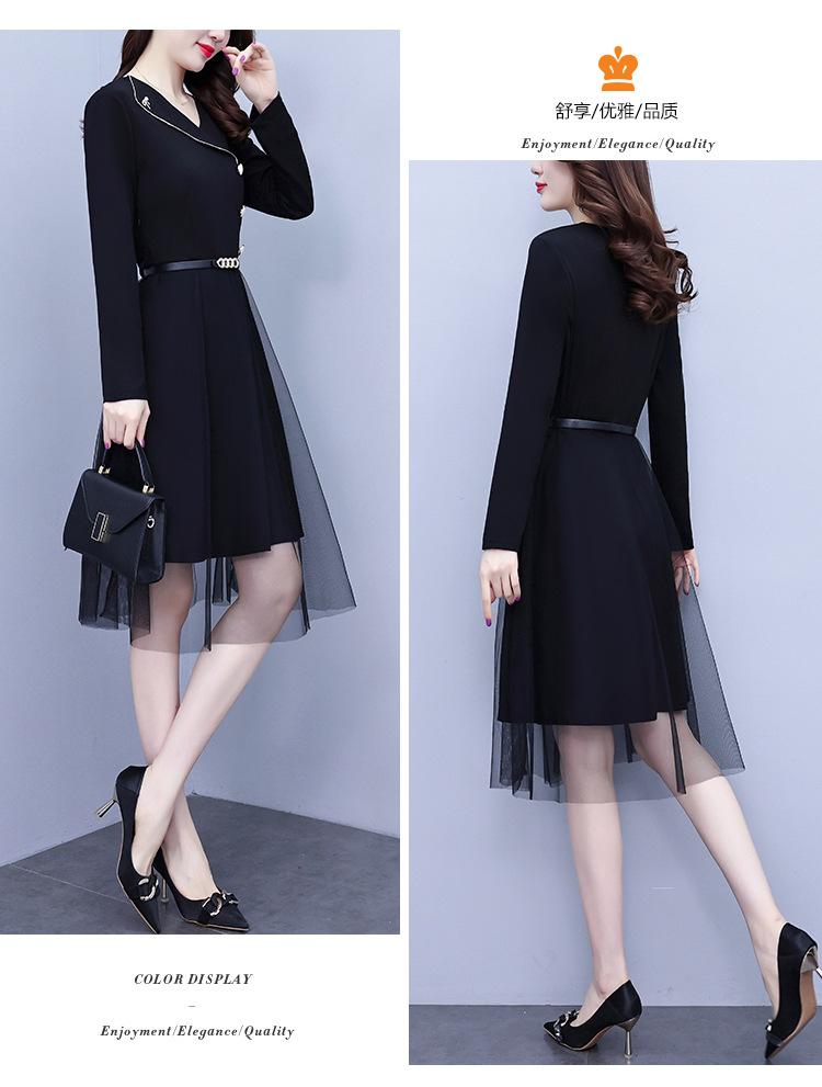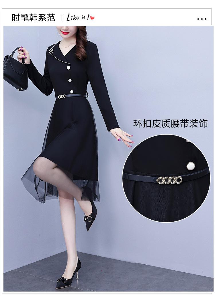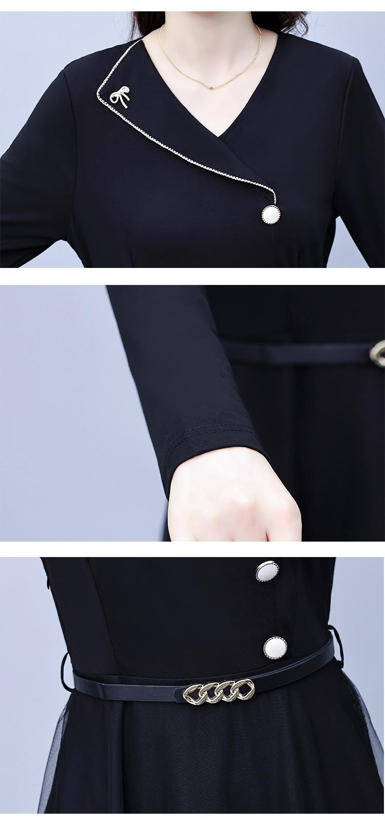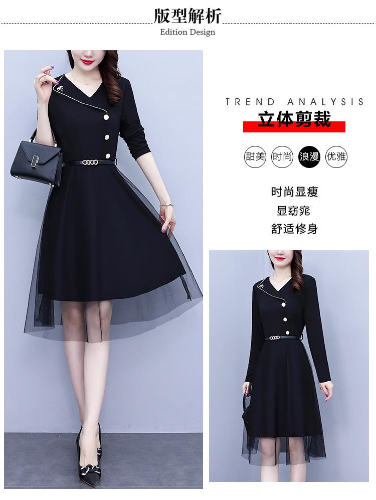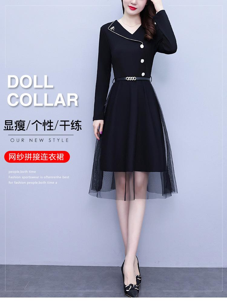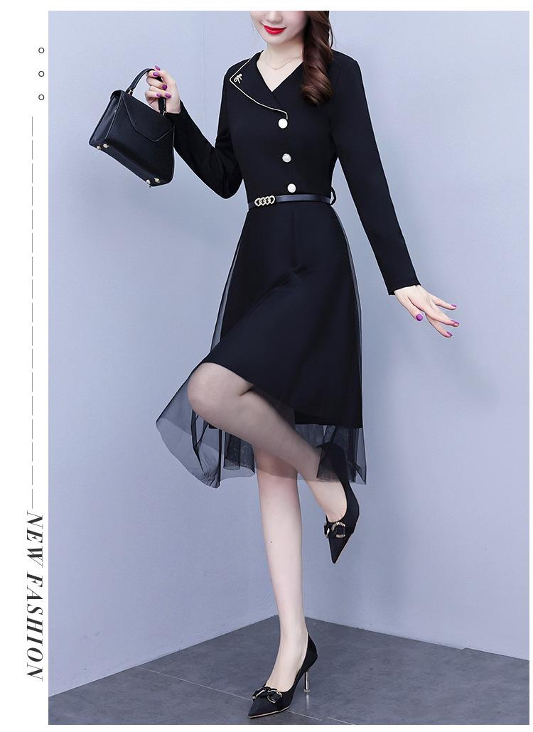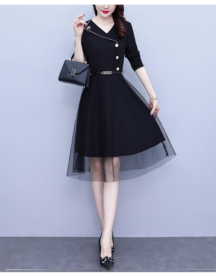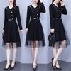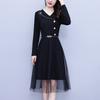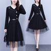 Ropa de mujer de talla grande, primavera 2023, nuevo traje de cuello mmV grueso, costura de cuello de malla, cubre vientre, vestido francés de estilo extranjero