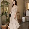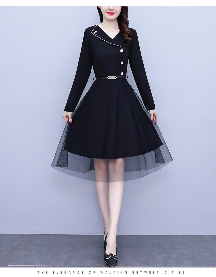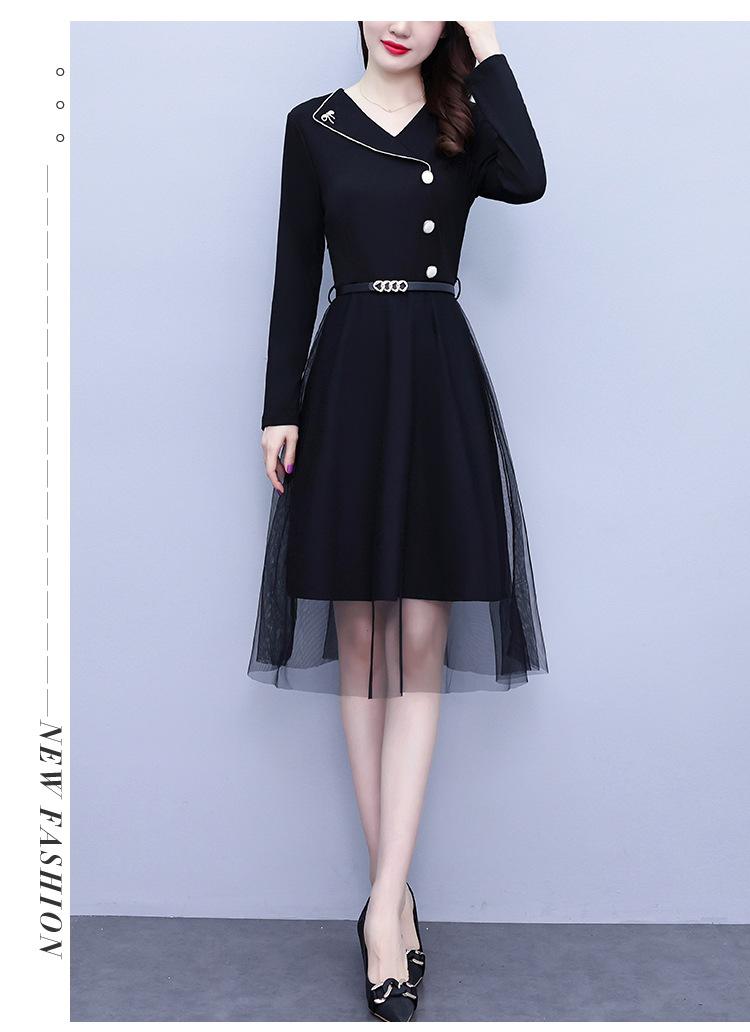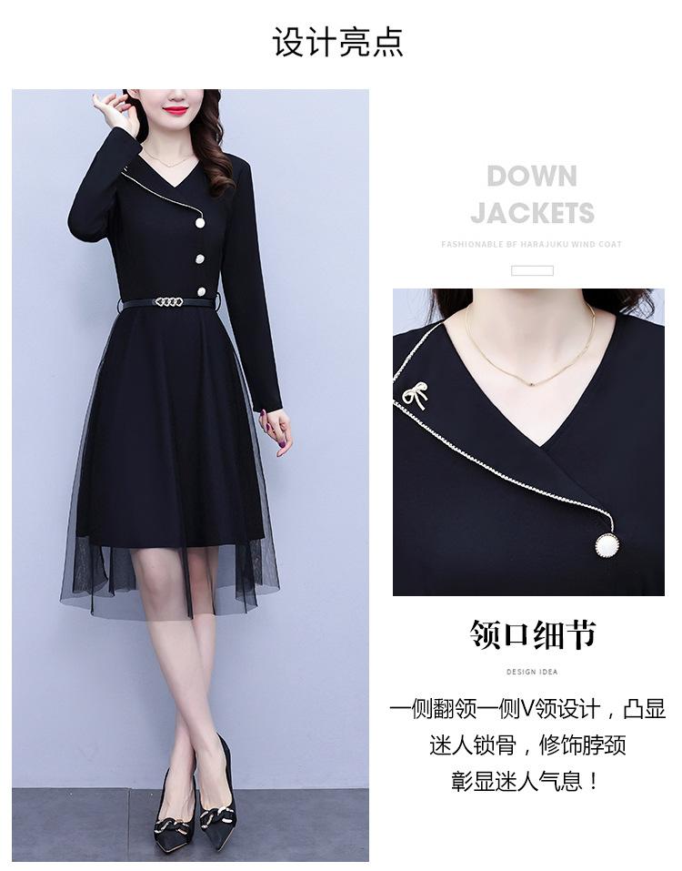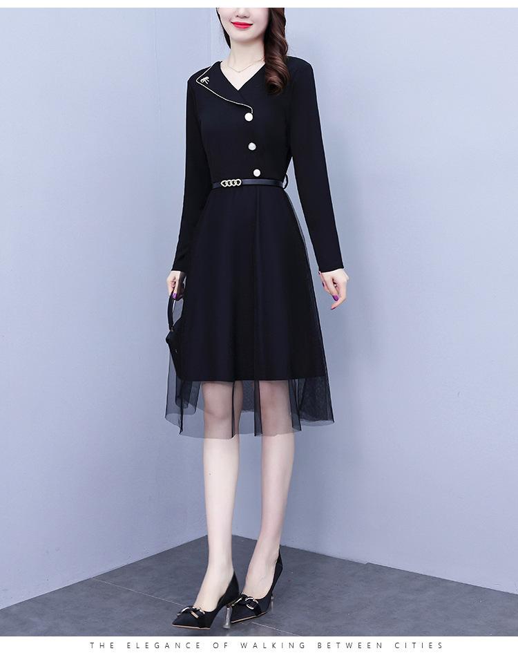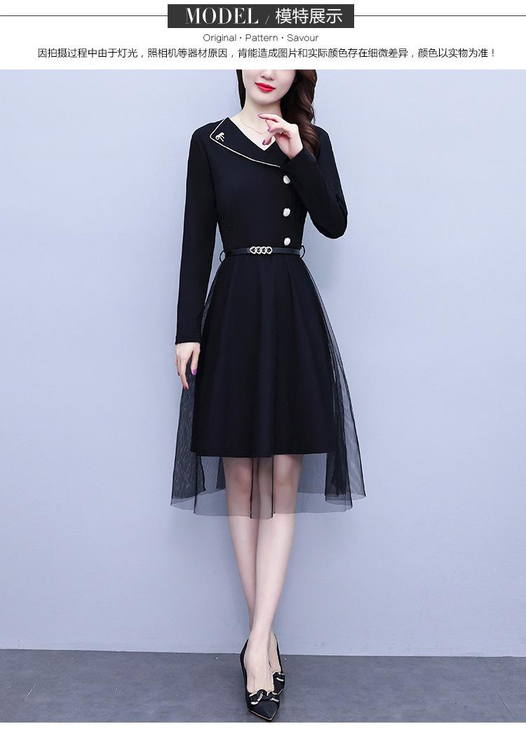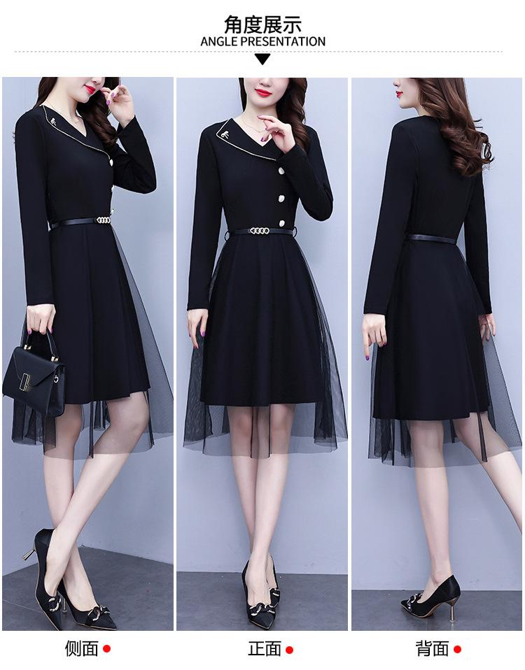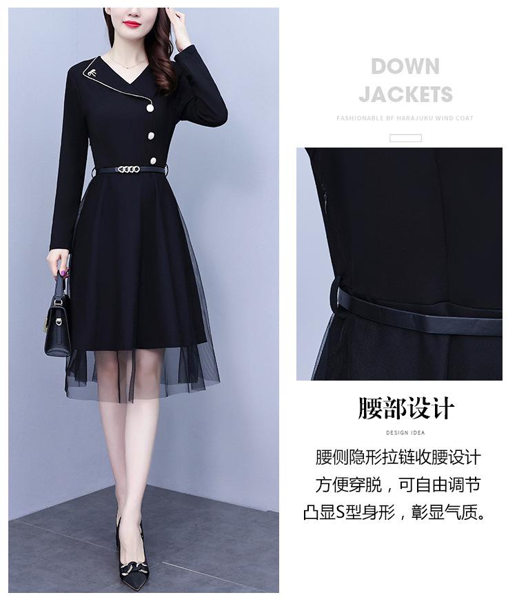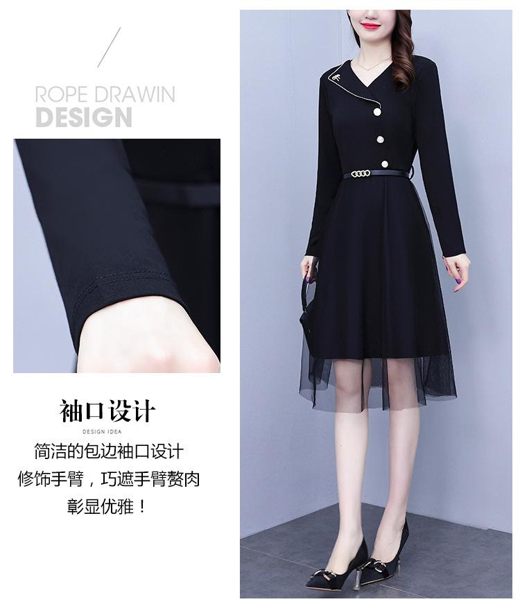 Ropa de mujer de talla grande, primavera 2023, nuevo traje de cuello mmV grueso, costura de cuello de malla, cubre vientre, vestido francés de estilo extranjero