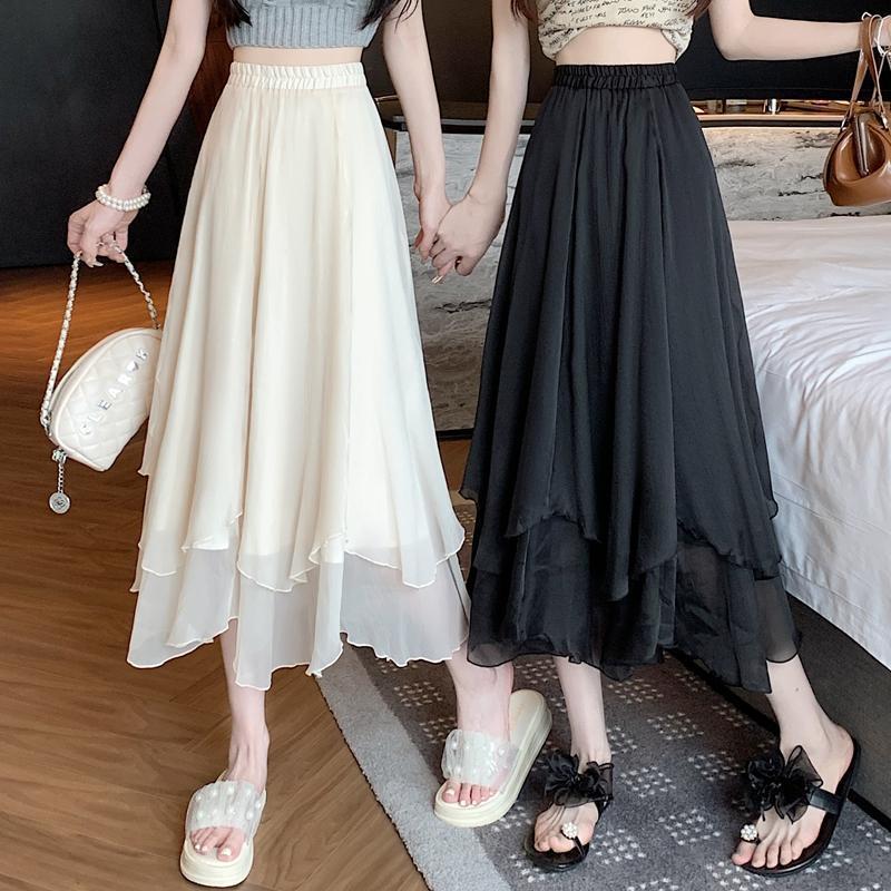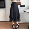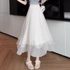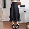 2025 Nuevo Diseño de Cintura Alta Falda Larga Asimétrica de Malla Tipo A Falda de Verano para Mujer Sección Delgada
