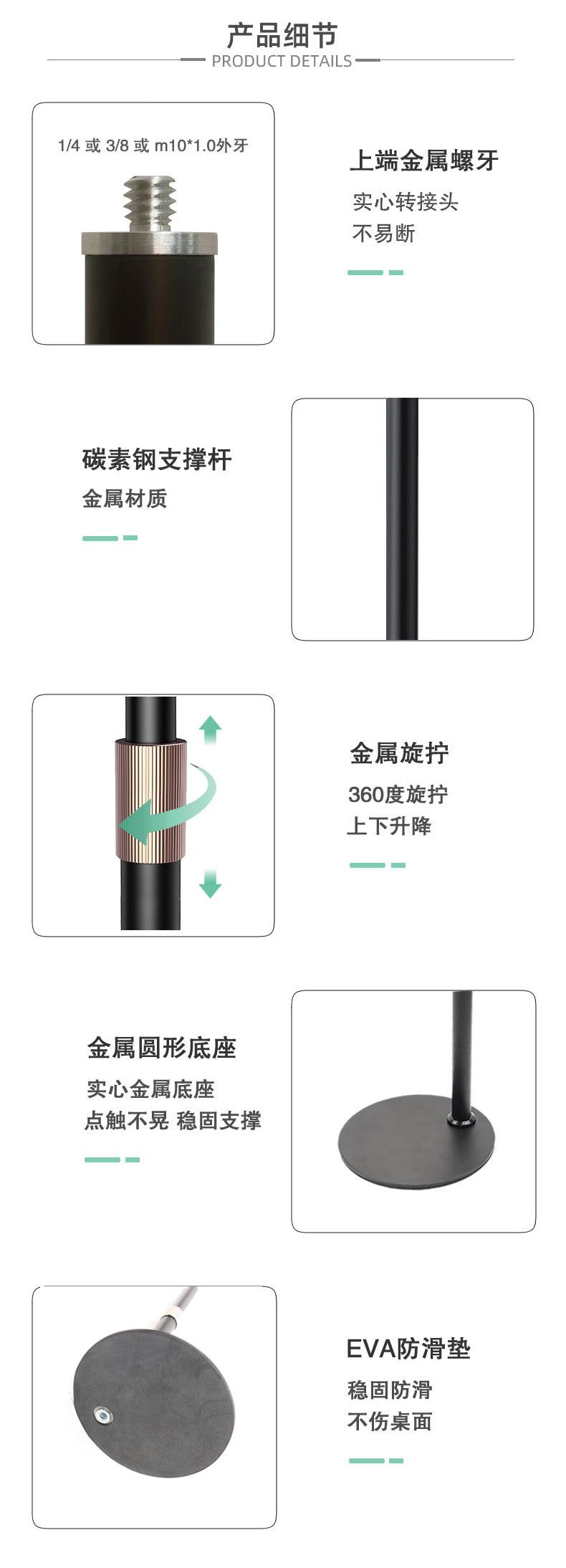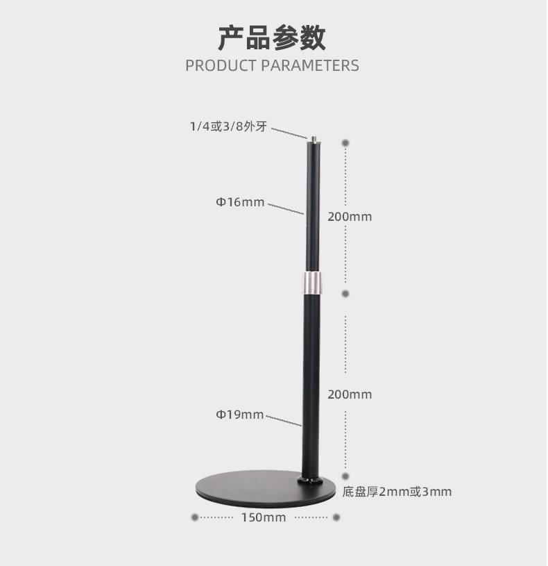 Producción de fábrica de escritorio en vivo elevación telescópica soporte de varilla anillo soporte de luz de relleno accesorios base de disco de metal
