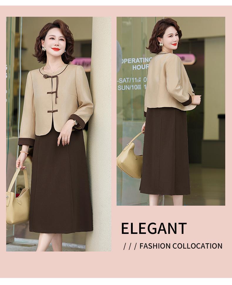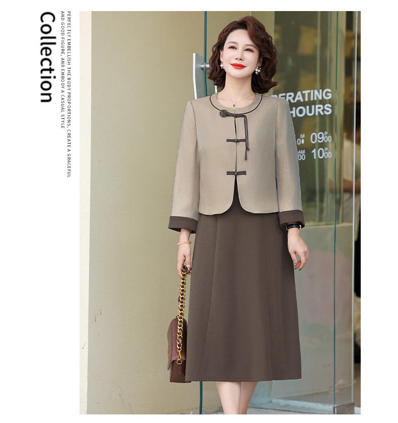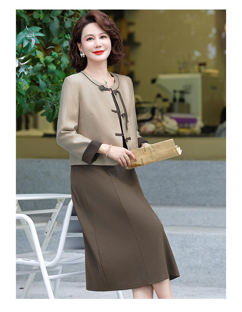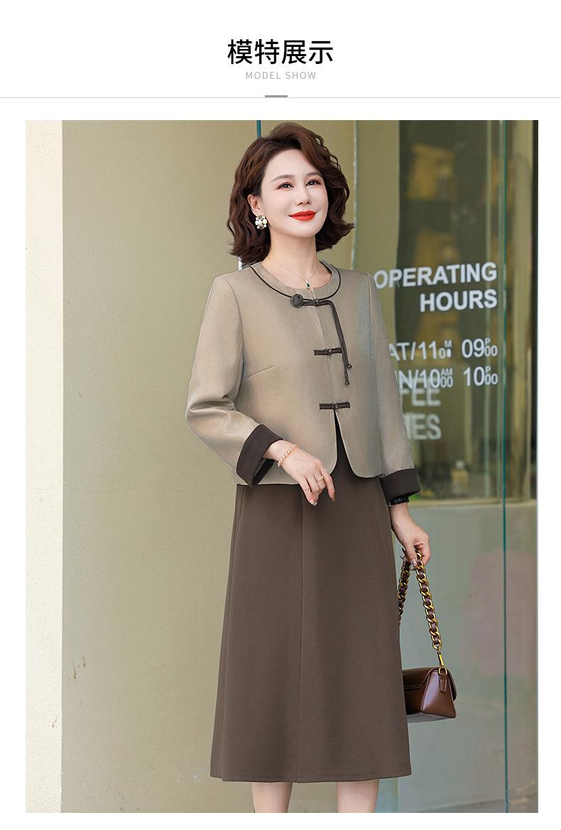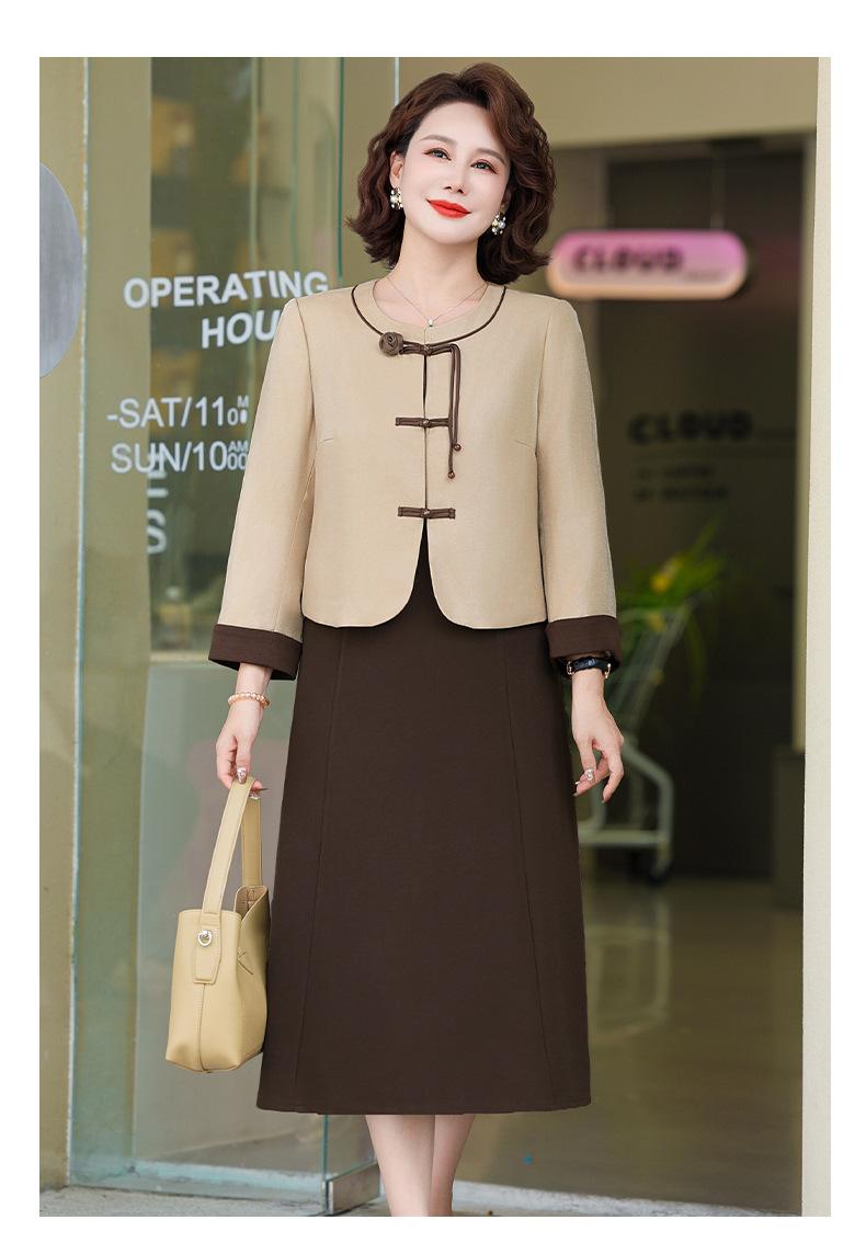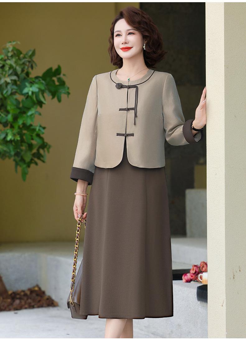 Abrigo nuevo de otoño 2024 para madre, nuevo estilo chino, vestido de traje de dos piezas de alta gama para mujeres de mediana edad y mayores de primavera