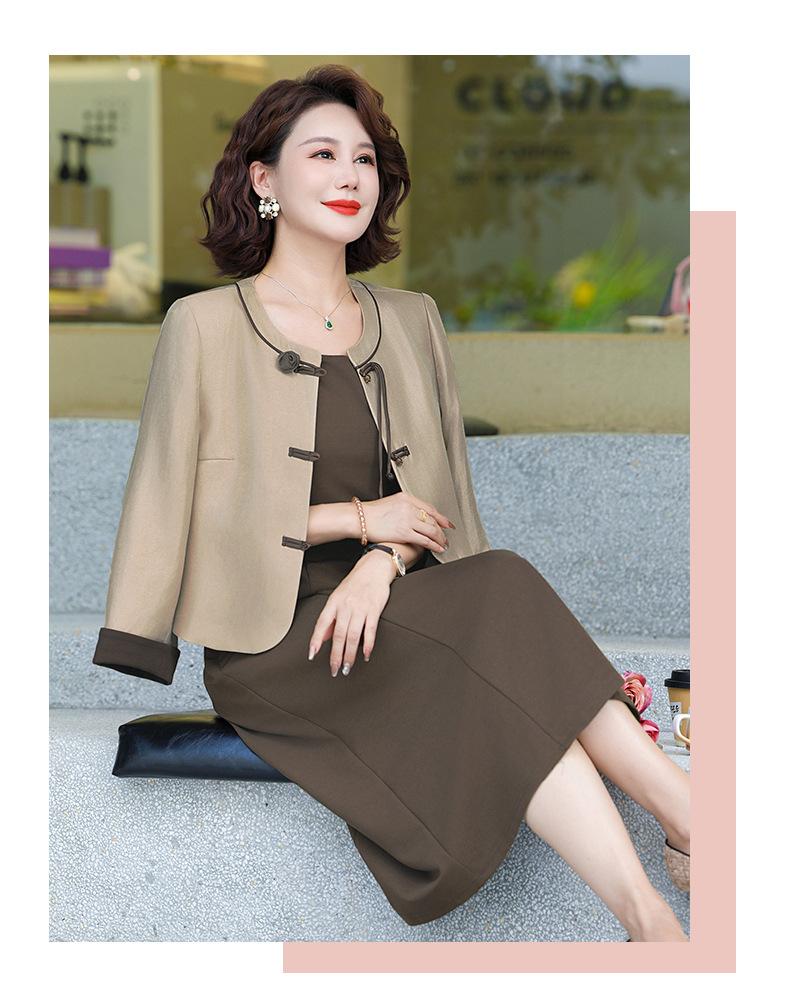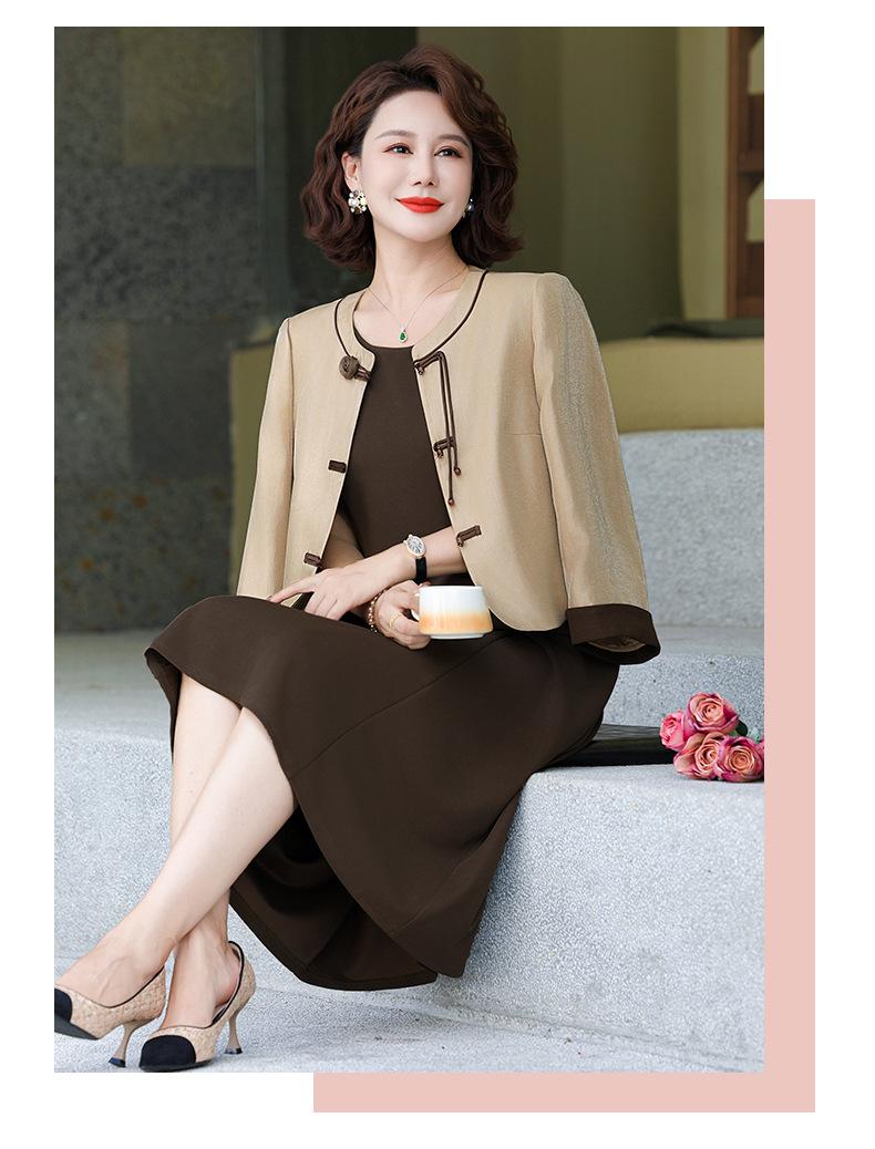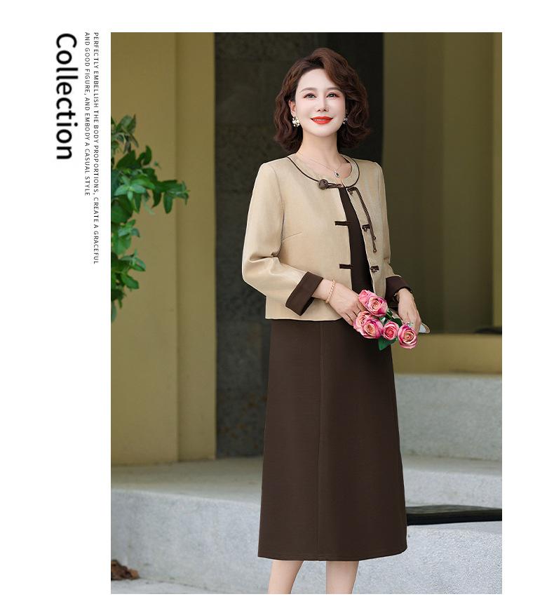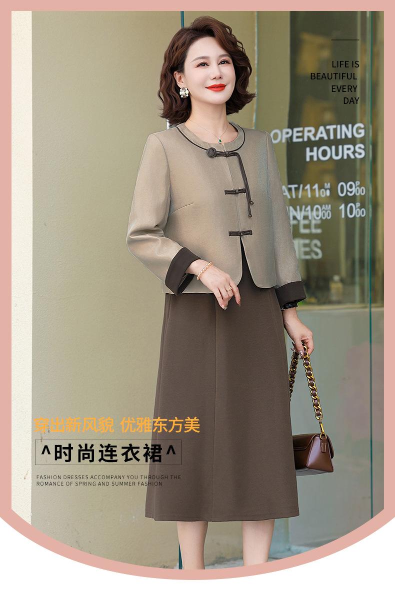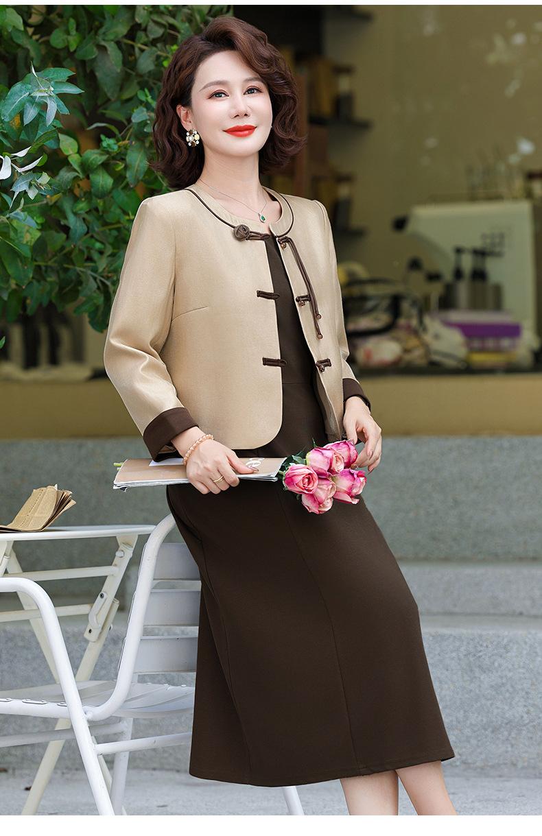 Abrigo nuevo de otoño 2024 para madre, nuevo estilo chino, vestido de traje de dos piezas de alta gama para mujeres de mediana edad y mayores de primavera