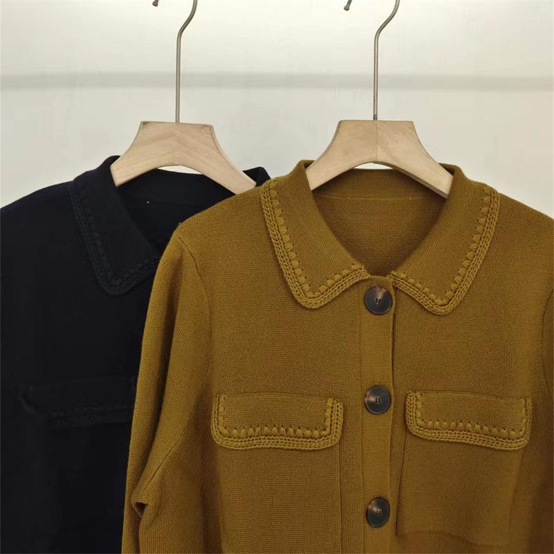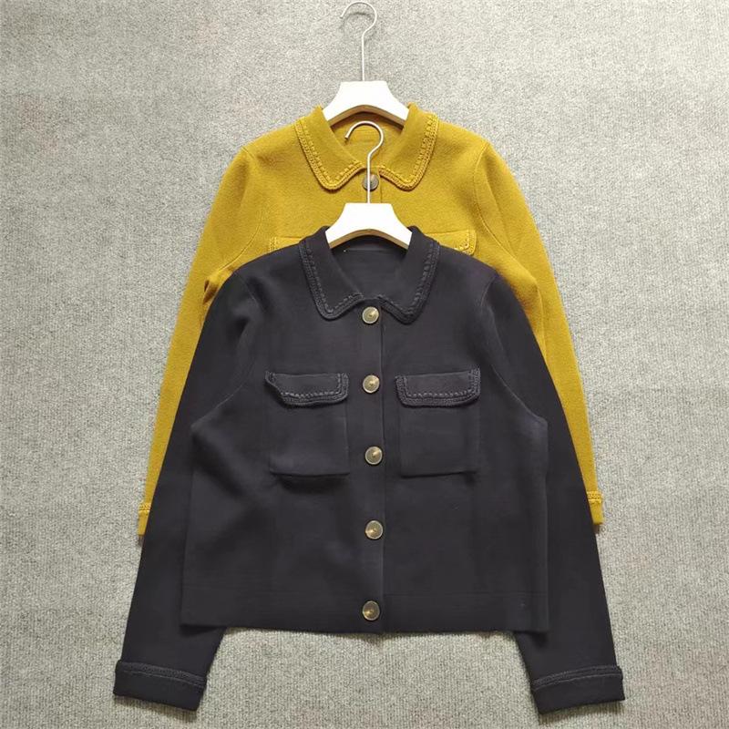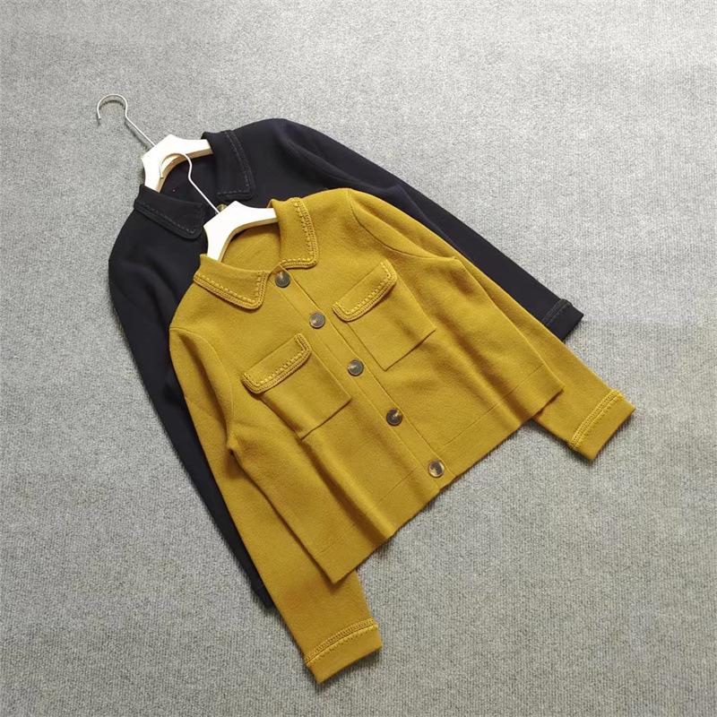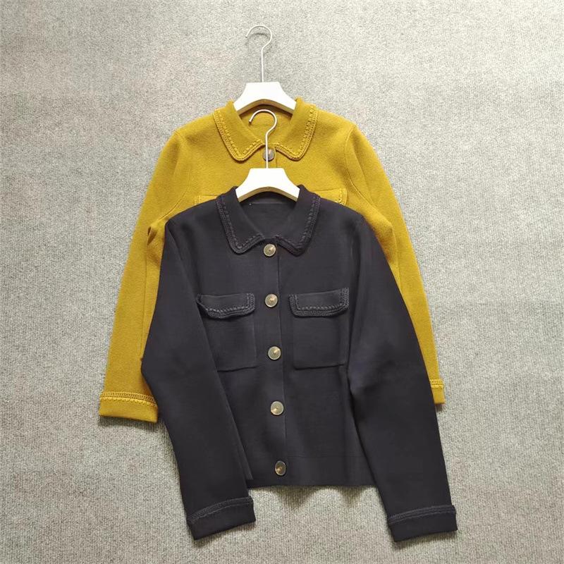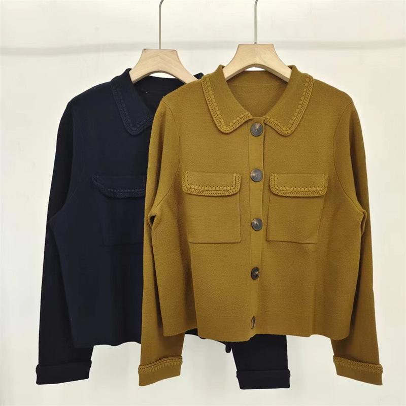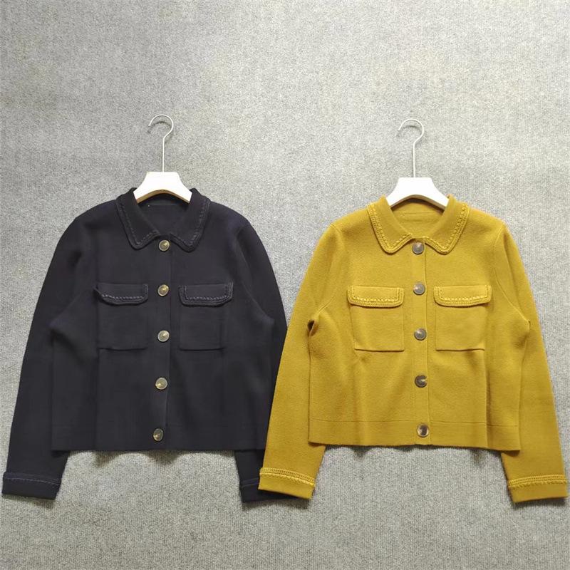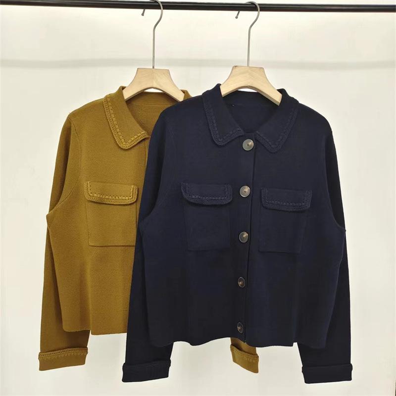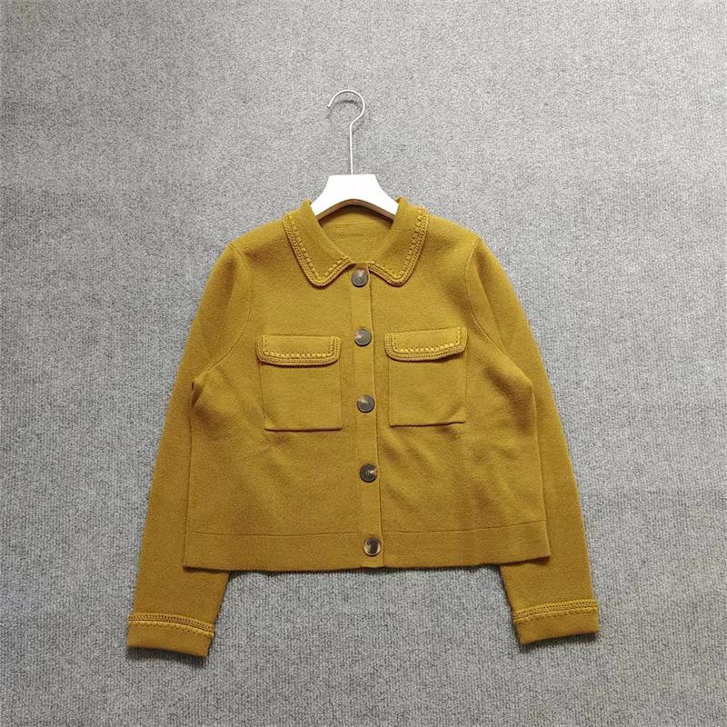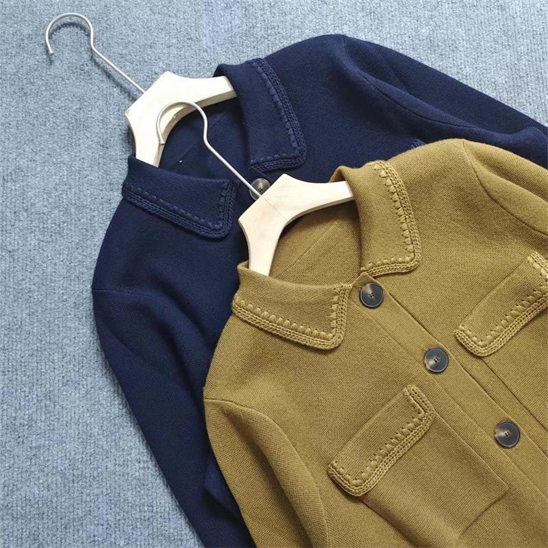 Abrigo de punto para mujer, solapa, botonadura sencilla, informal, elegante, con gancho a mano, lana de pollo, cárdigan de manga larga en stock