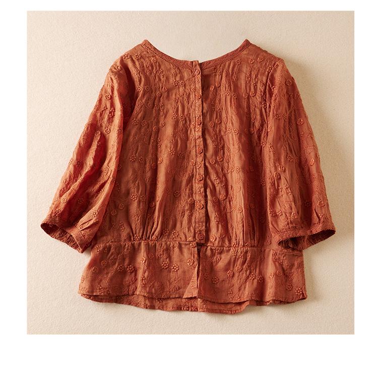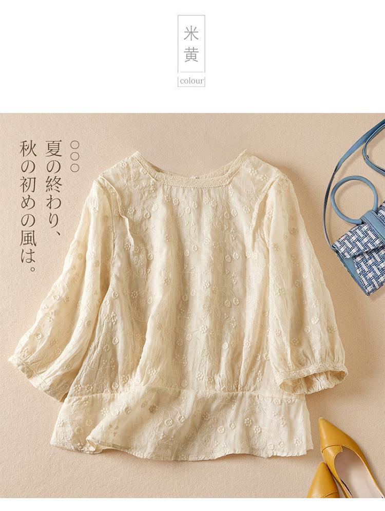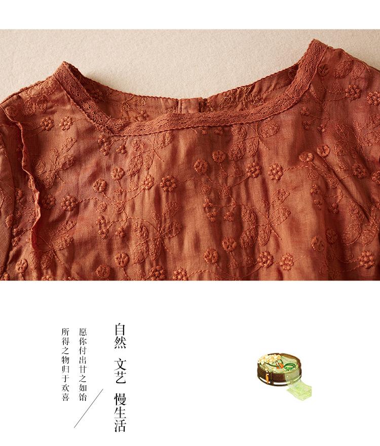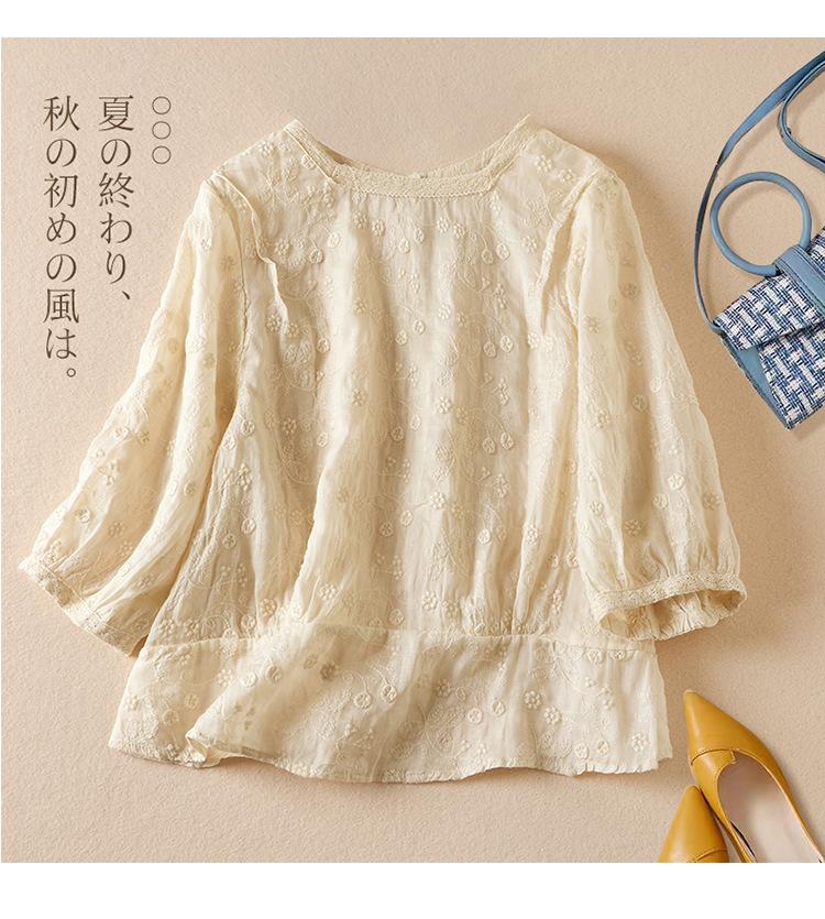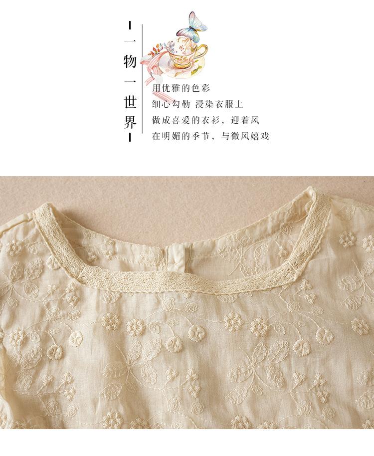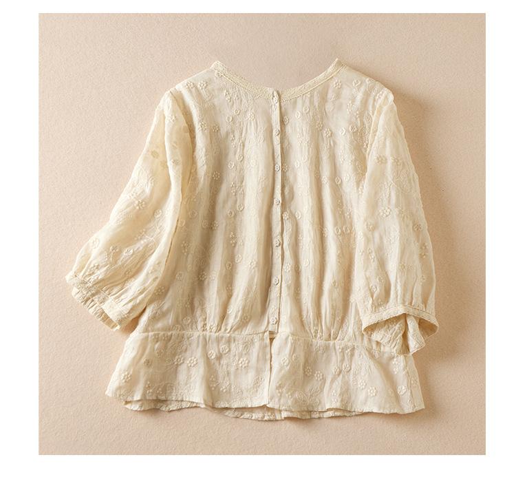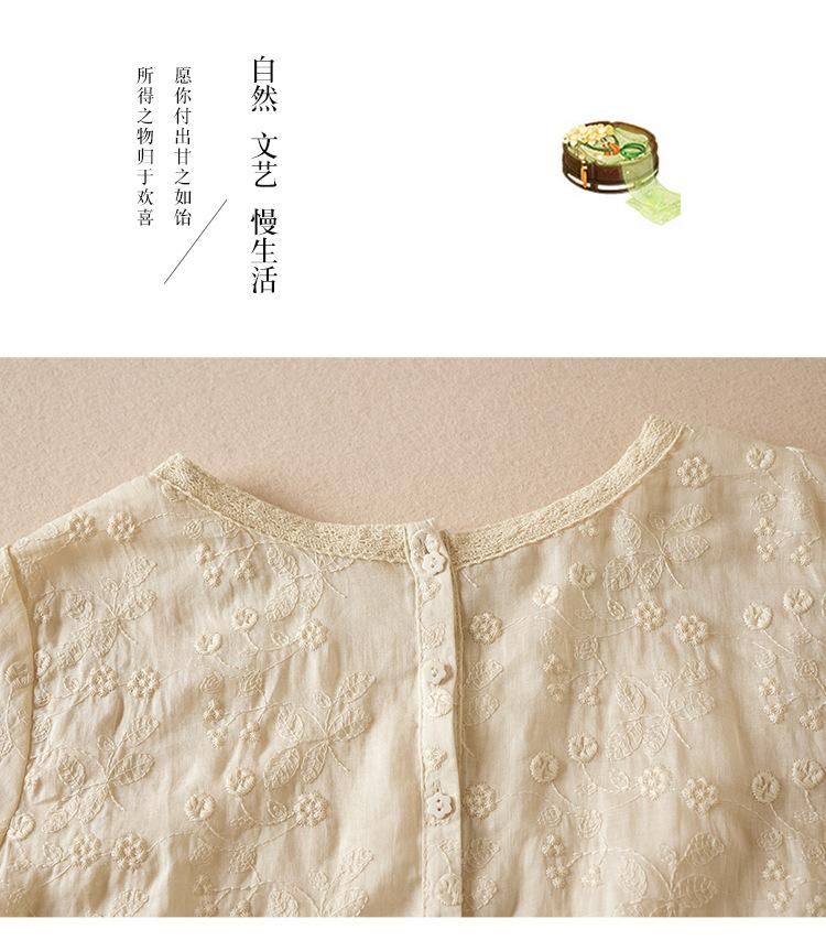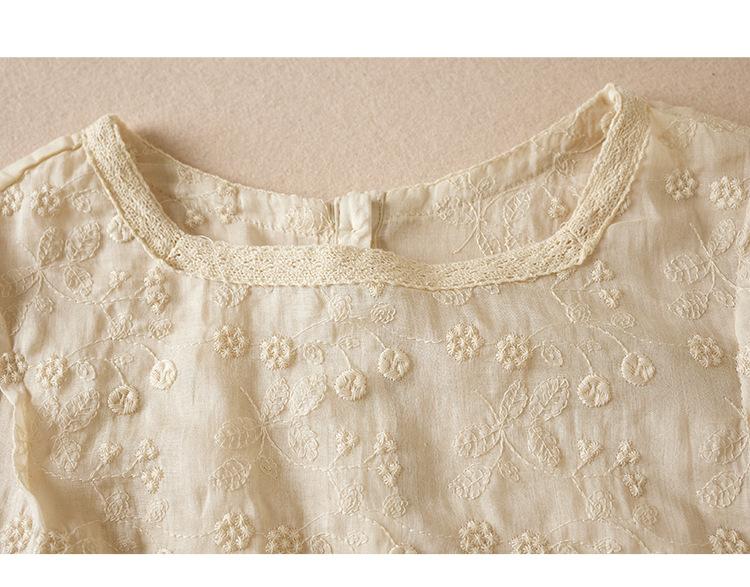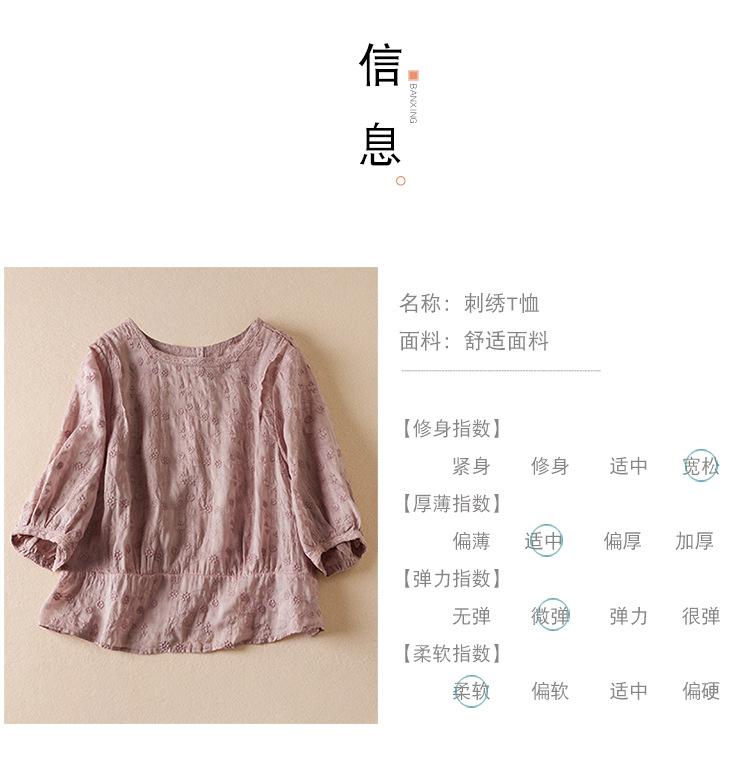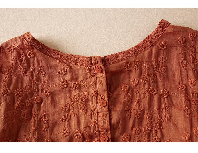 Verano 2023 Rima Artística Elegante Totalmente Bordado Bordado Industria Pesada Algodón y Lino Top Corto Ajustado Adelgazante Camiseta