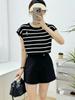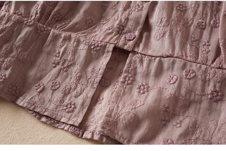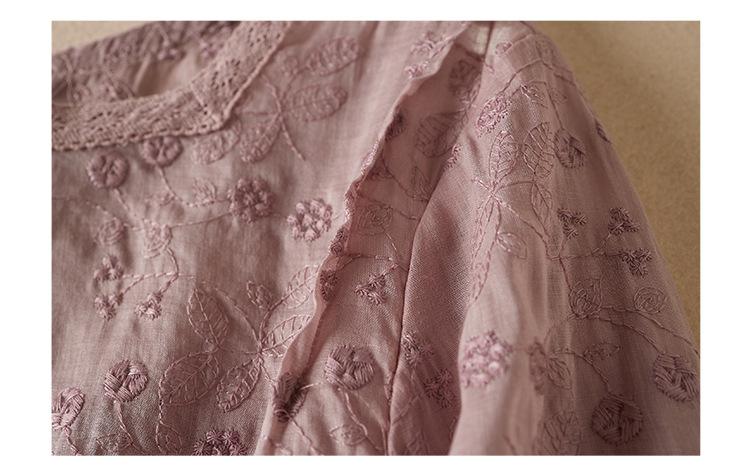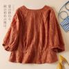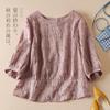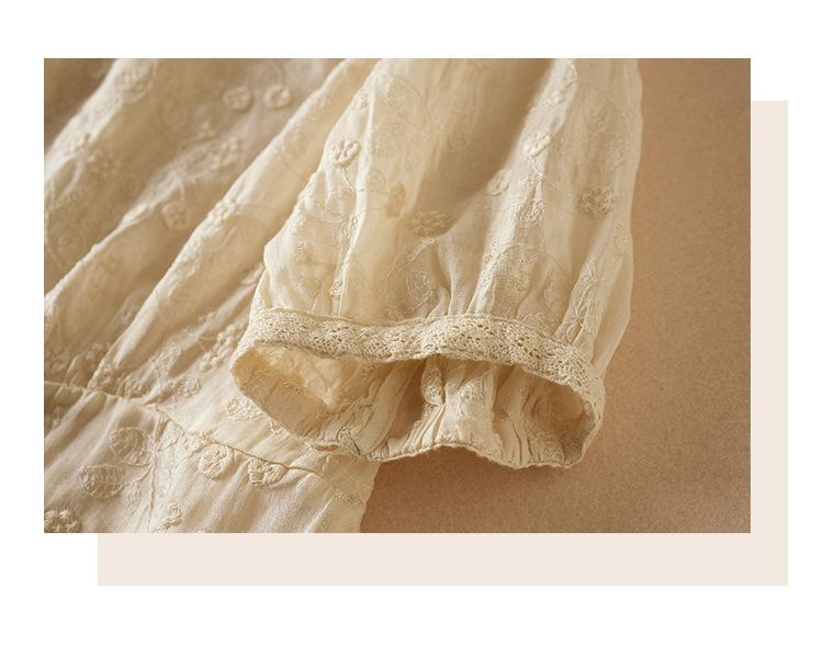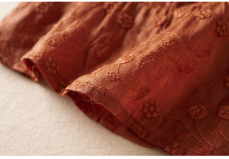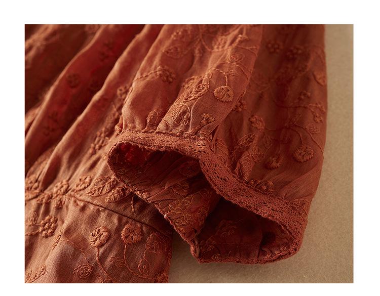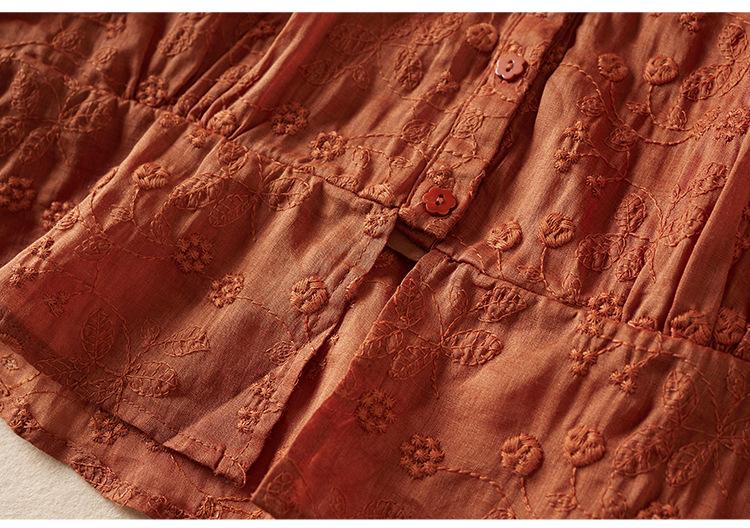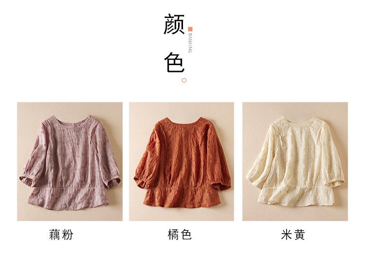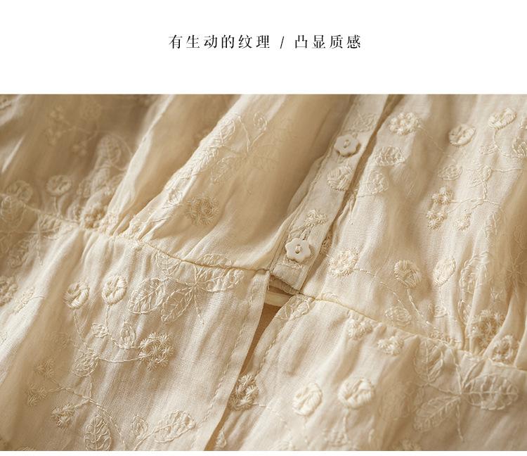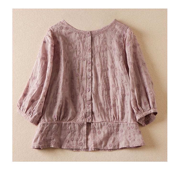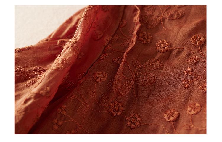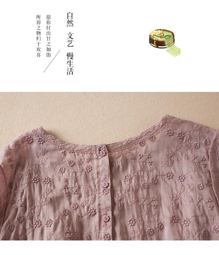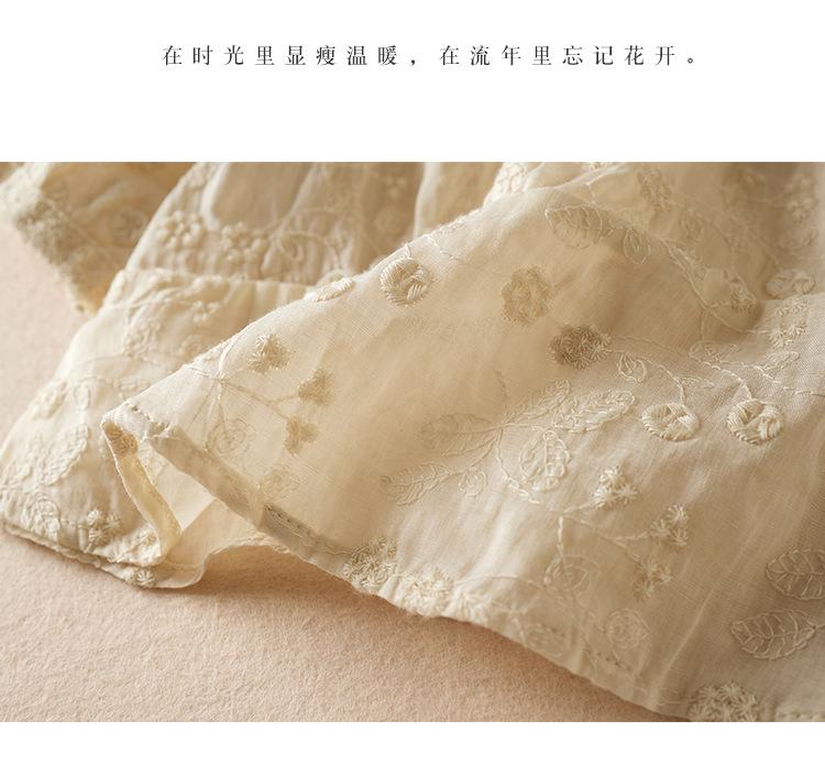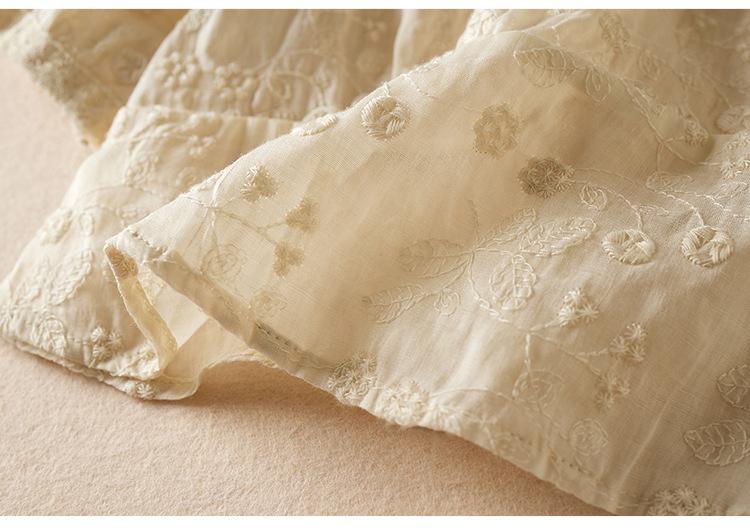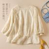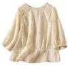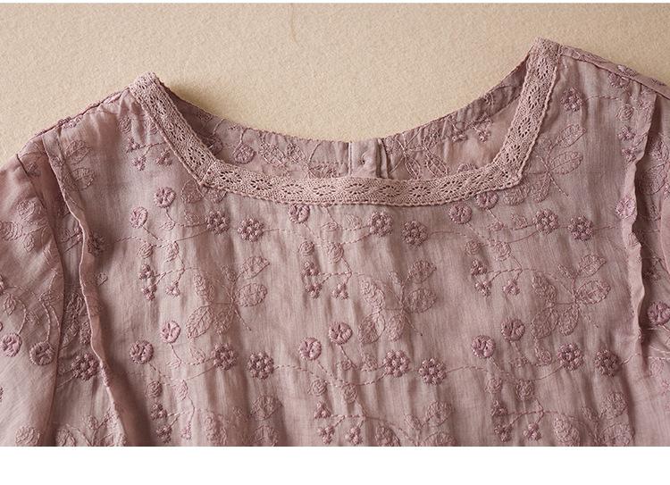 Verano 2023 Rima Artística Elegante Totalmente Bordado Bordado Industria Pesada Algodón y Lino Top Corto Ajustado Adelgazante Camiseta