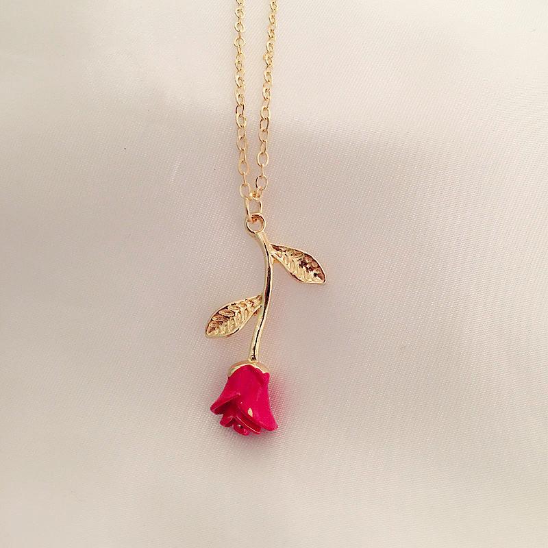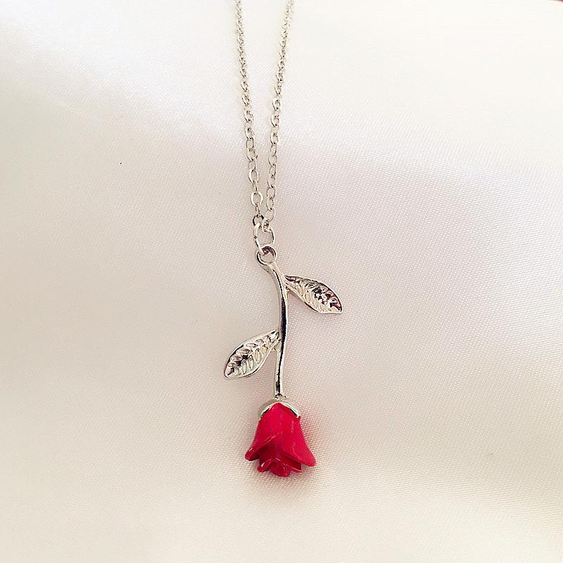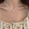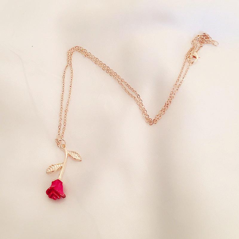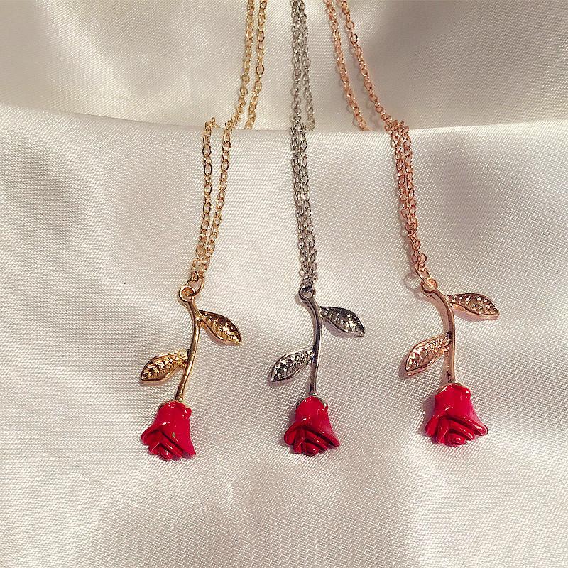 Collar vintage con flor de rosa roja para mujer, joyería de celebridades cibernéticas, cadena de clavícula, collar corto, colgante elegante de moda