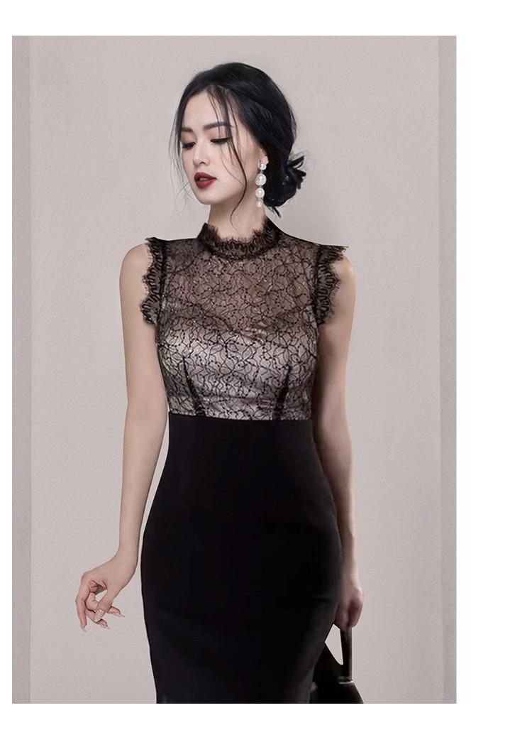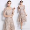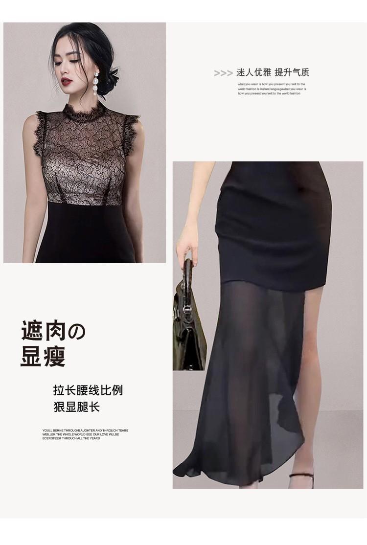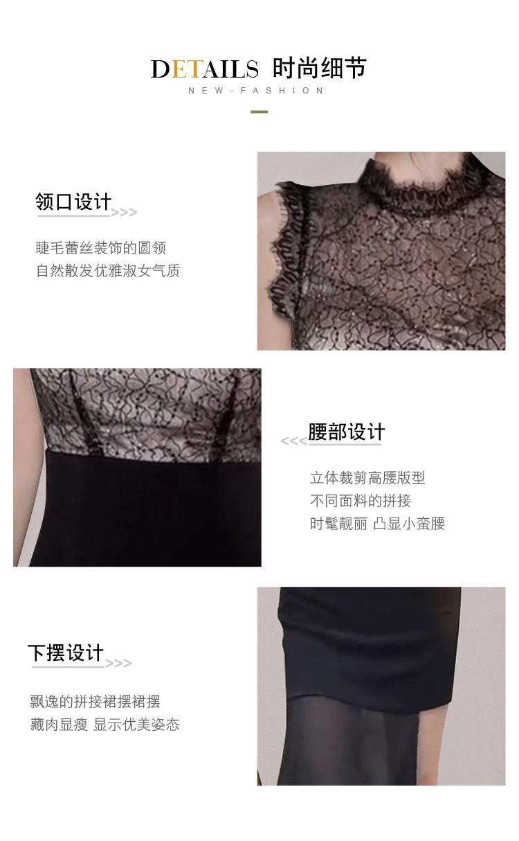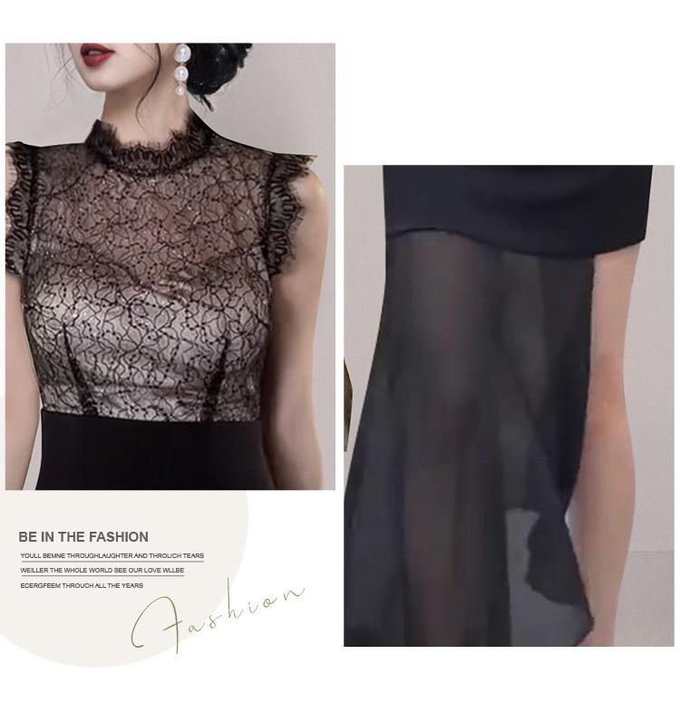Estilo Socialité Encaje de Pestañas Cuello Redondo Vestido Ajustado Falda Transfronterizo para Mujer Verano Nuevo Vestido Empalmado de Encaje
