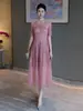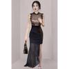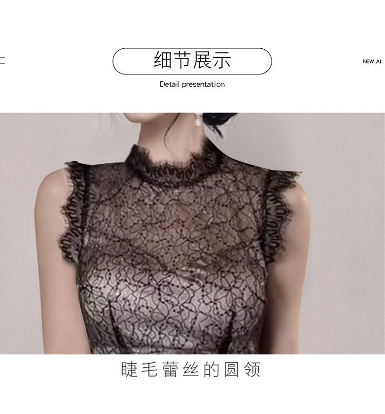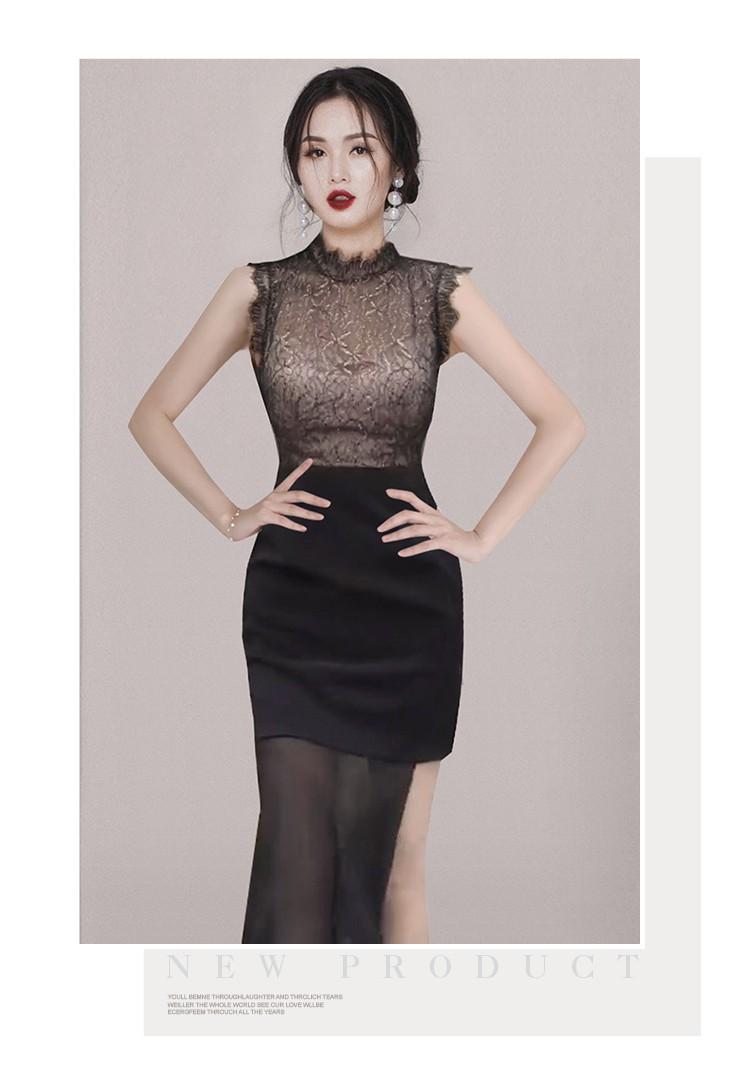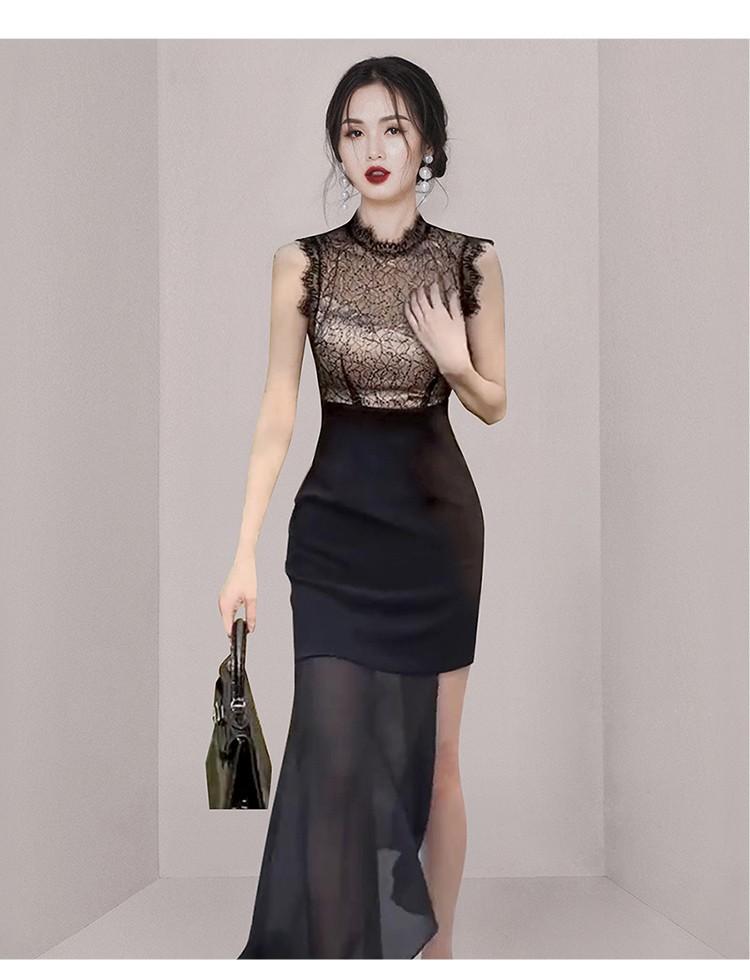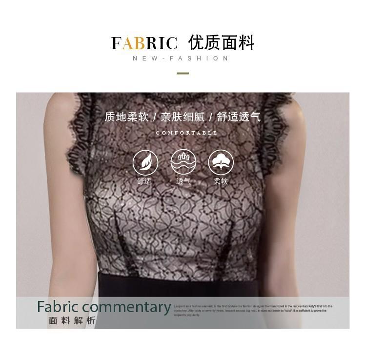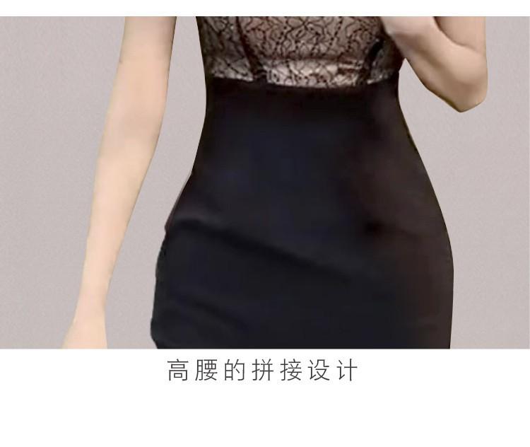 Estilo Socialité Encaje de Pestañas Cuello Redondo Vestido Ajustado Falda Transfronterizo para Mujer Verano Nuevo Vestido Empalmado de Encaje