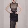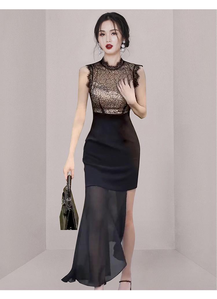 Patchwork lace mesh slit zipper