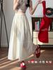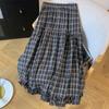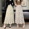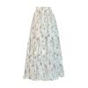 Foto real de Primavera y Verano 2024 de Aspecto Adelgazante de Cintura Alta Romántica y Delicada Falda Paraguas Midi Acampanada de Media Longitud Floral con Pliegues y Volantes