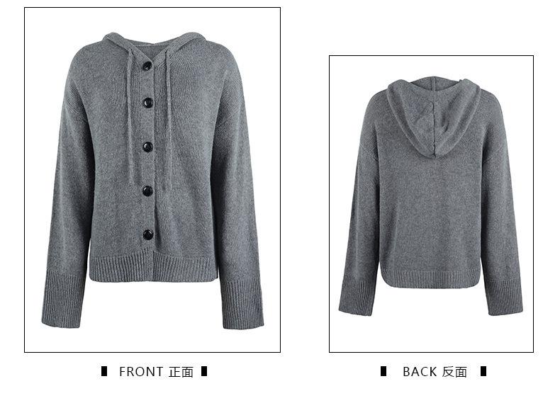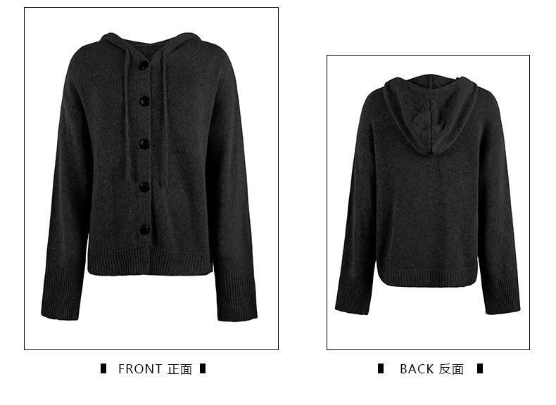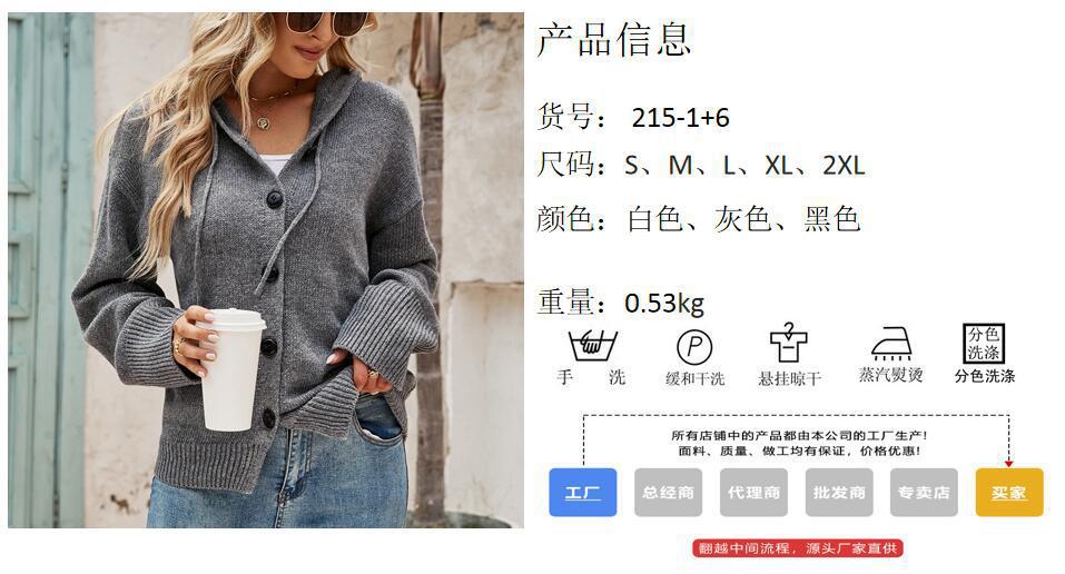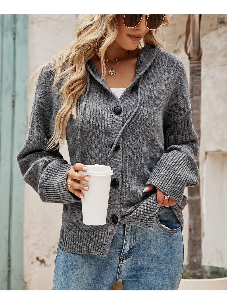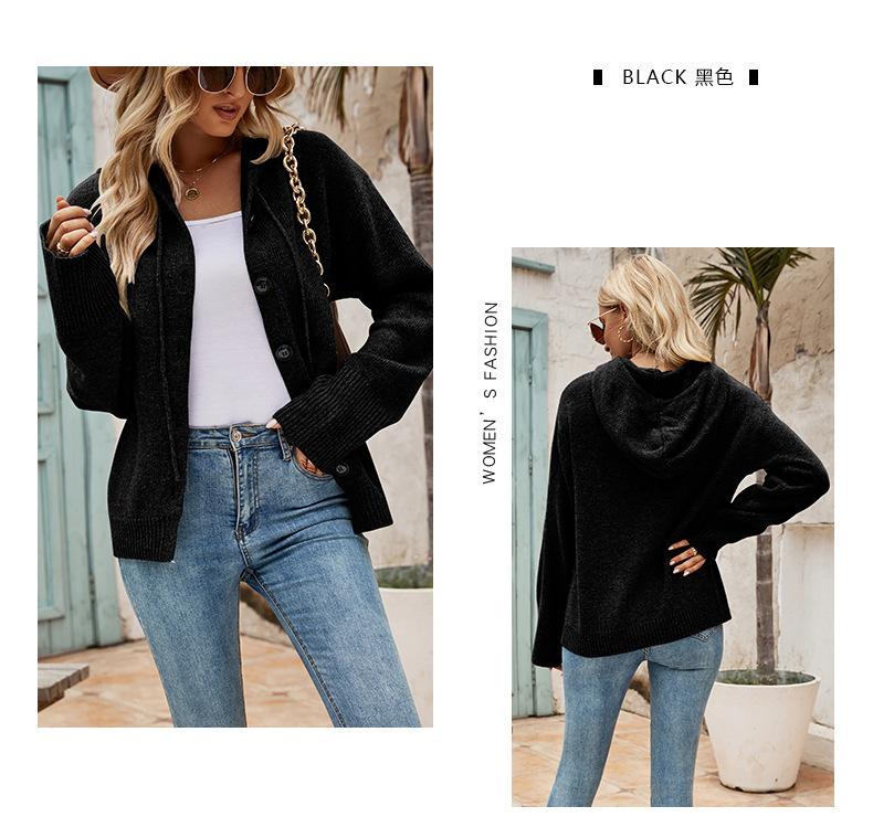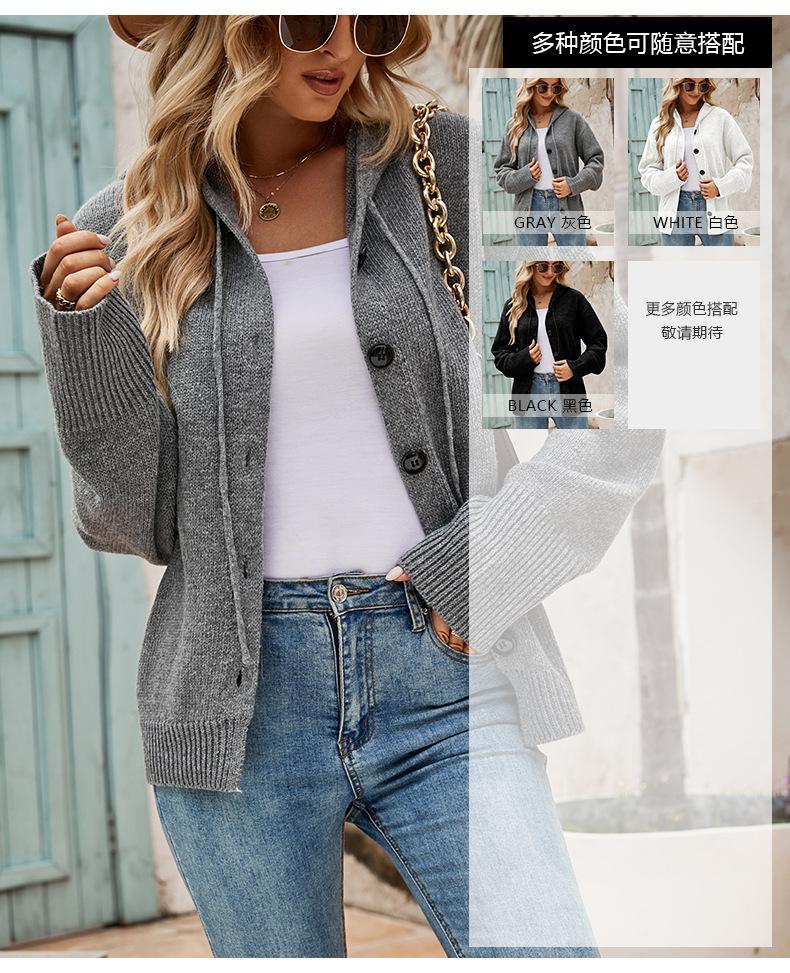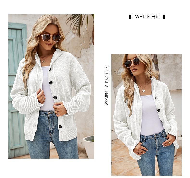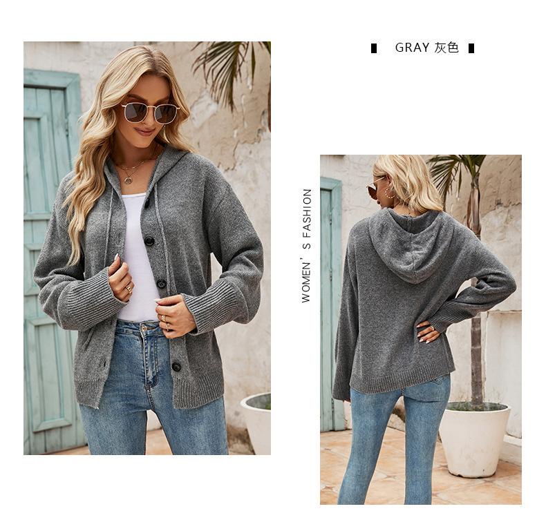 Ropa de Mujer de Exportación Transfronteriza Europea y Americana Otoño e Invierno Amazon Cárdigan de Punto de Manga Larga con Capucha y Botonadura Sencilla Suéter de Punto con Cordón
