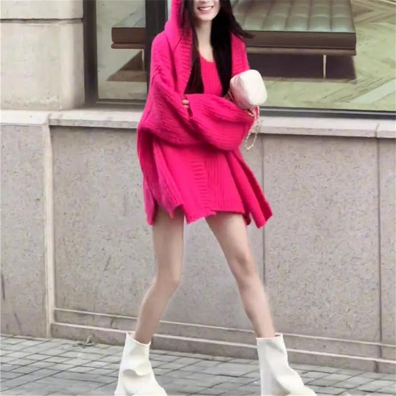Chamarra Suéter Holgada con Capucha Estilo Perezoso para Mujer Otoño e Invierno 2025 Diseño de Ropa Exterior Estilo Bosque Largo Medio Top Suave y Ceroso para Mujer