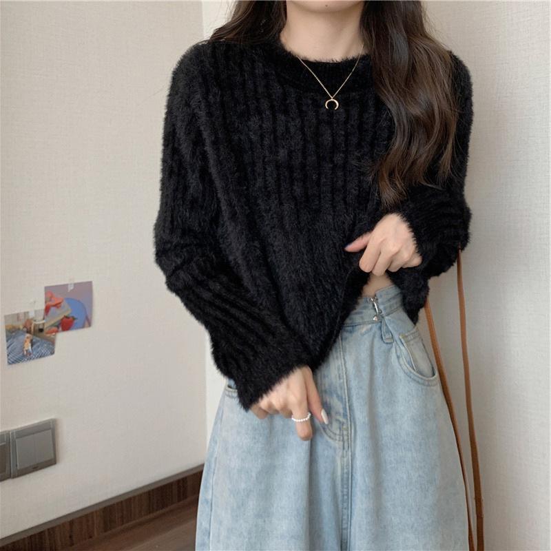 Suéter corto de punto pequeño, suave y glutinoso, de terciopelo de visón sintético, para mujer, otoño e invierno, holgado y grueso, de mohair