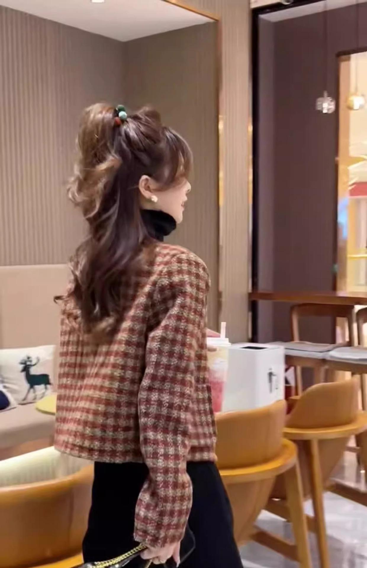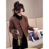Chaqueta a cuadros roja de estilo nuevo, de alta gama, engrosada, suave y perezosa, con pequeña fragancia.