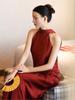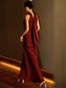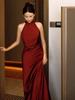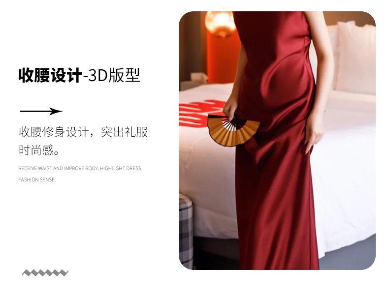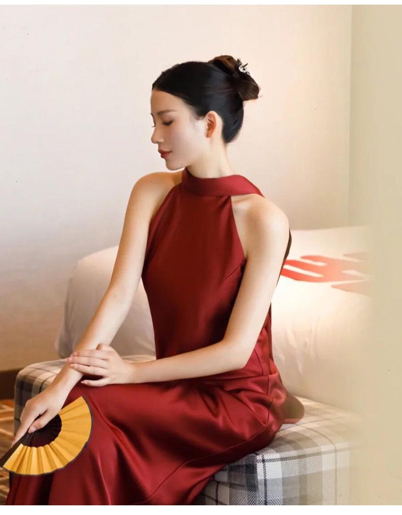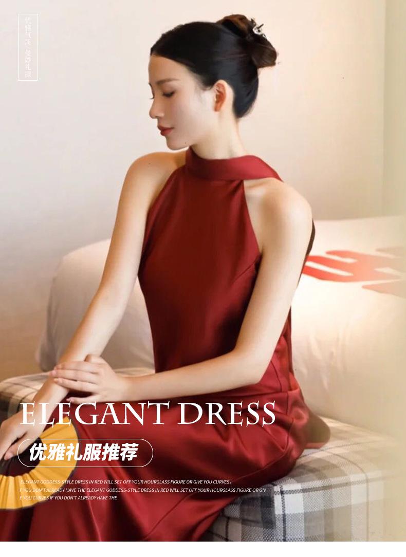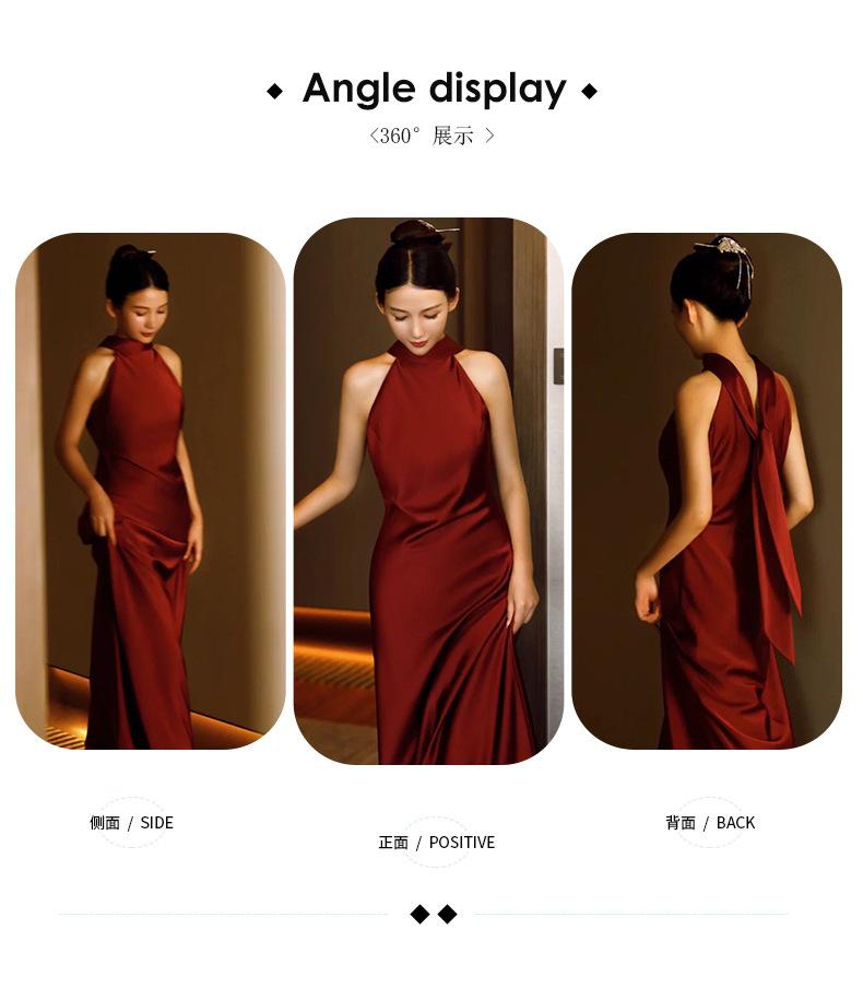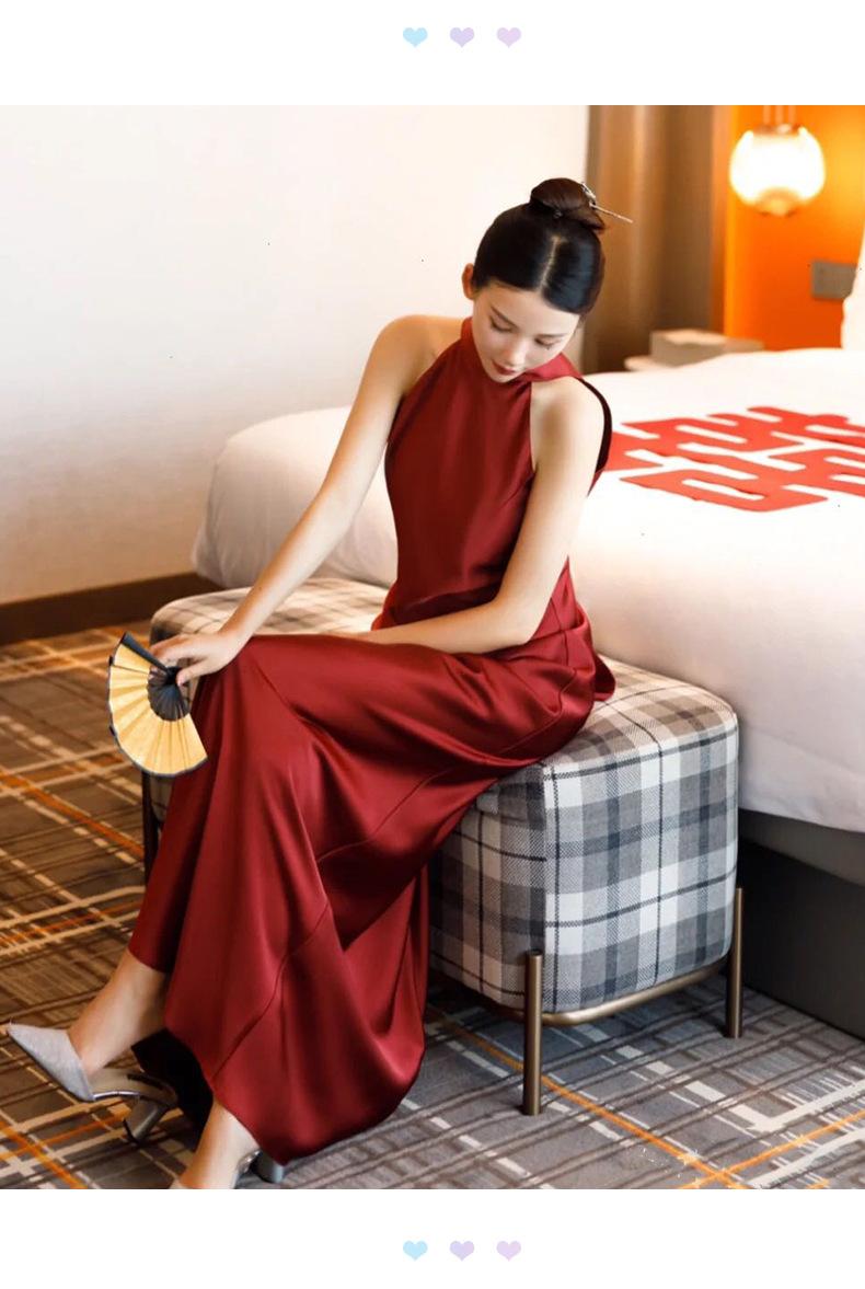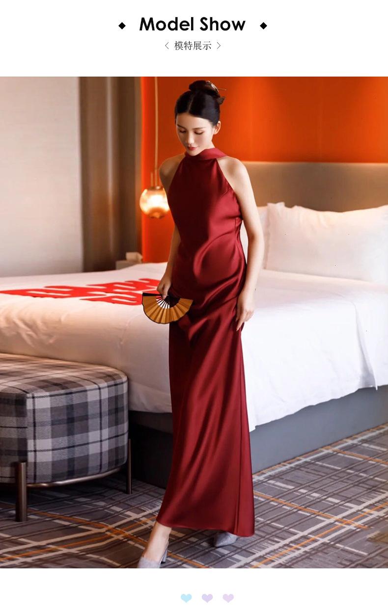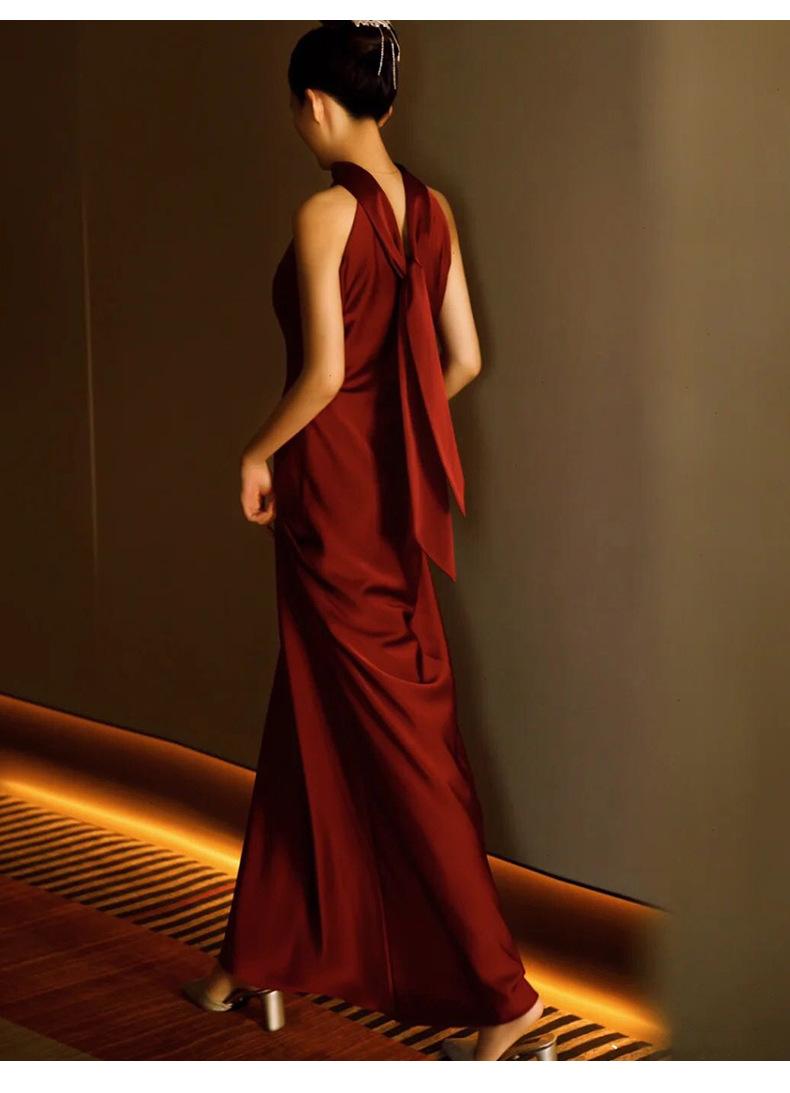 Toast Wear Novia 2025 Nuevo Boda Vino Tinto Europeo y Americano Compromiso Casa Banquete Temperamento Halter Vestido de Noche