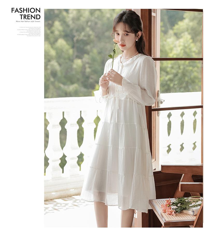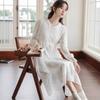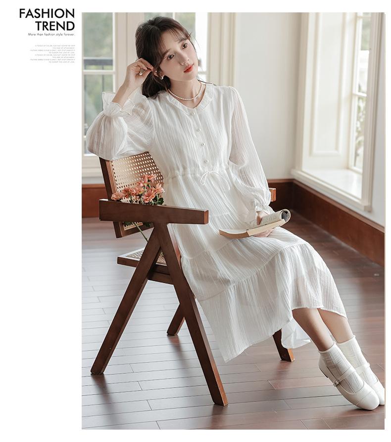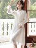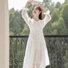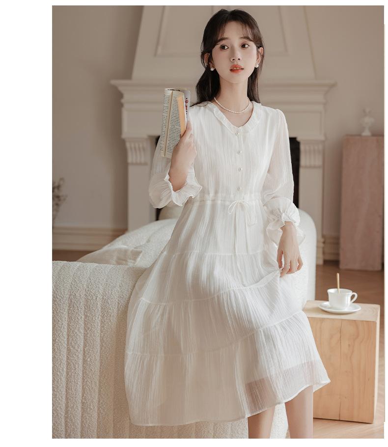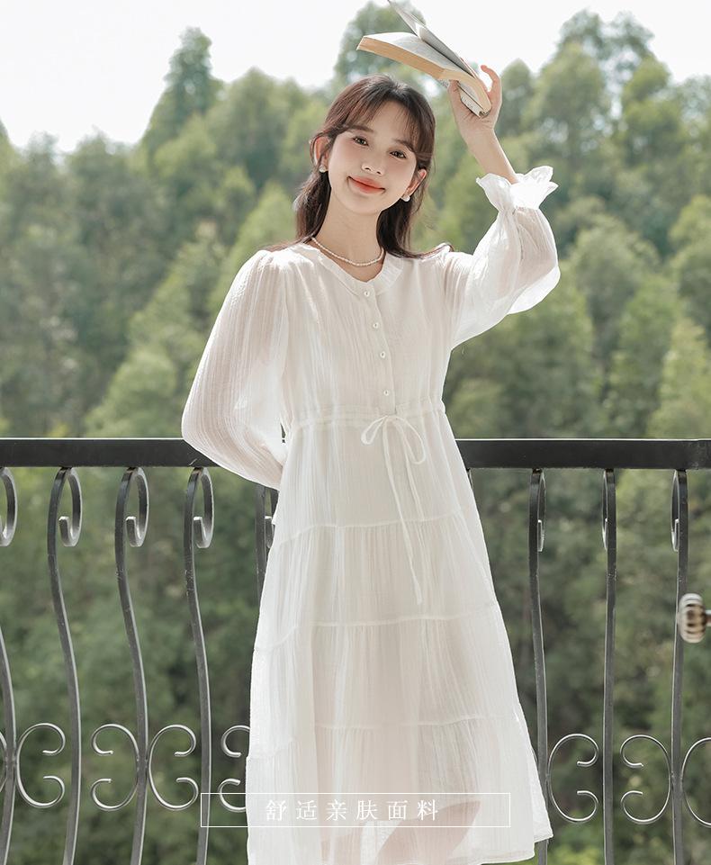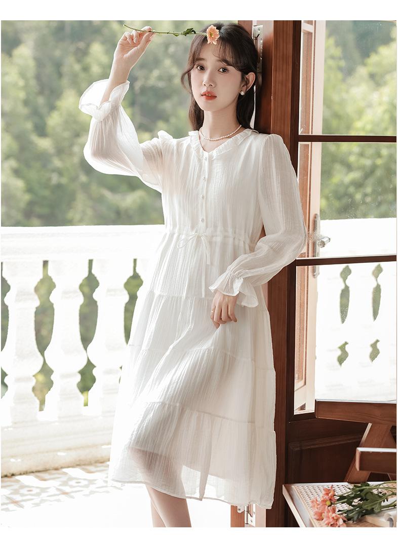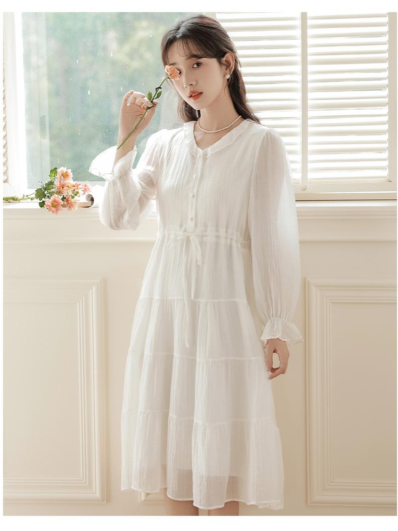 Vestido blanco para mujer, otoño 2024, nuevo, con cintura francesa, cordones, cuello redondo, borde de oreja, adelgazante, cintura alta, vestido de hada