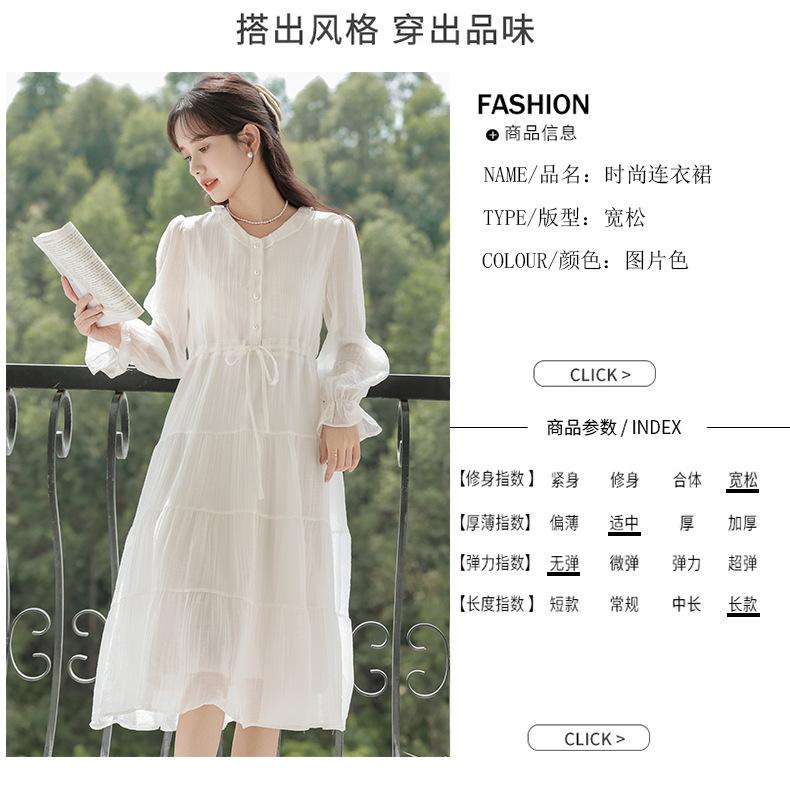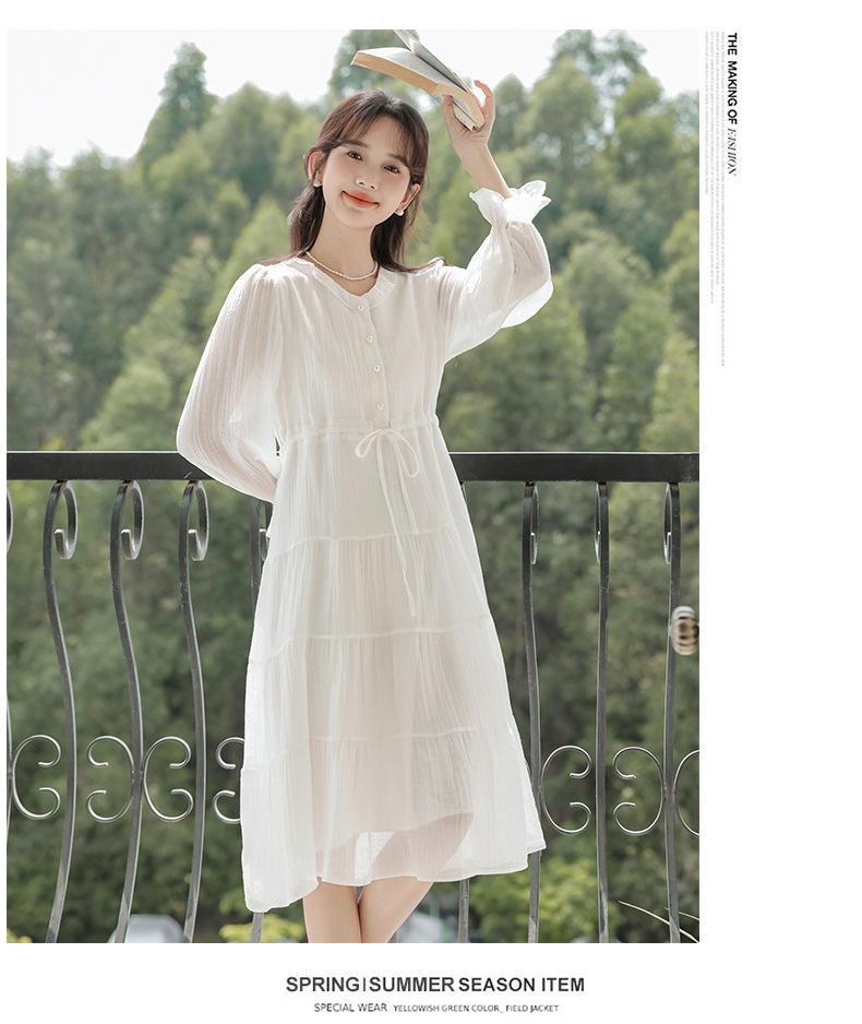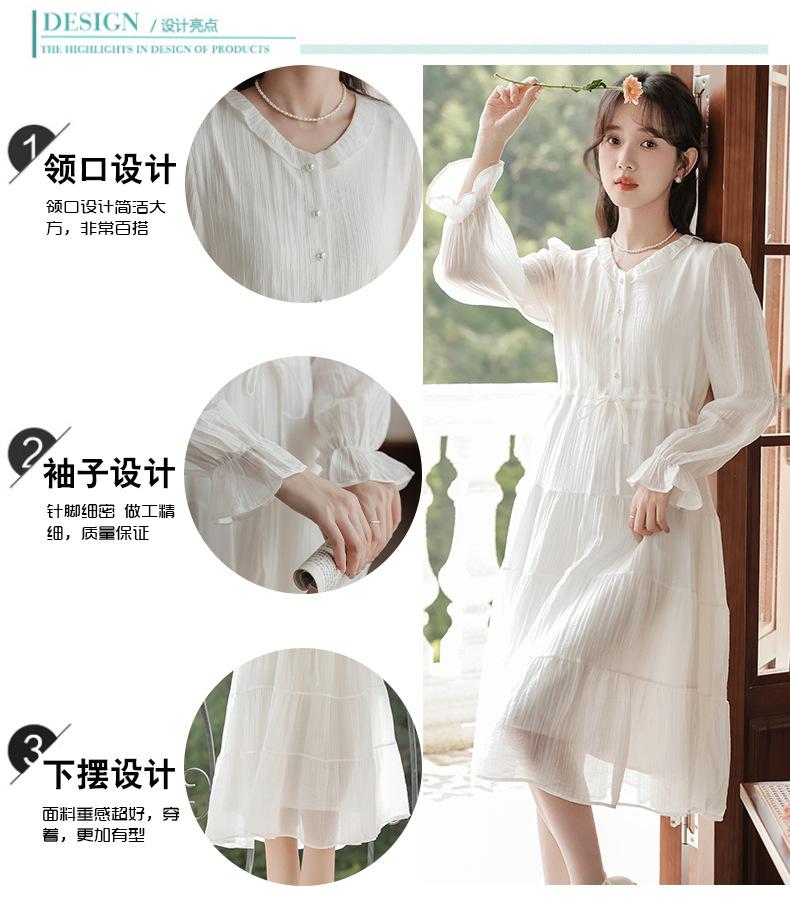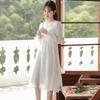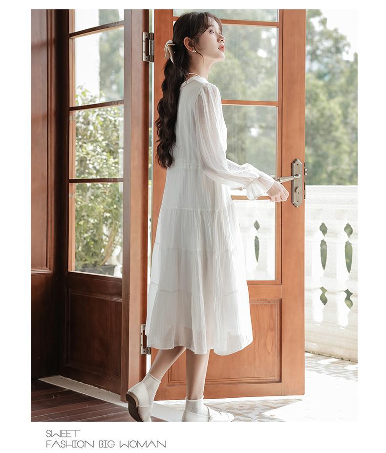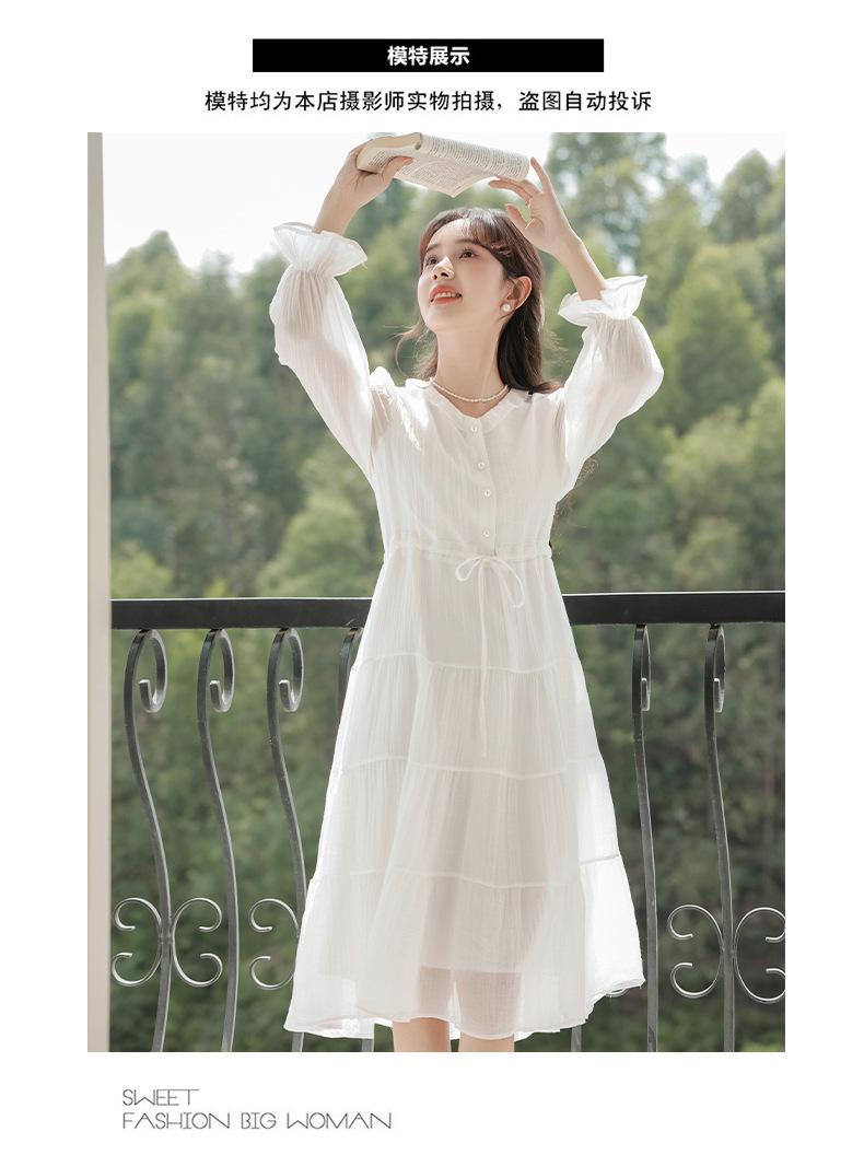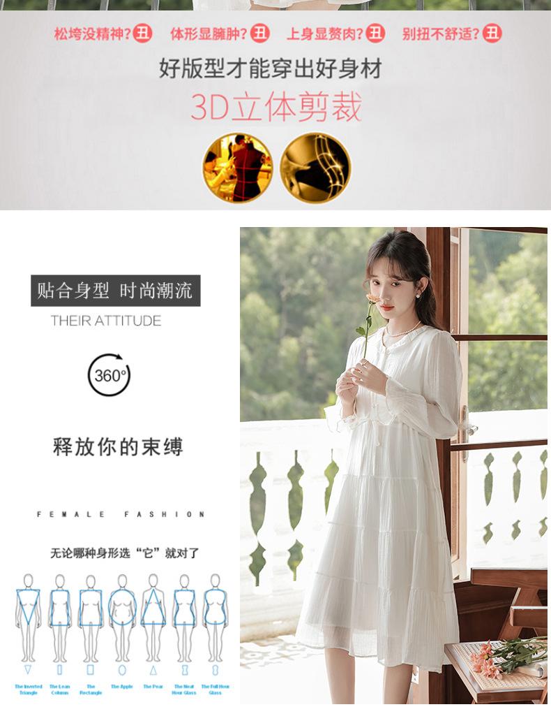Vestido blanco para mujer, otoño 2024, nuevo, con cintura francesa, cordones, cuello redondo, borde de oreja, adelgazante, cintura alta, vestido de hada