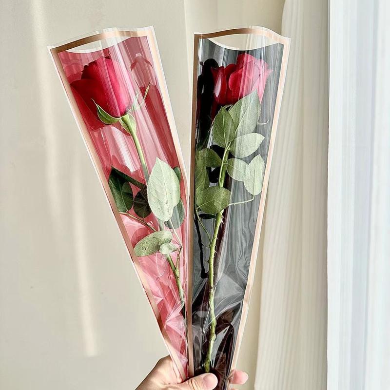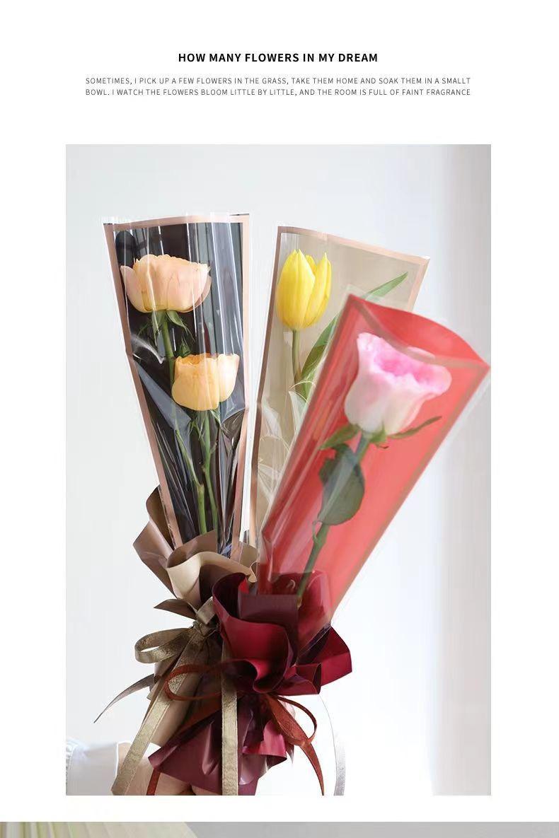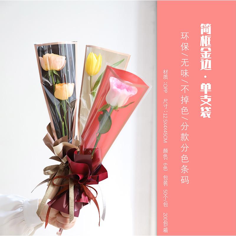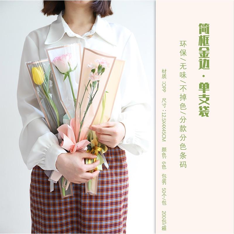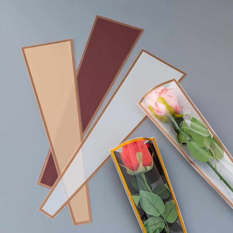 Bolsa transparente impermeable con borde dorado, marco simple, para empaque de flores, bolsa individual, multibolsa, material de empaque para ramo, bolsa triangular