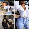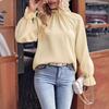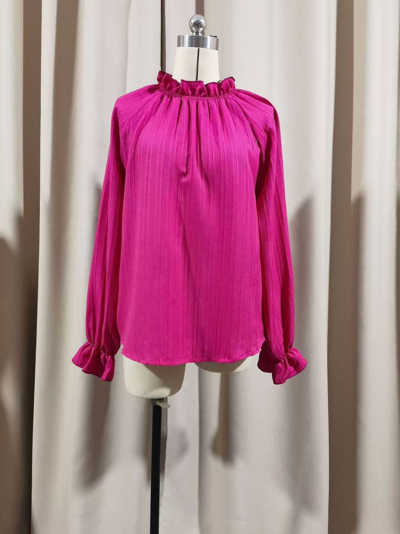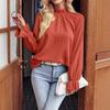 Primavera y verano 2024 Europa y Estados Unidos comercio exterior transfronterizo nuevo color sólido estilo de viajero diario cuello de hoja de loto camisa suelta de manga larga para mujer