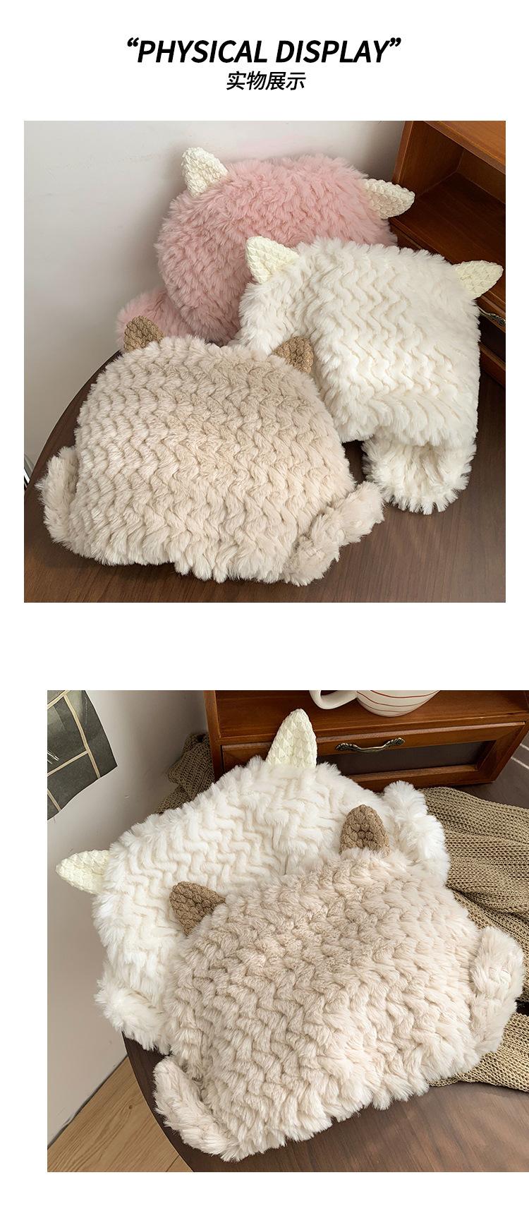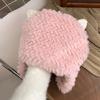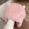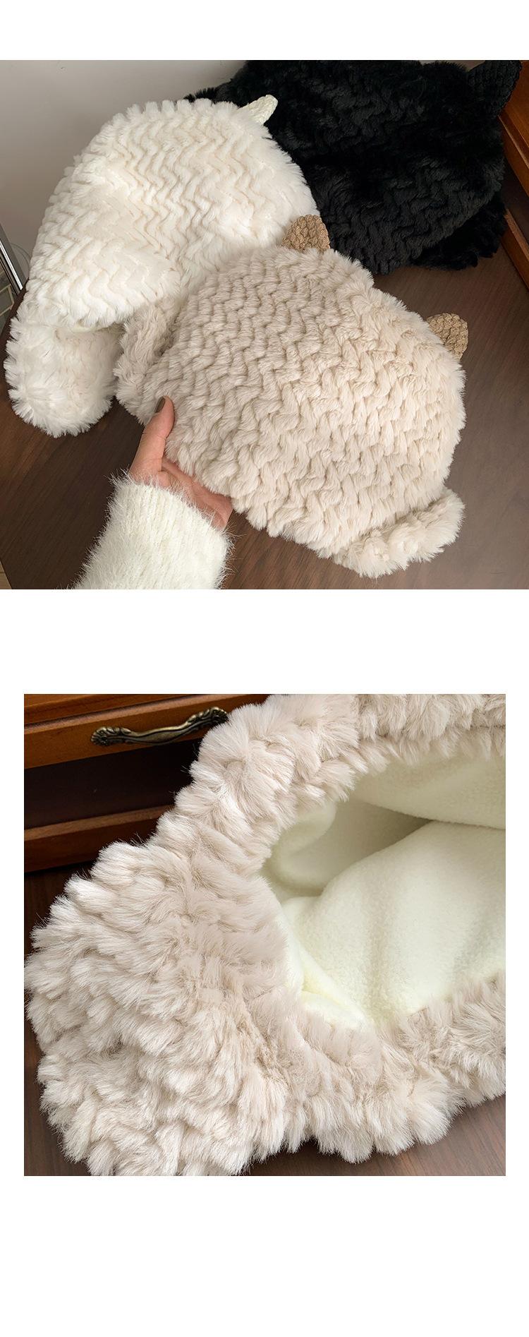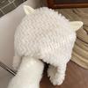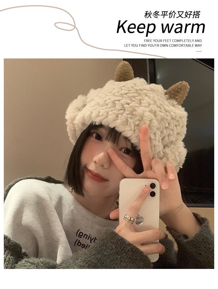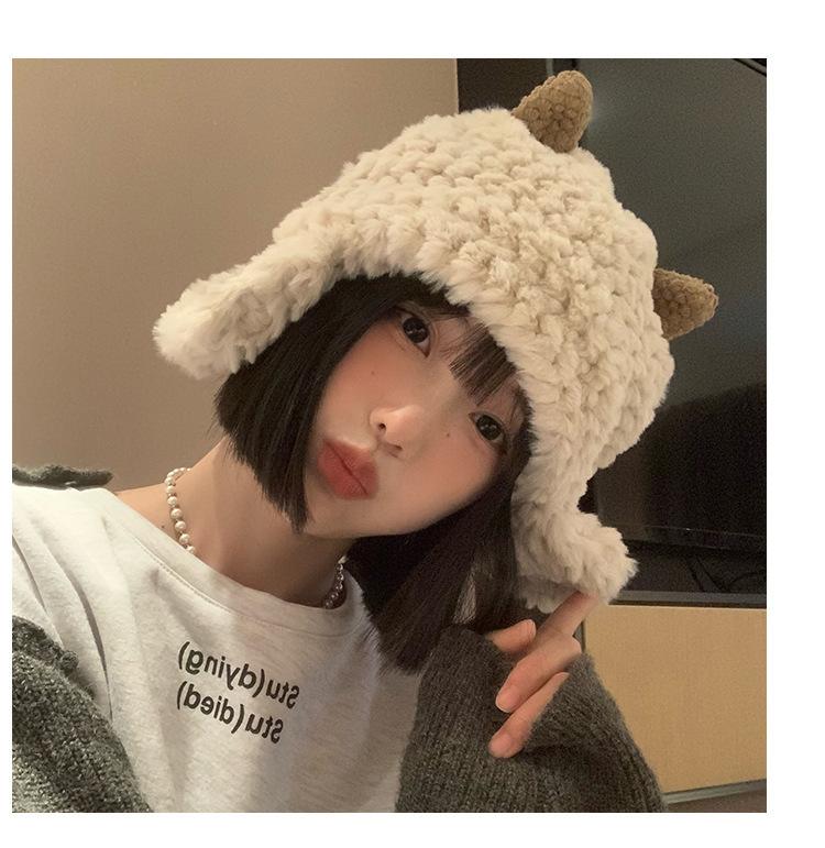 Gorro de cordero para mujer, estilo coreano, otoño e invierno, bonito gorro de felpa Lei Feng para el rostro, pequeño, cálido y grueso, con protección para las orejas, para cabeza grande.