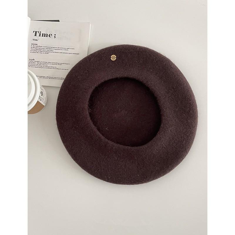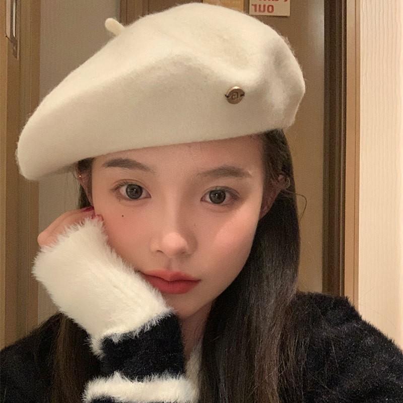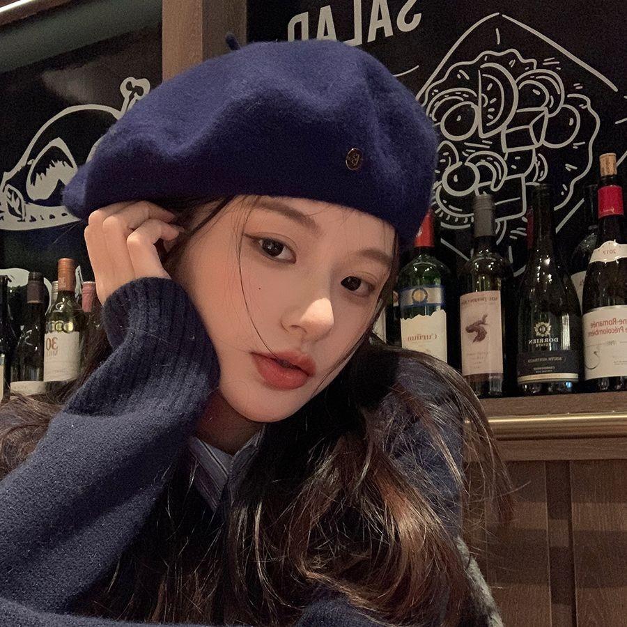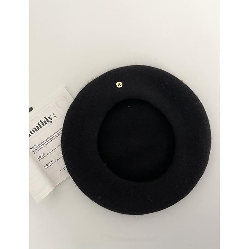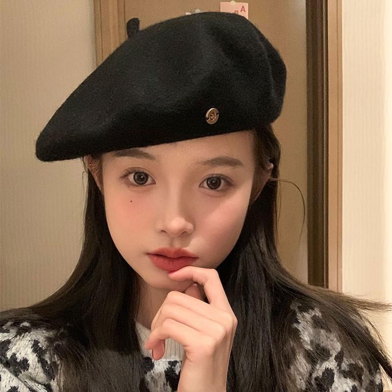 Boina de lana estilo coreano para mujer, gorro de pintor negro retro de estilo británico, boina pequeña para otoño e invierno.