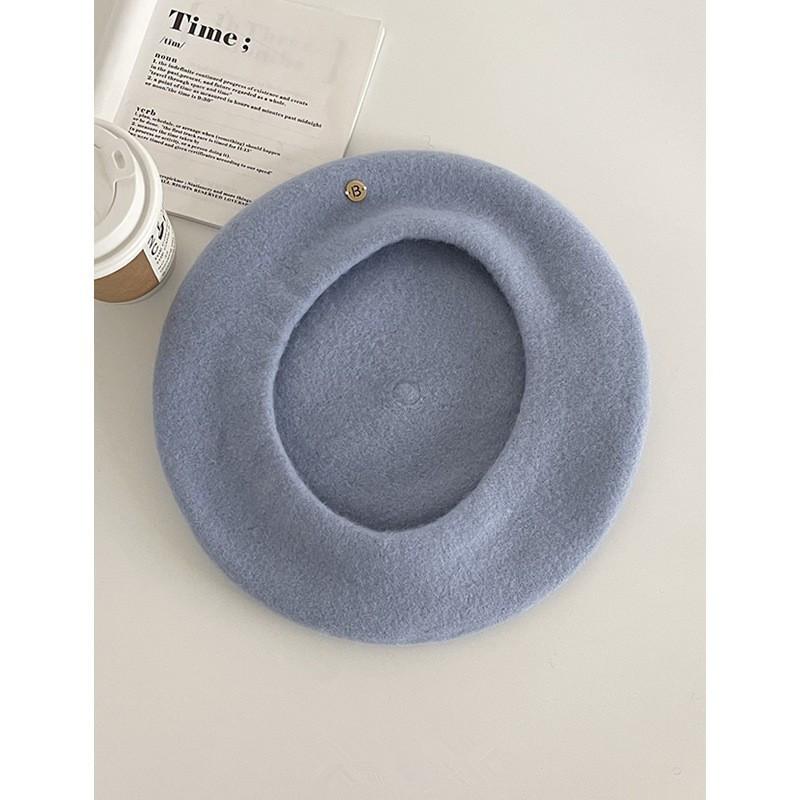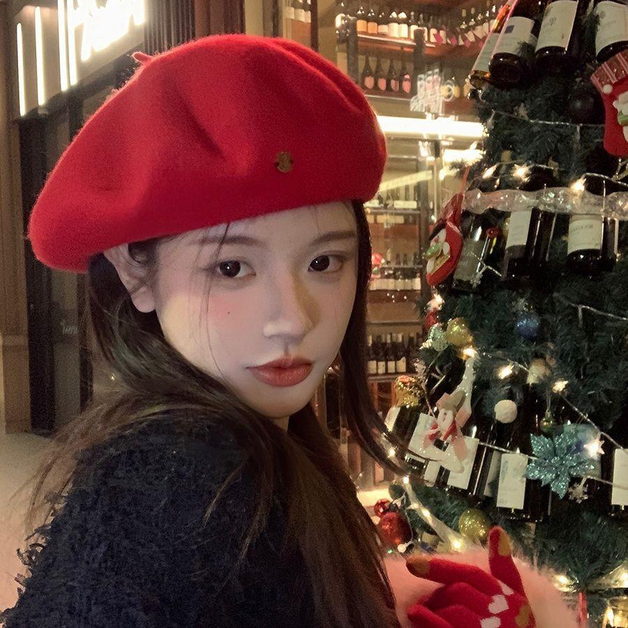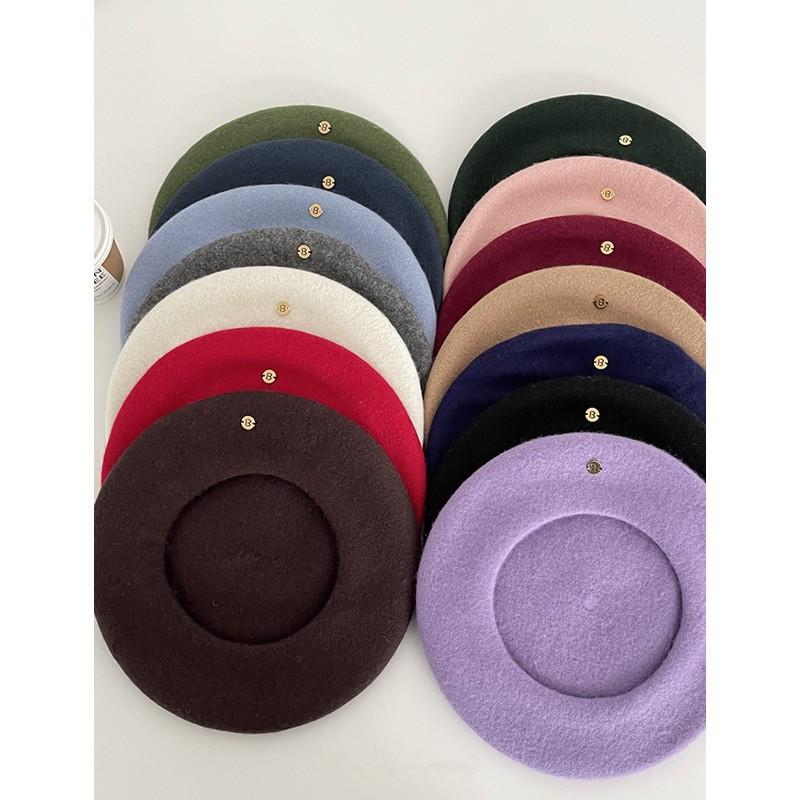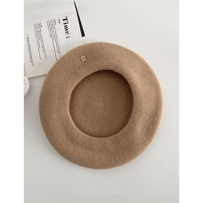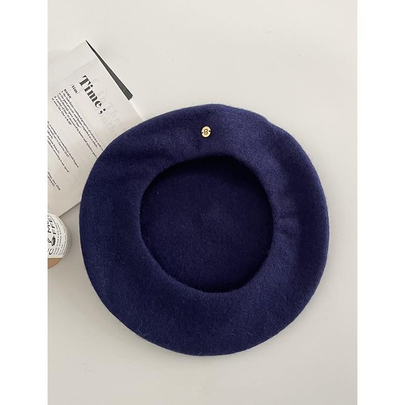 Boina de lana estilo coreano para mujer, gorro de pintor negro retro de estilo británico, boina pequeña para otoño e invierno.
